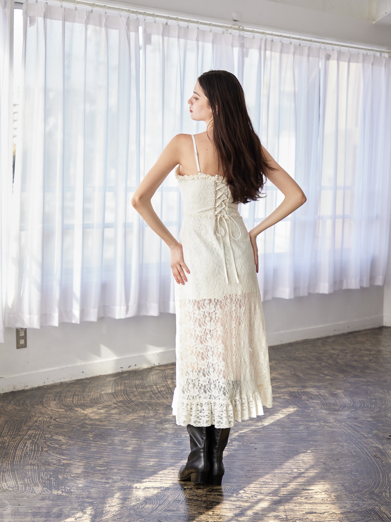 ヴィンテージ感のあるランジェリーライクなキャミワンピース。