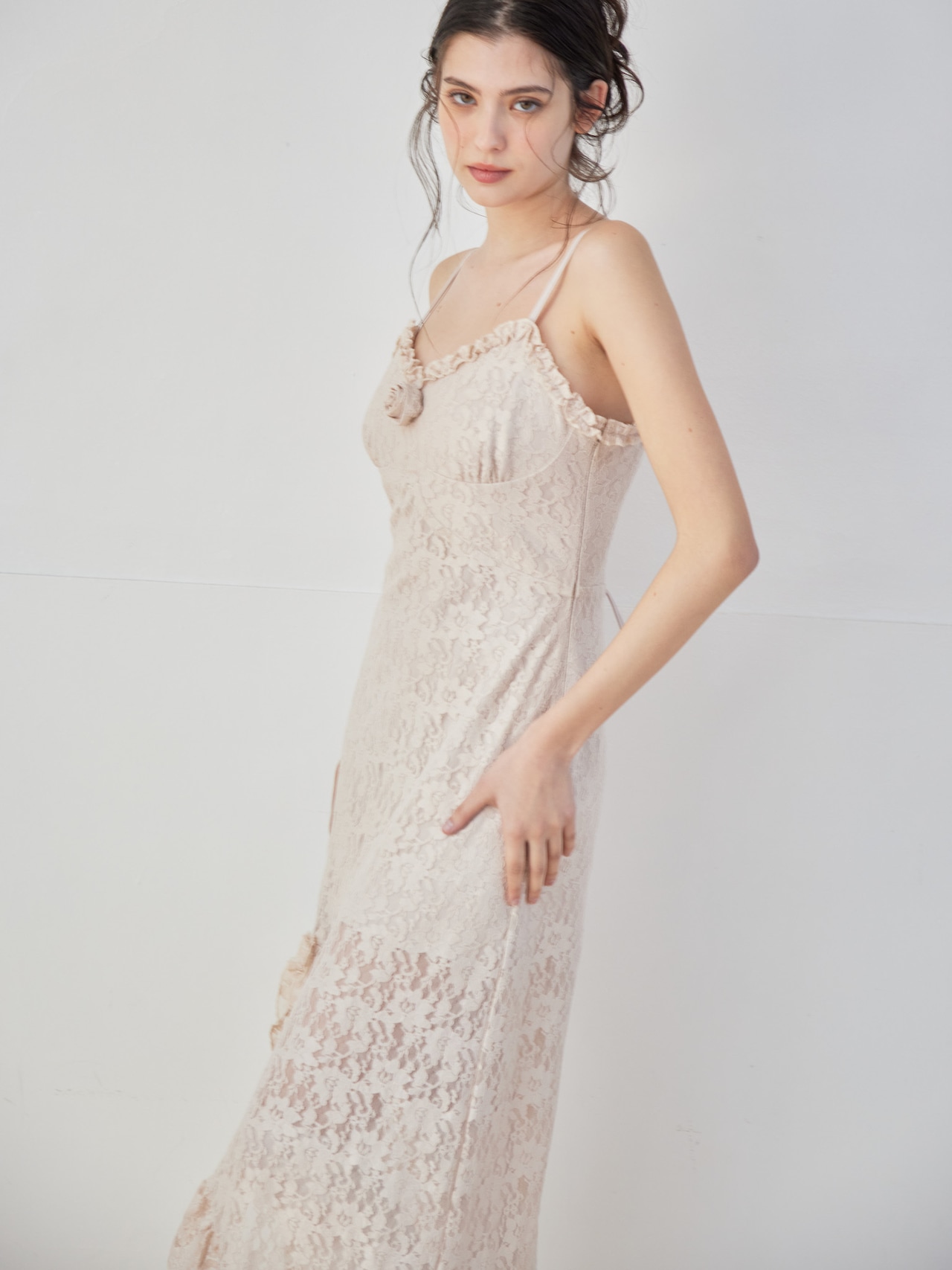 ヴィンテージ感のあるランジェリーライクなキャミワンピース。