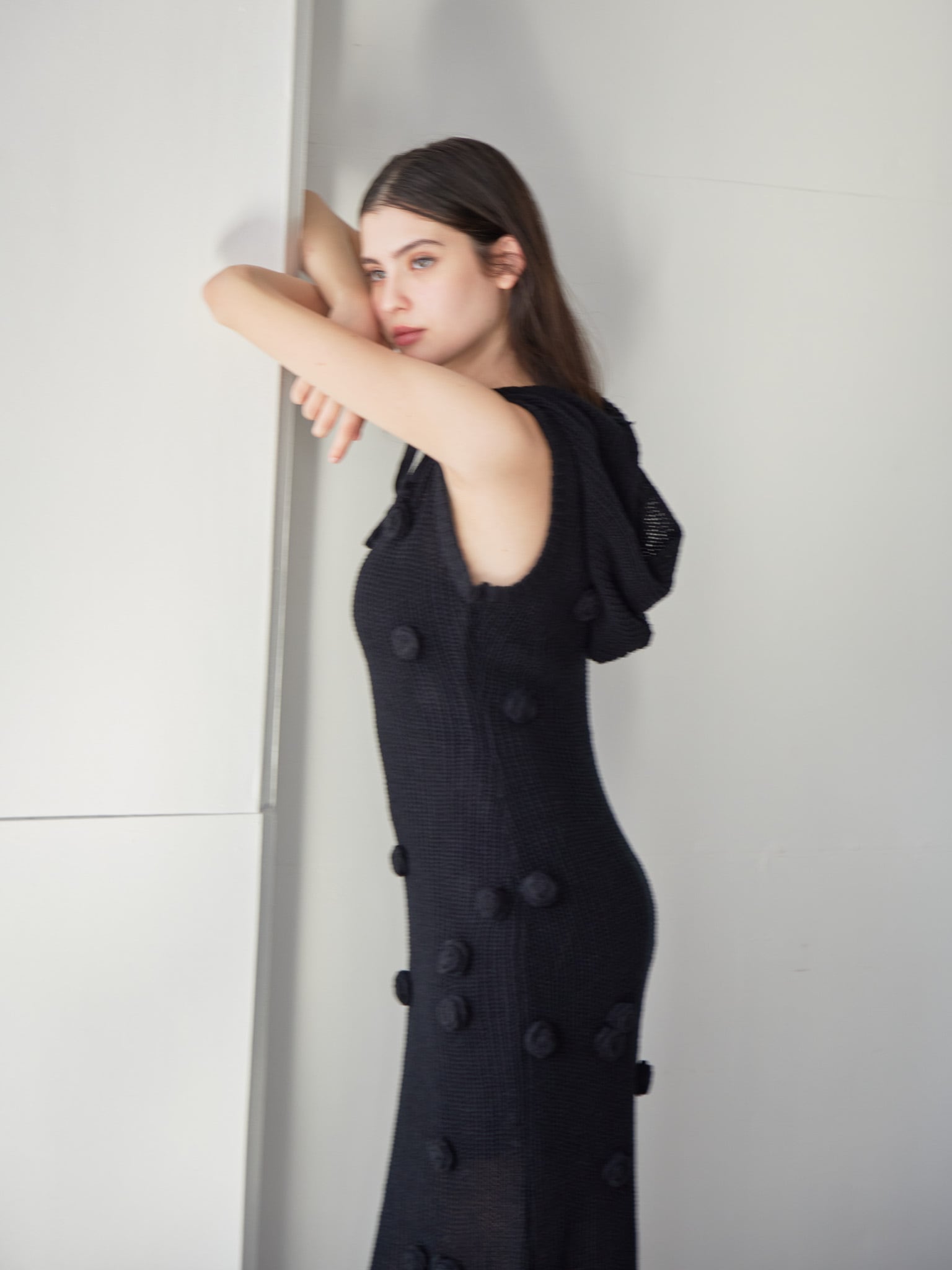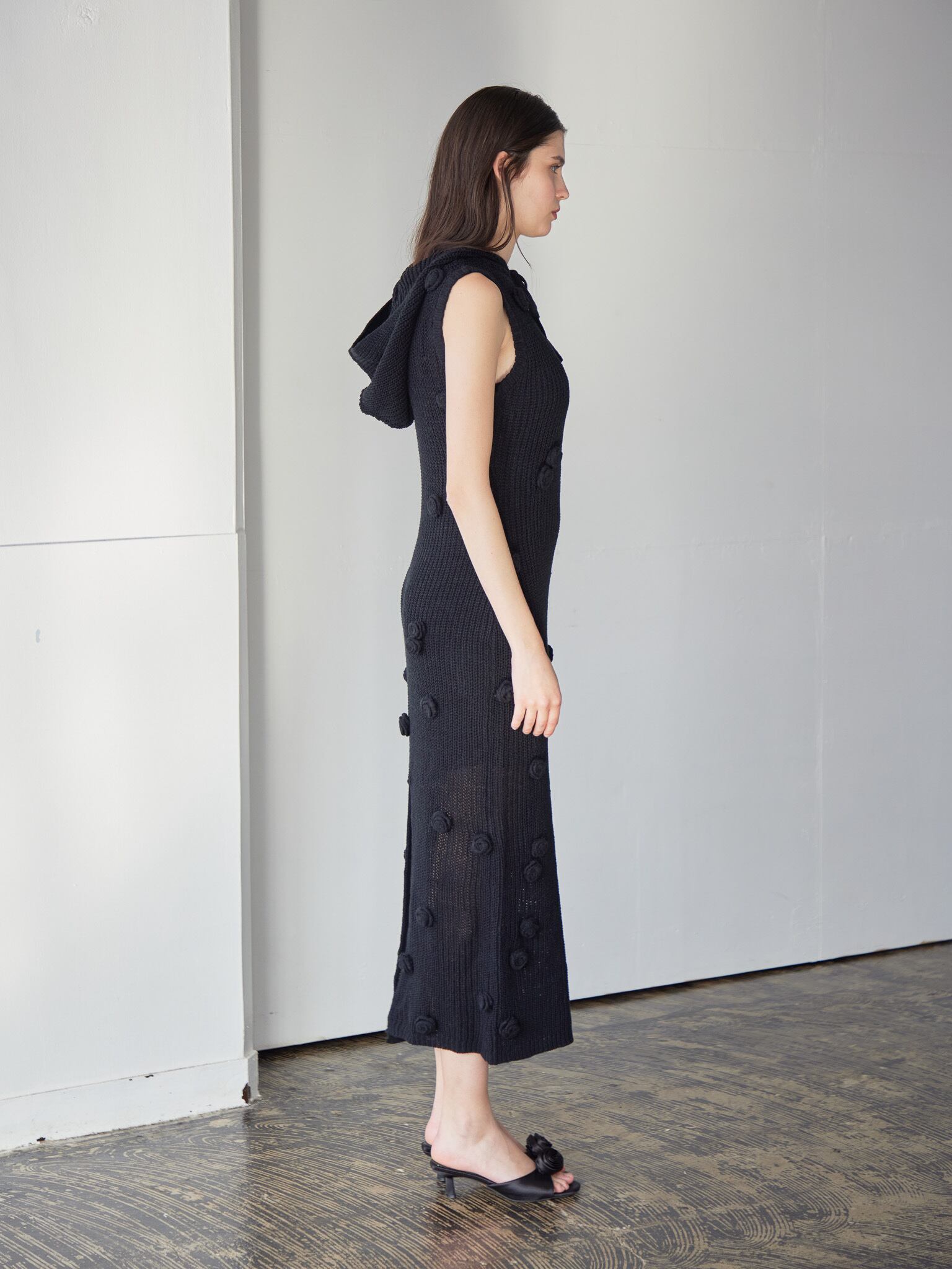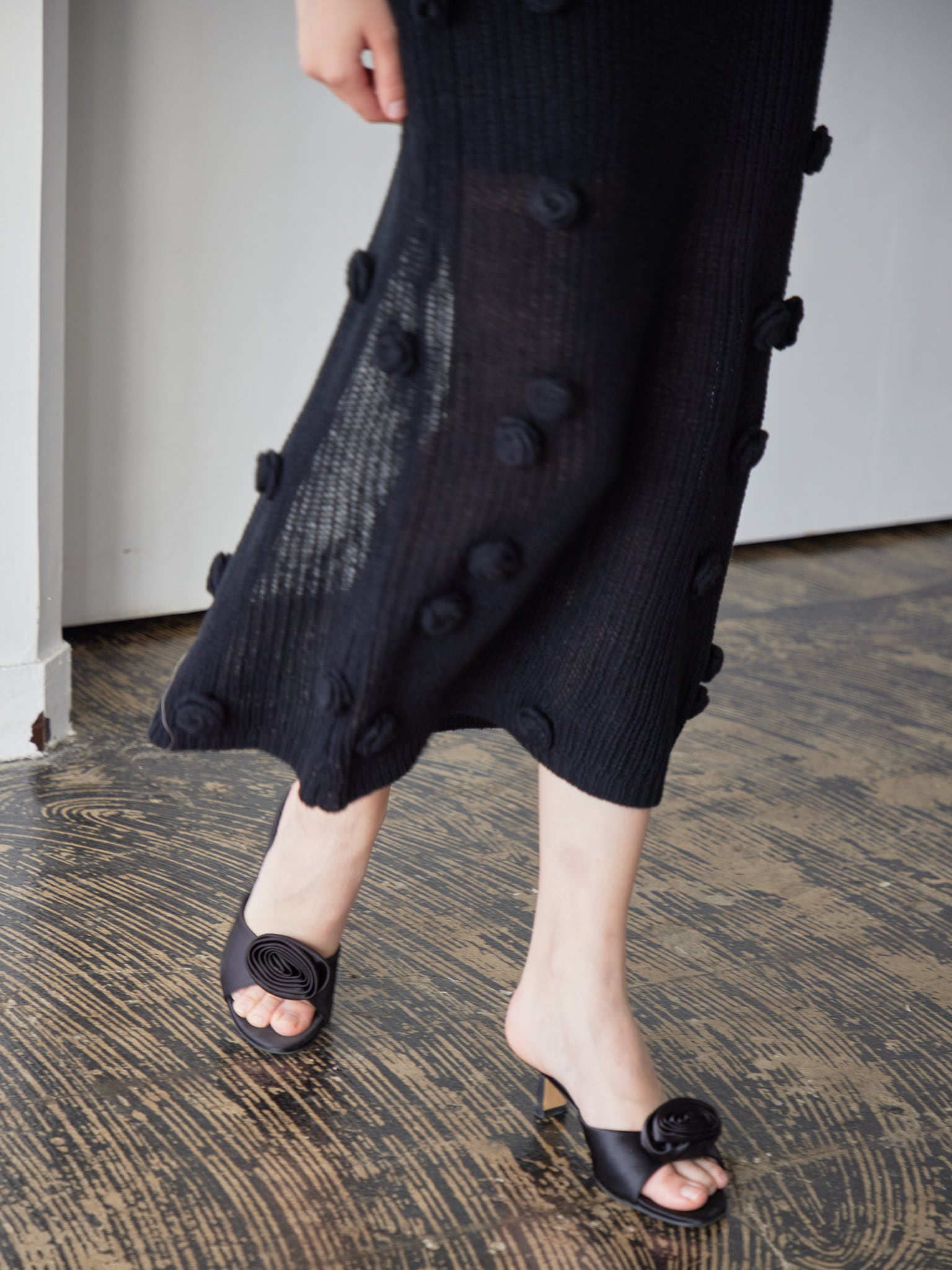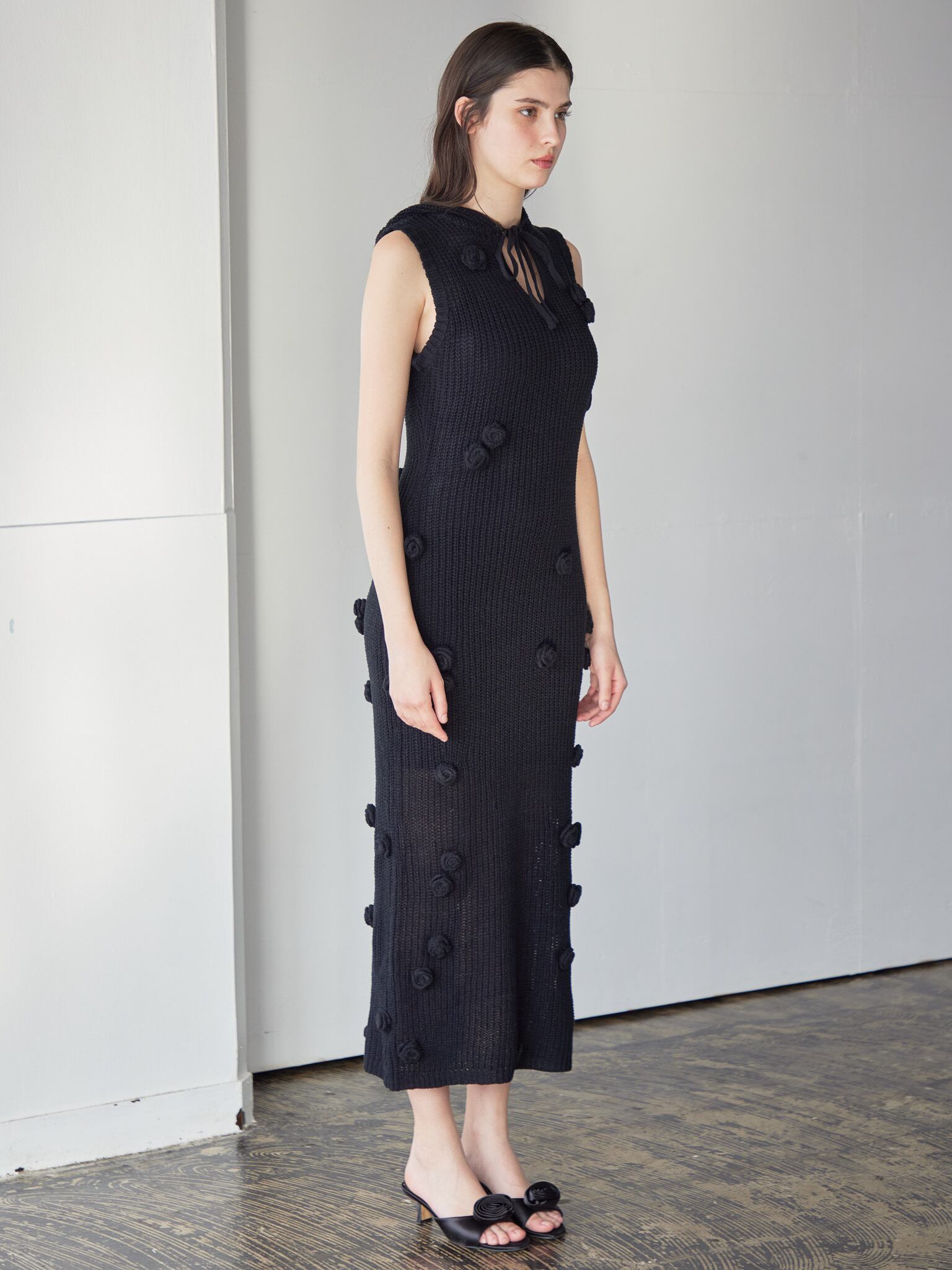 ニット同素材で編んだ薔薇の花をふんだんにちりばめたワンピース。