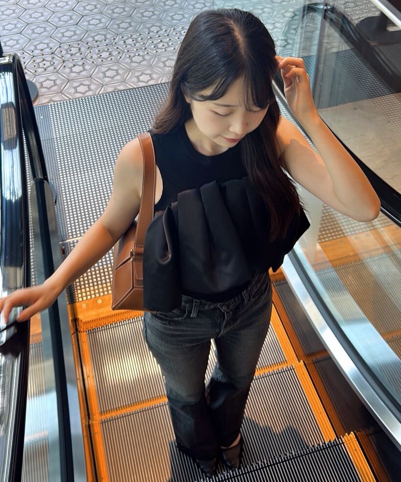 ボリュームを生かして、ボトムはタイトにまとめるのがおすすめ。