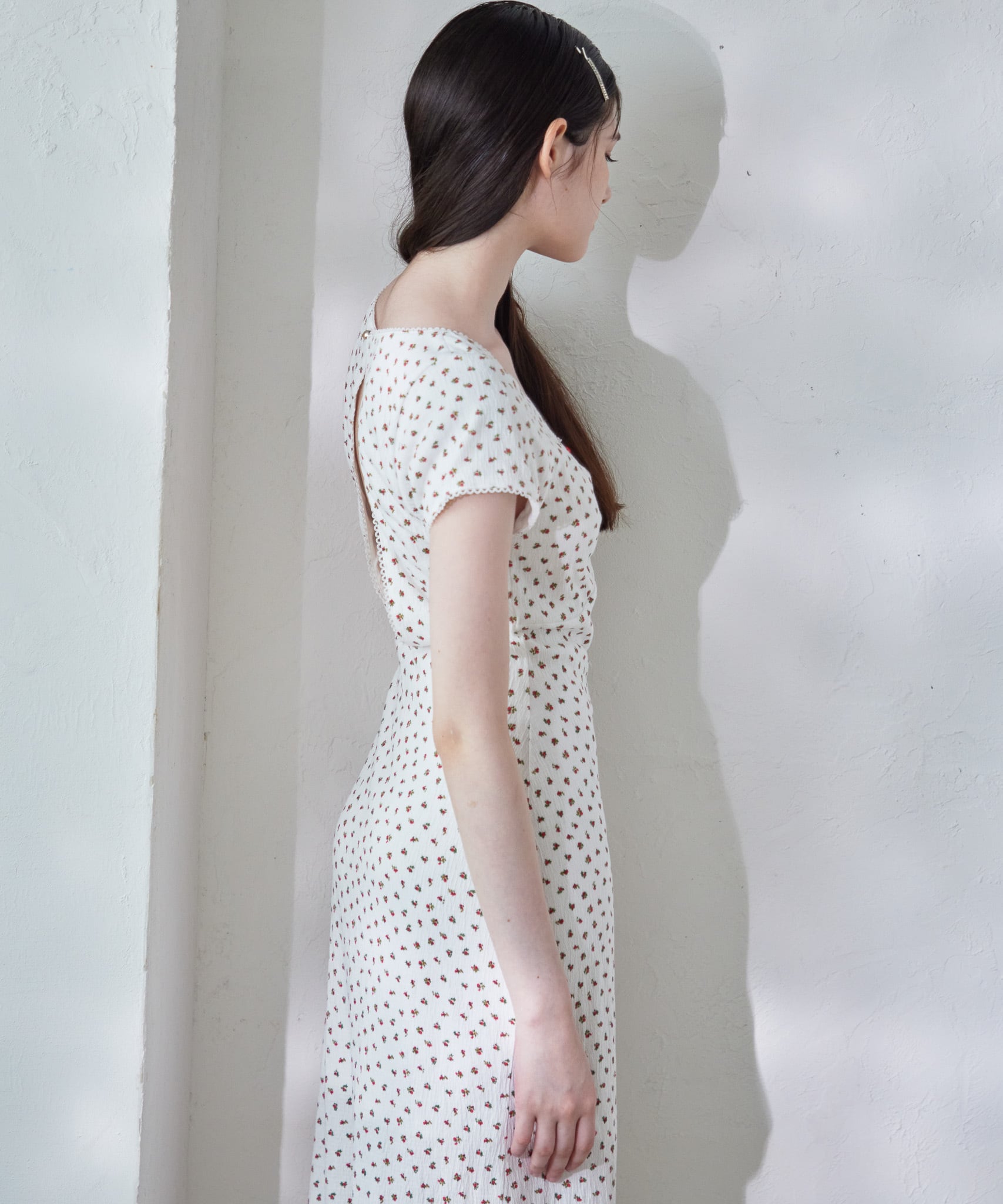 Back open print cut dress【white】125024