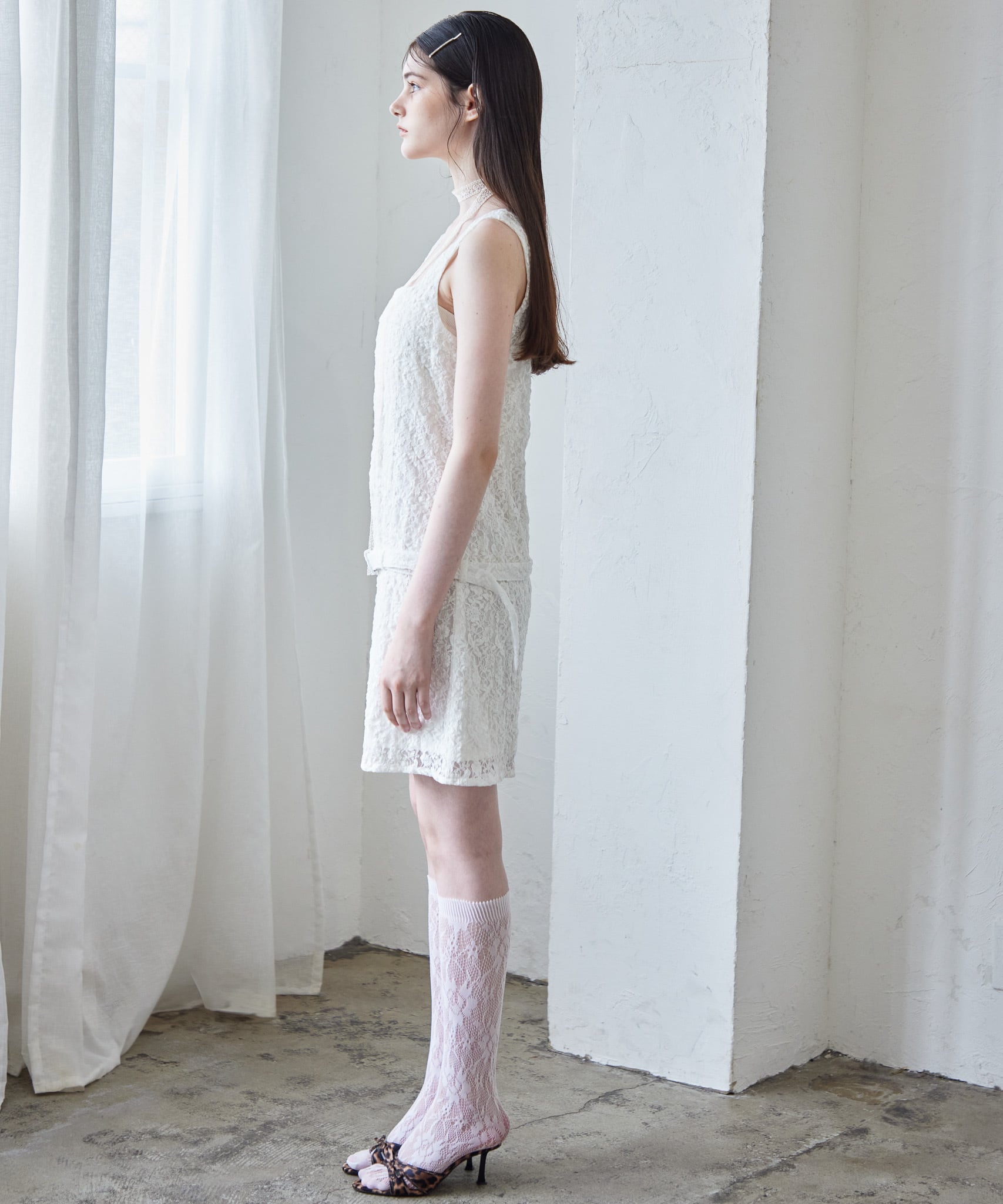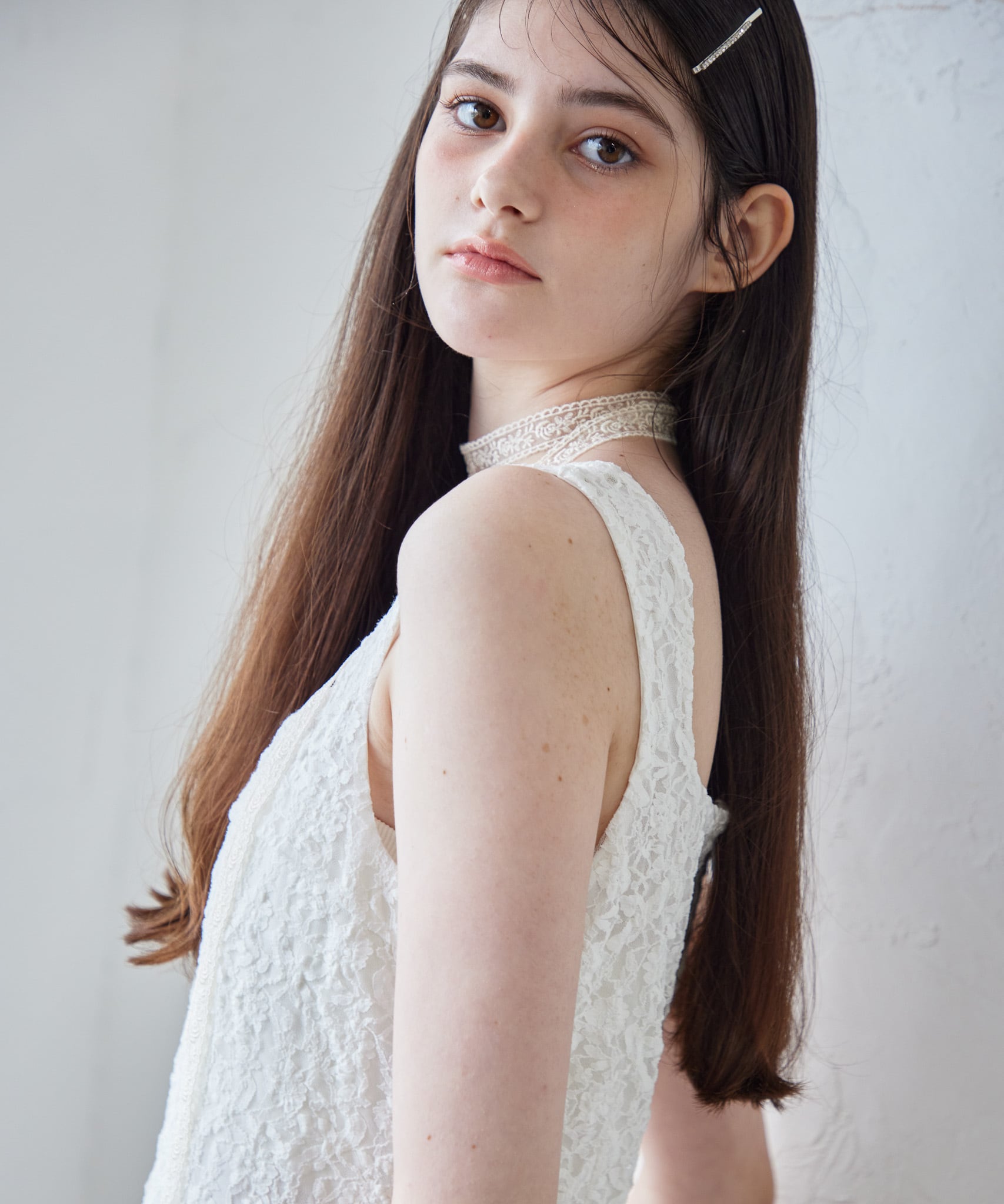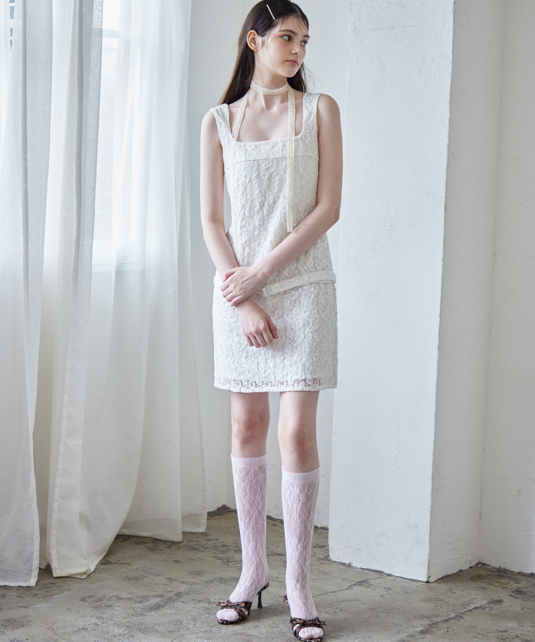 ポコポコと表面感のあるレースで、かっちりしたシルエットとのバランスの良い1点です。
