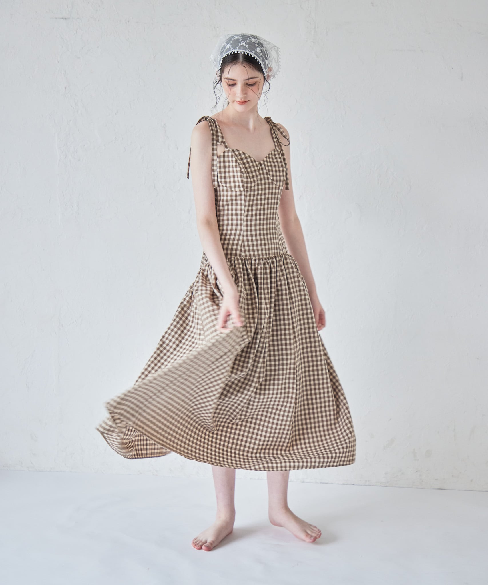 肩ひもはリボンを結んでいただく仕様で、長さ調節が可能です。
