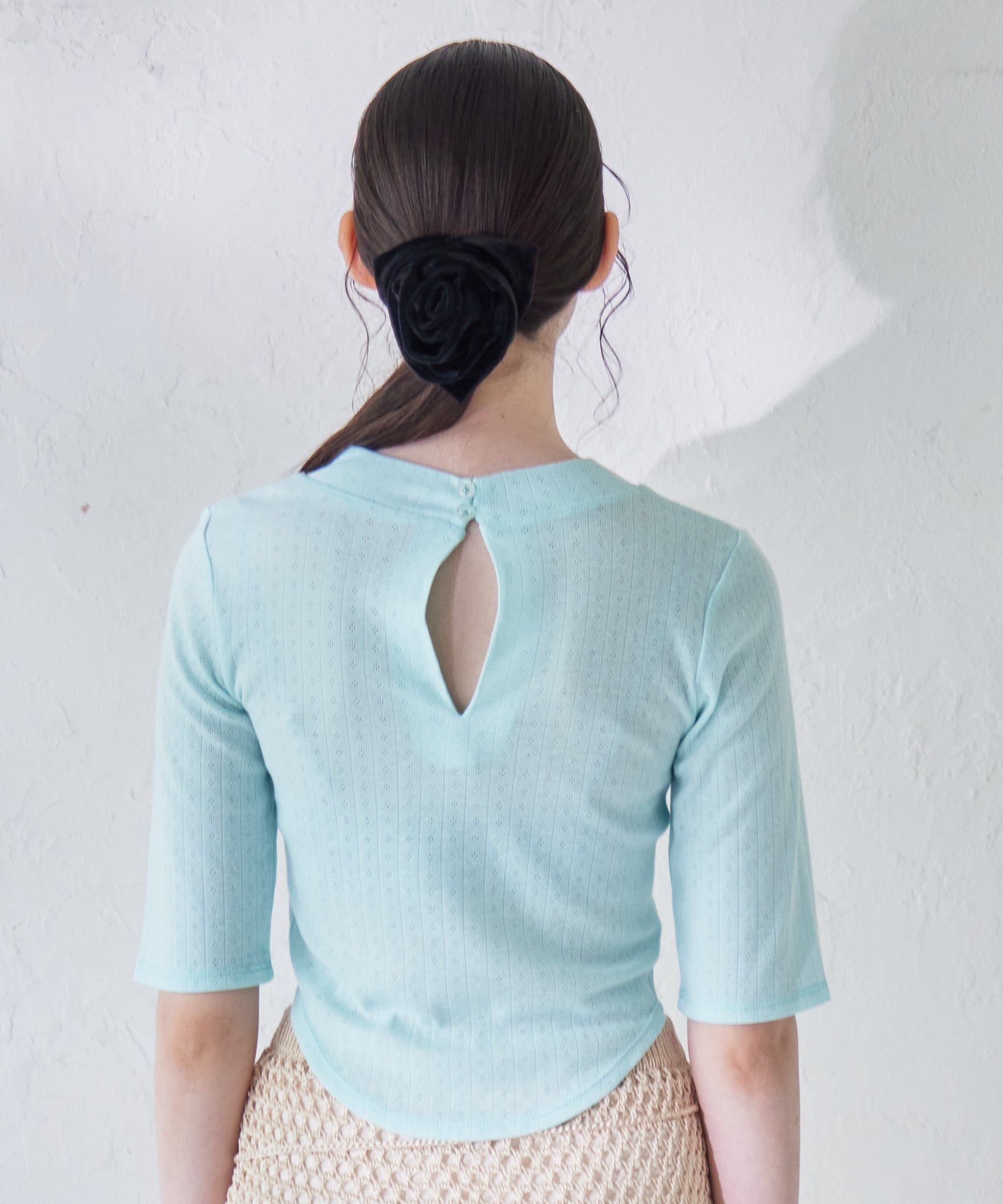 Rose embroidery eyelet short top【mint】125032