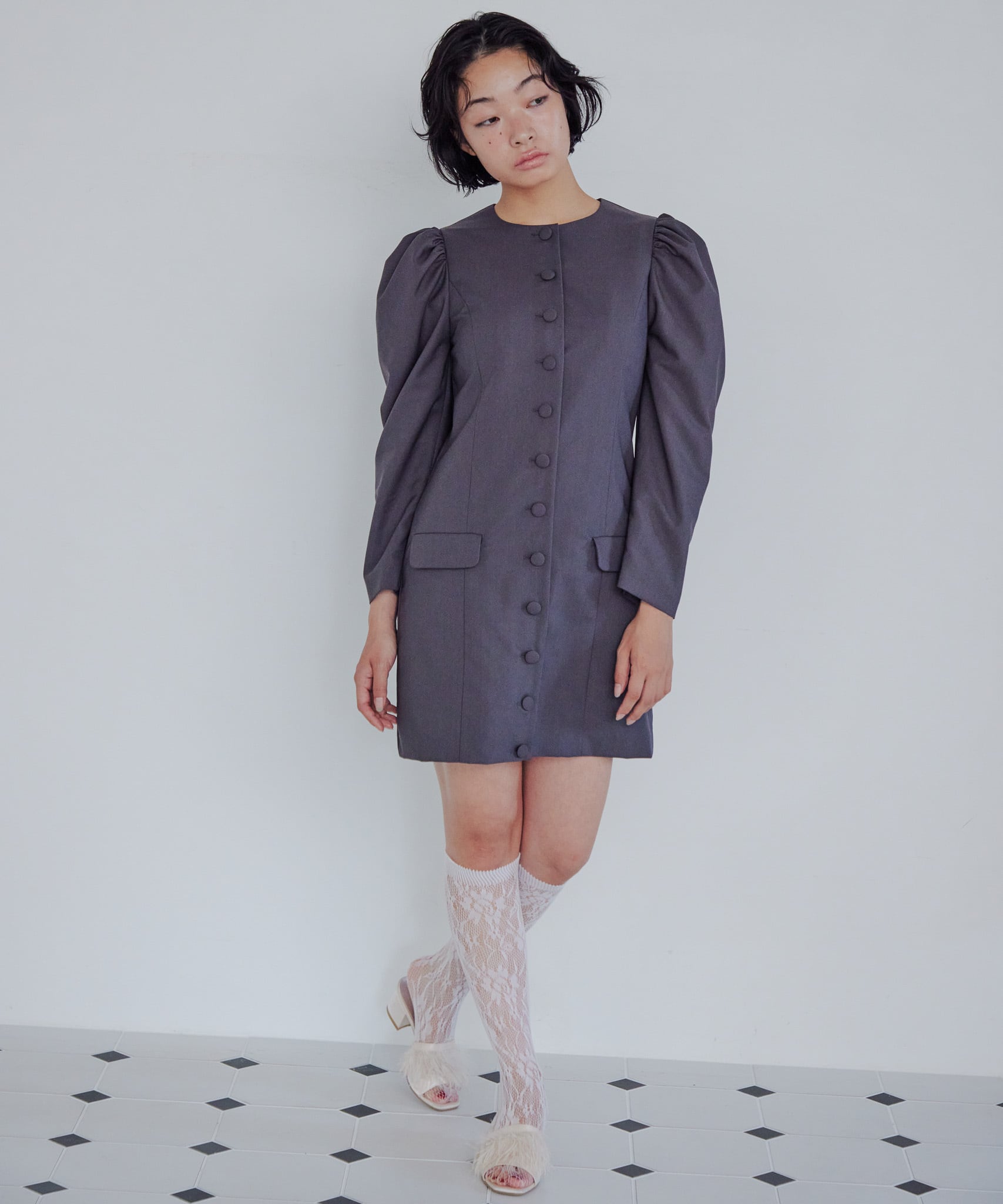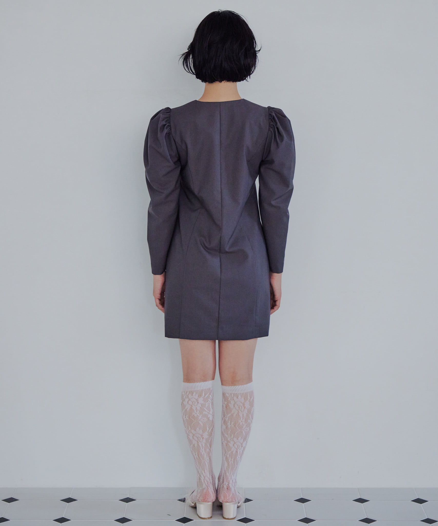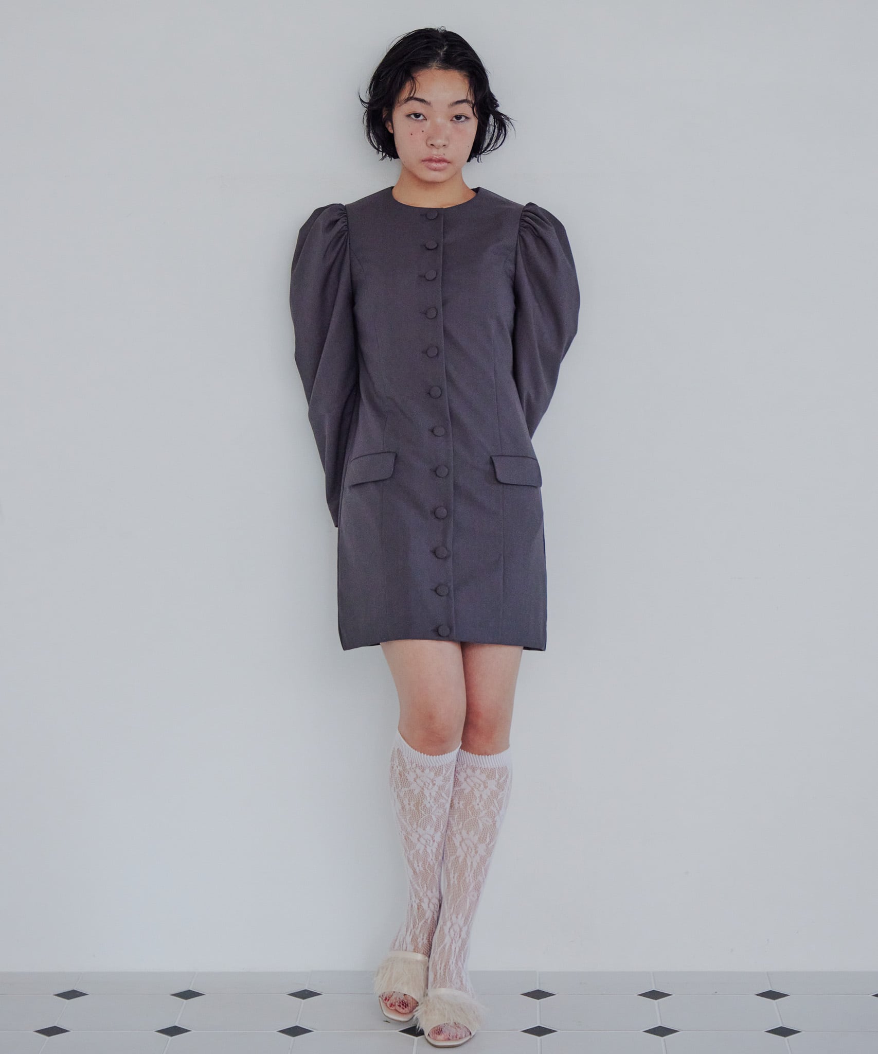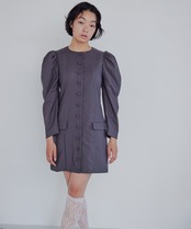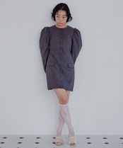 たっぷりのボリューム袖とタイトな身頃のシルエットの対比が可愛いワンピース。