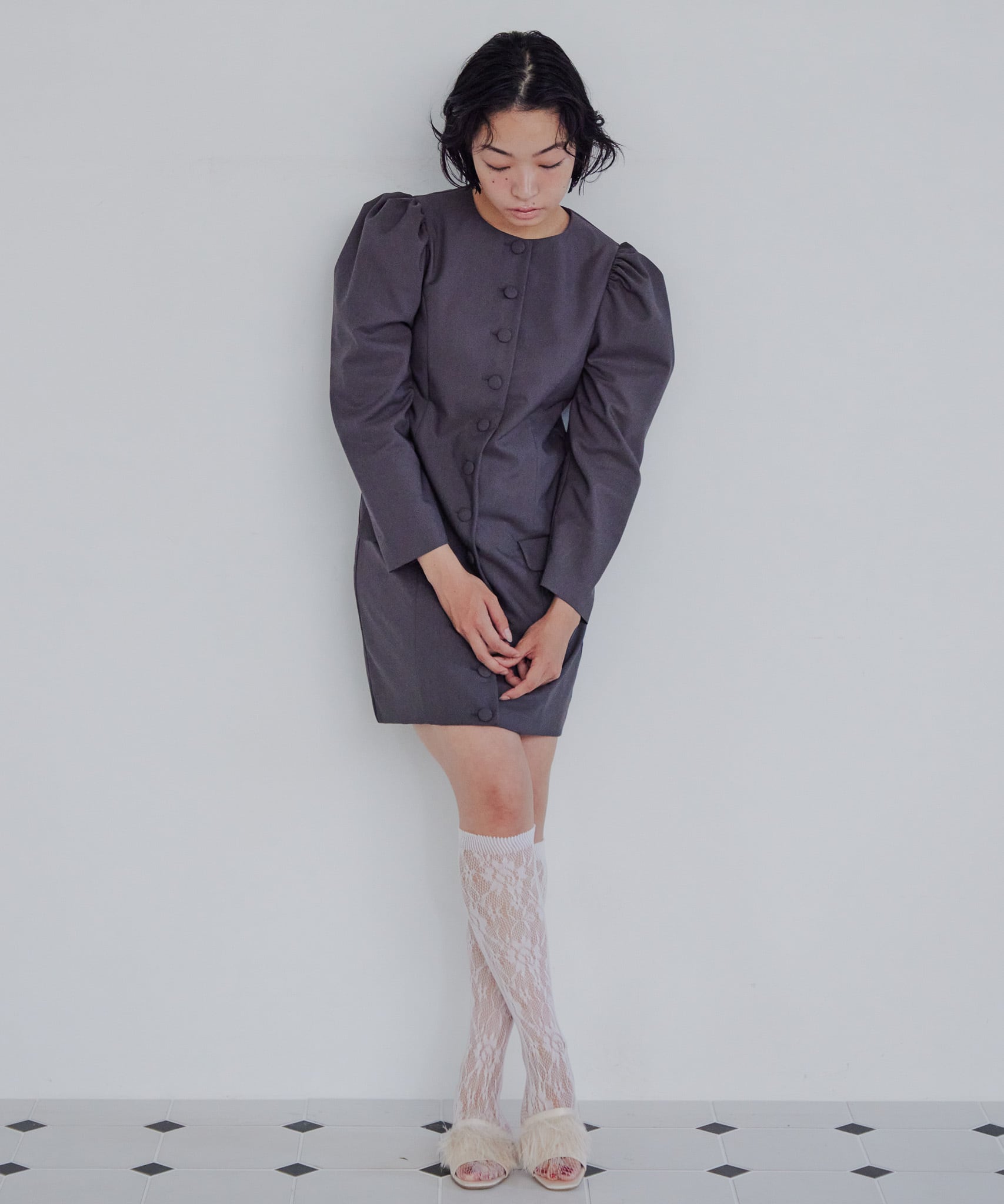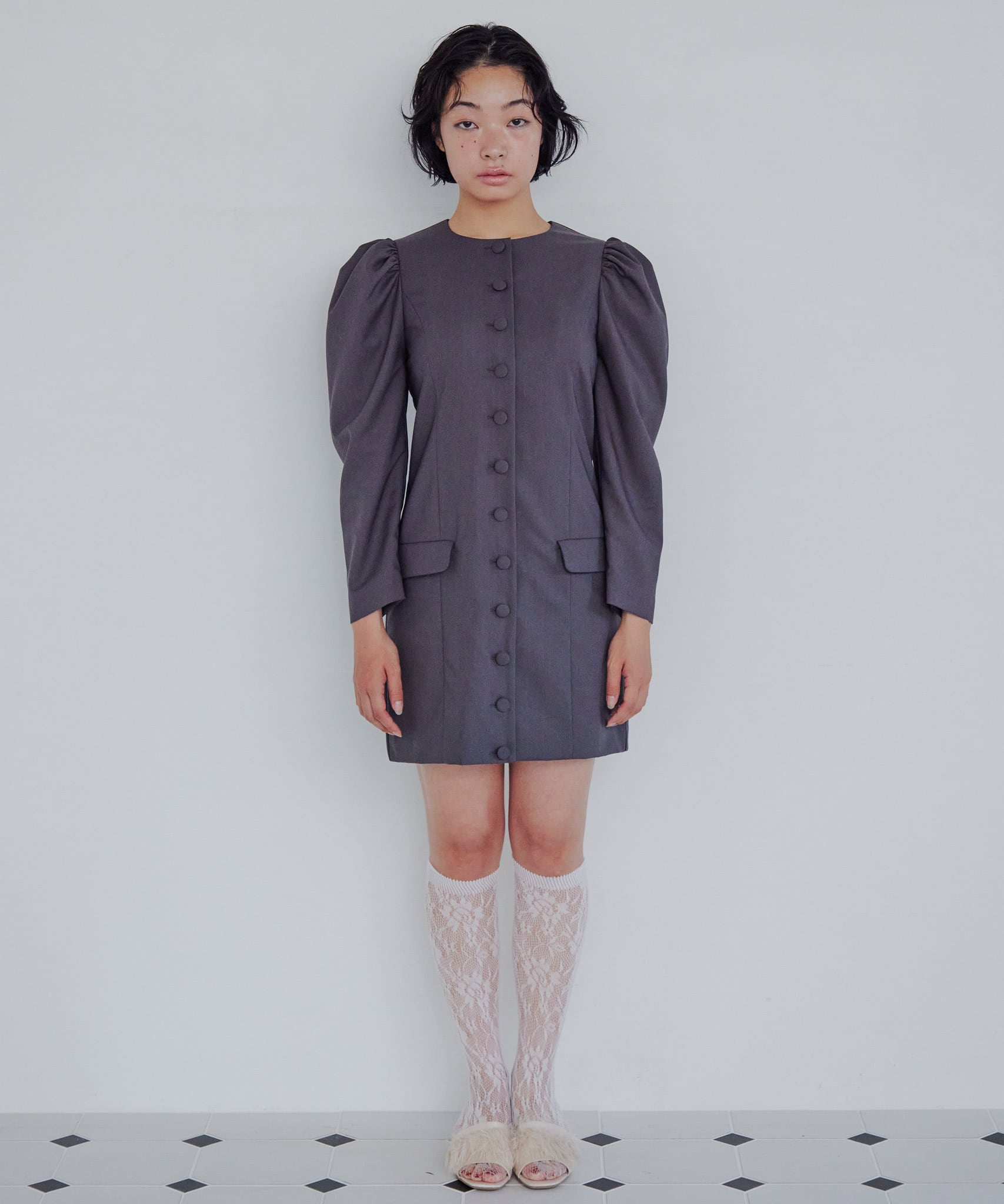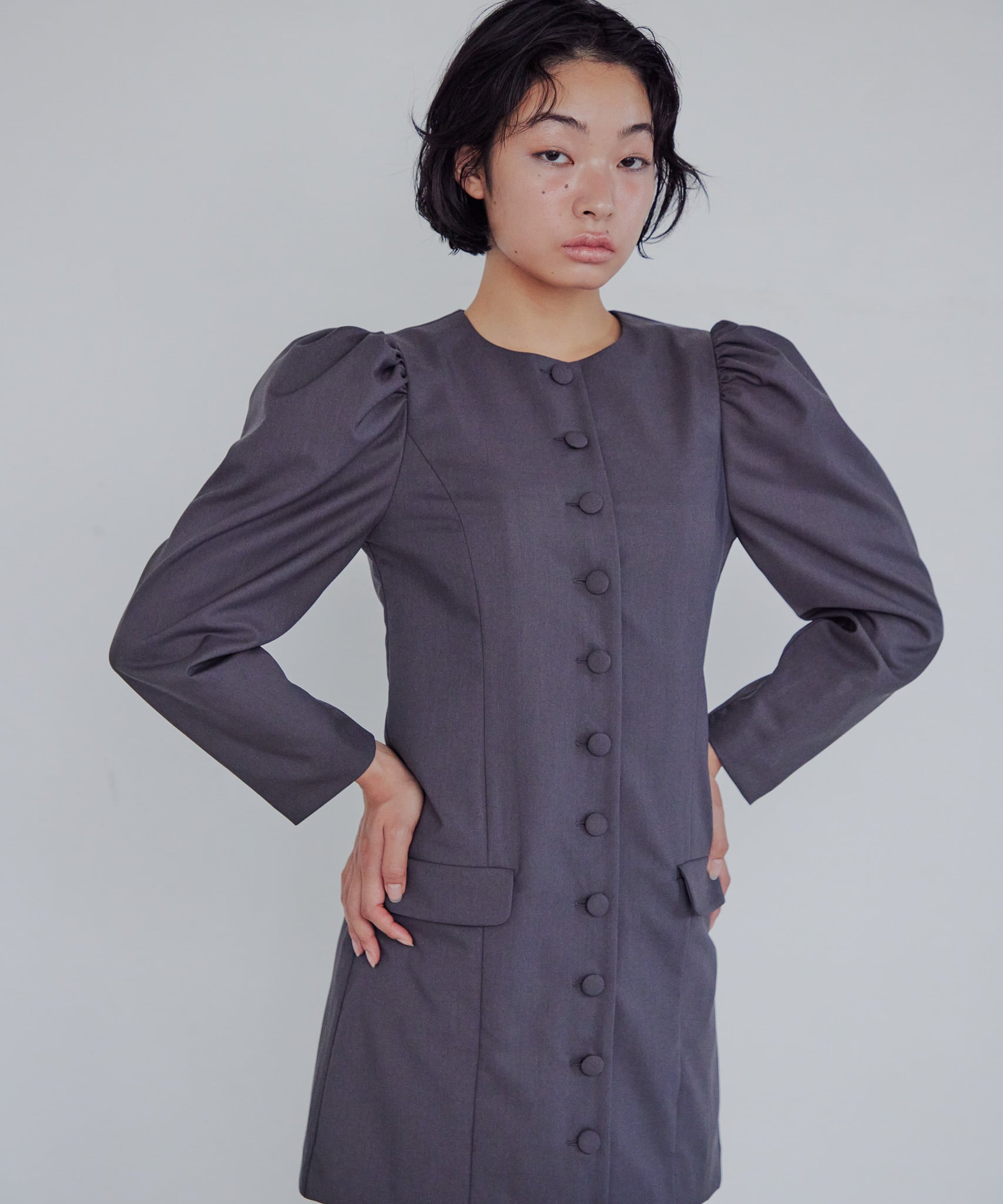 たっぷりのボリューム袖とタイトな身頃のシルエットの対比が可愛いワンピース。