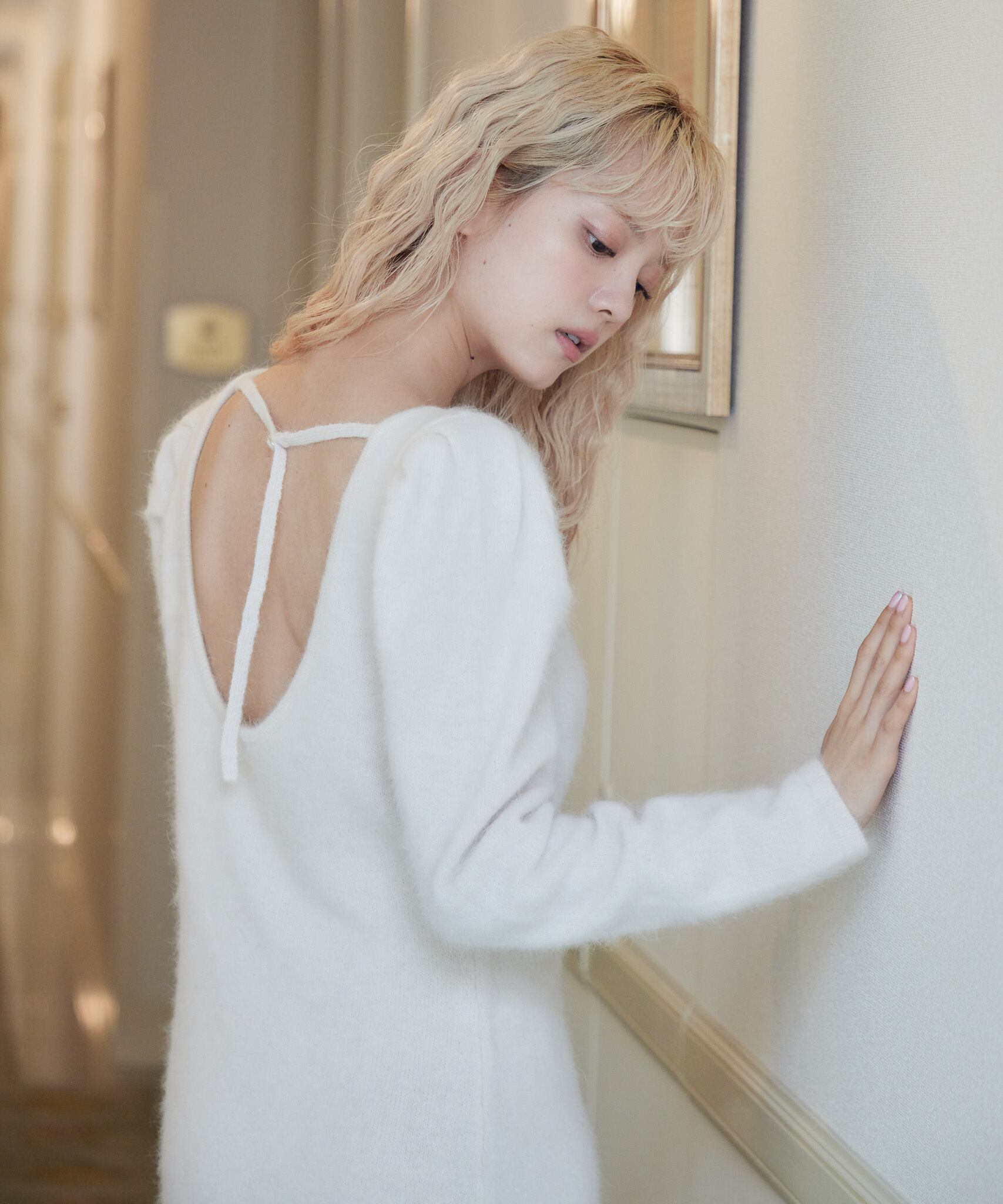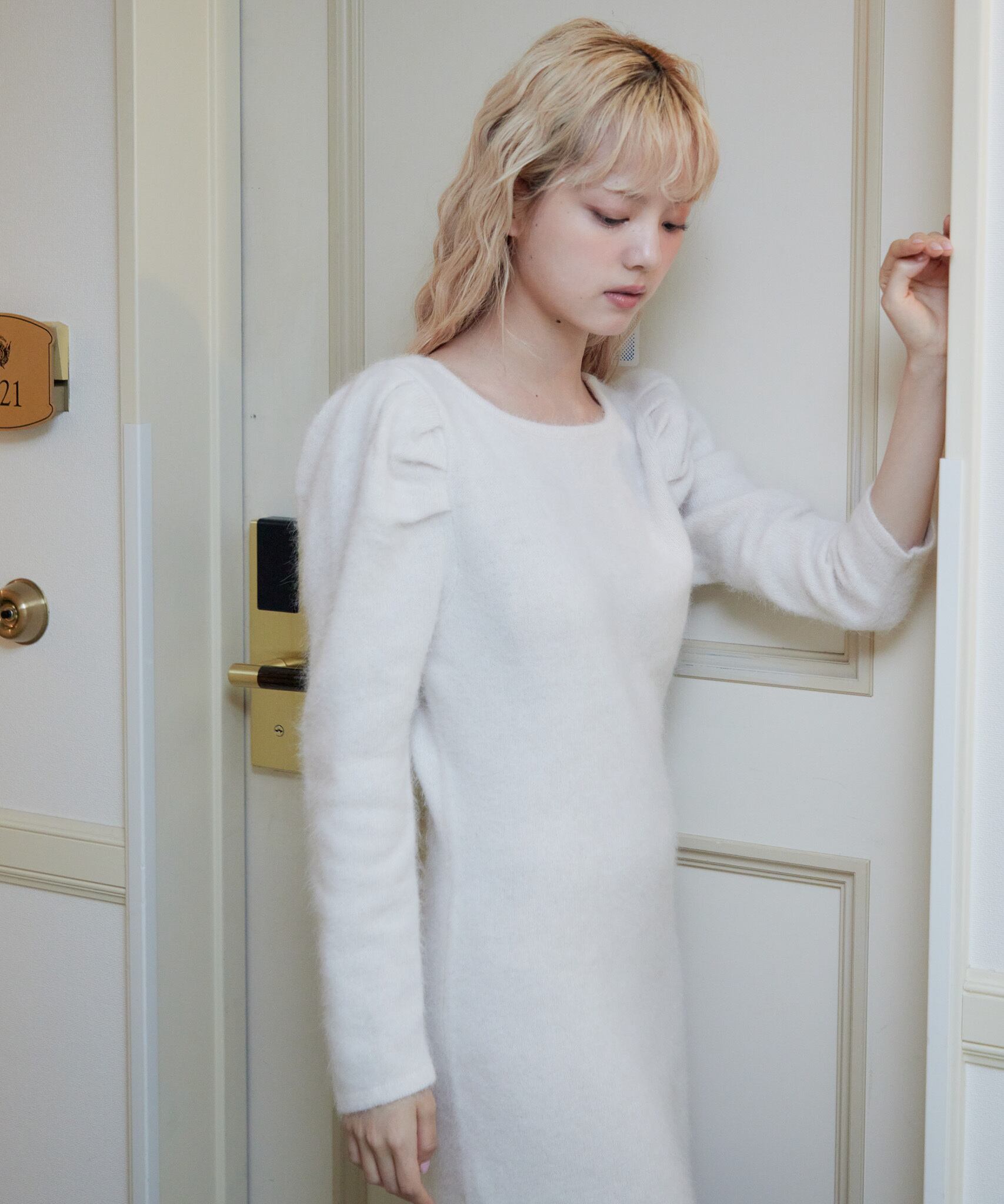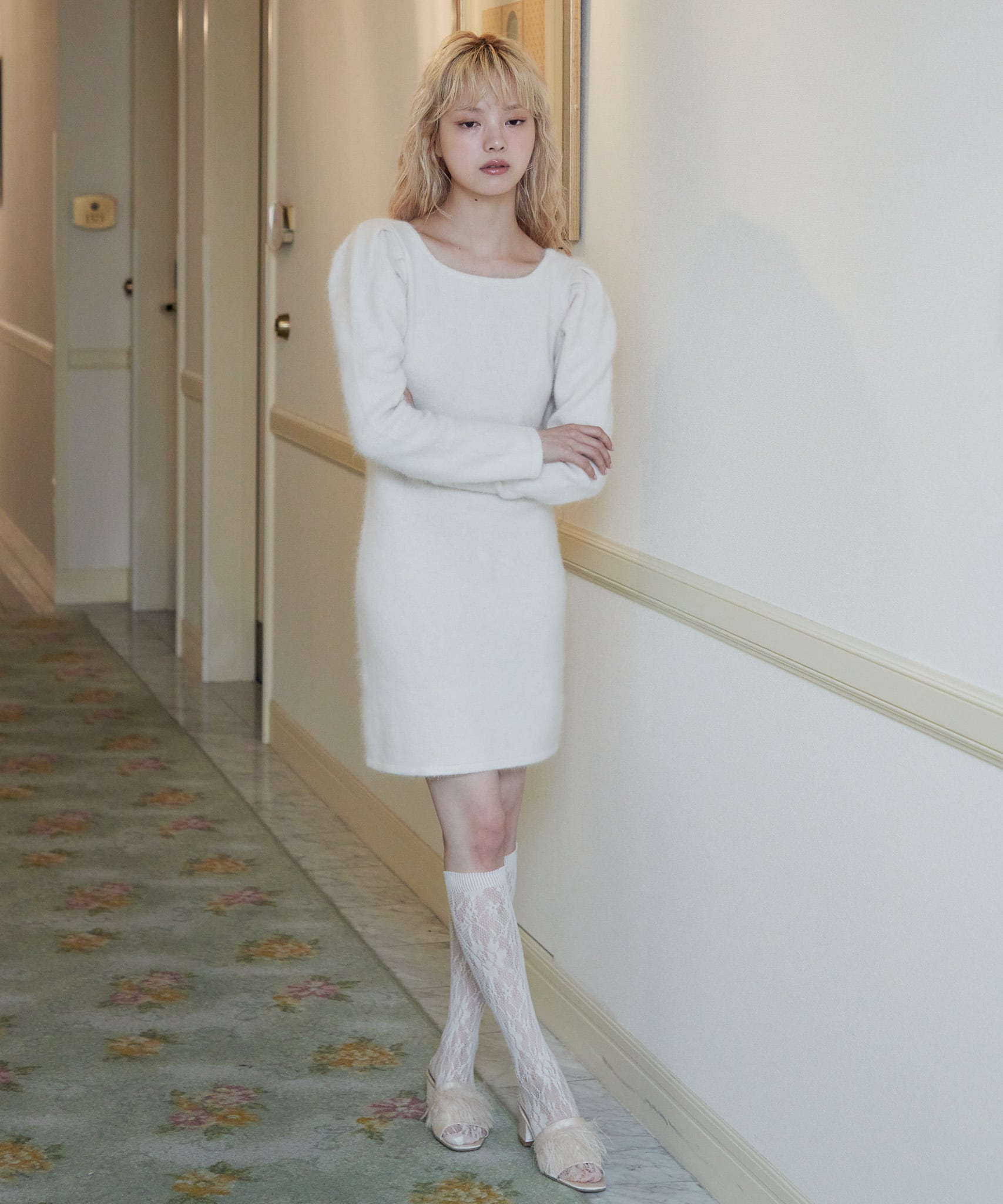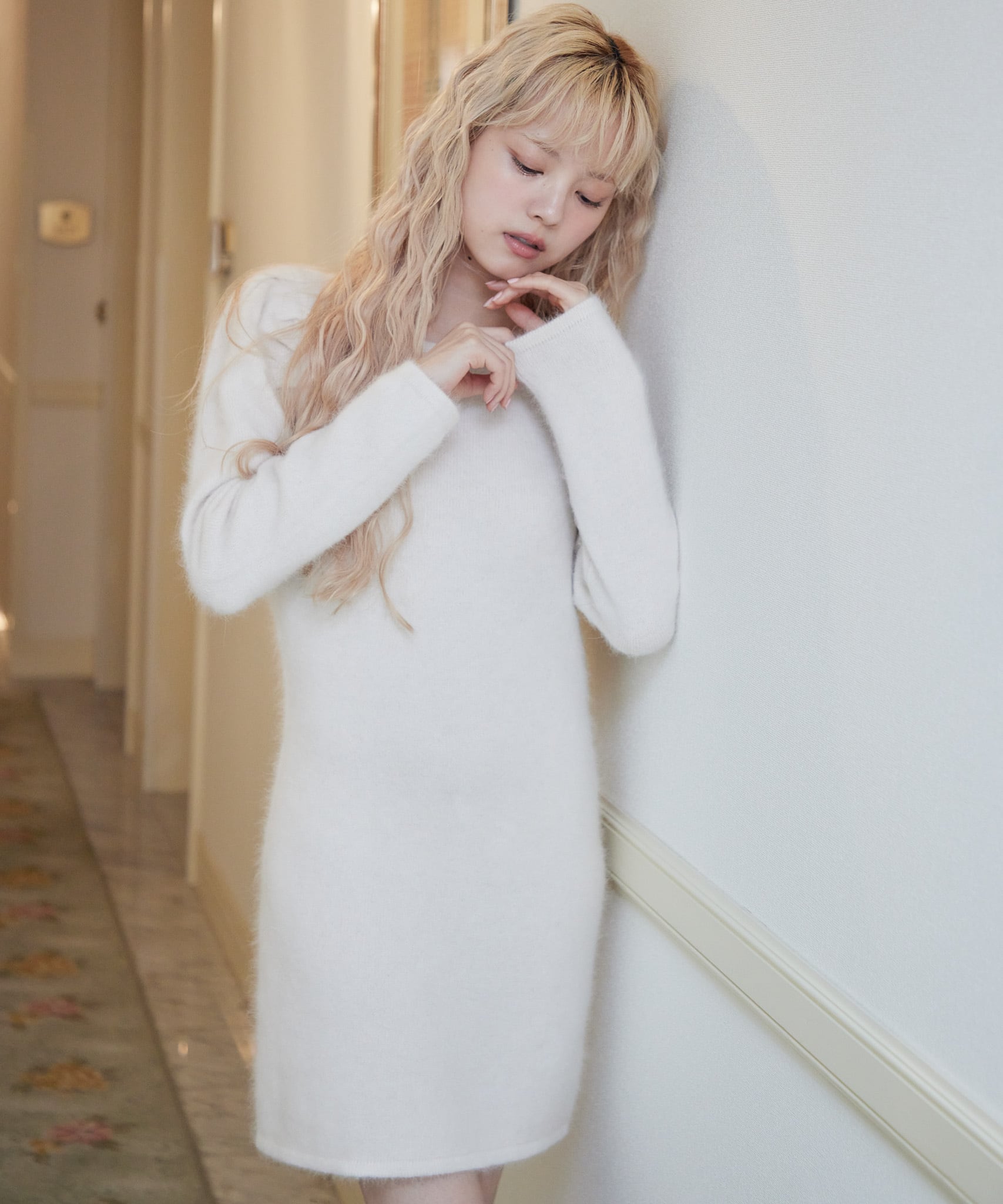 アンゴラでふんわりと仕上げたニットのミニワンピース。