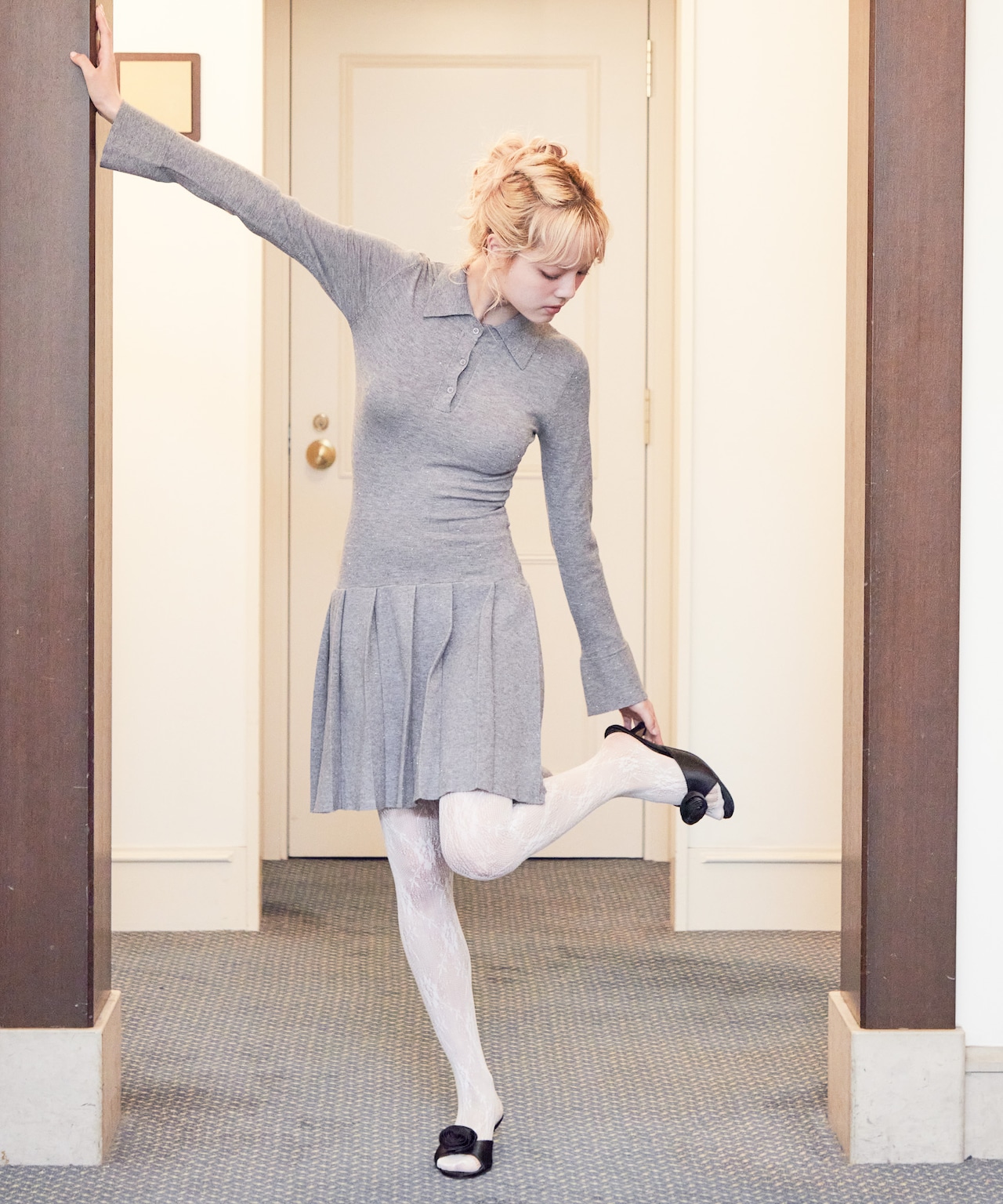 Low waist pleated glitter knit dress【gray】125046