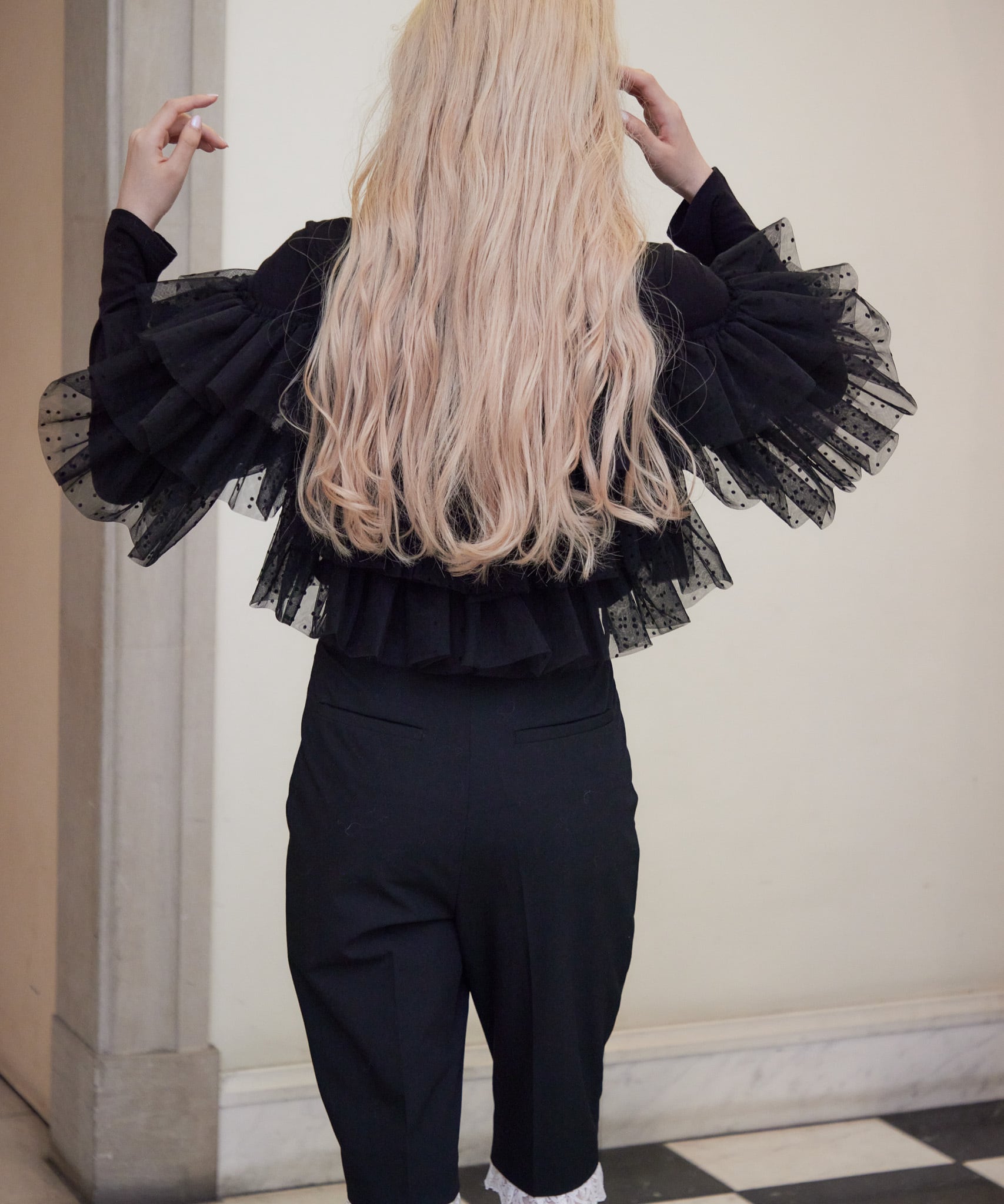キャミソールは、ドットチュールをふんだんに使用し、ボリューミーに仕上げました。