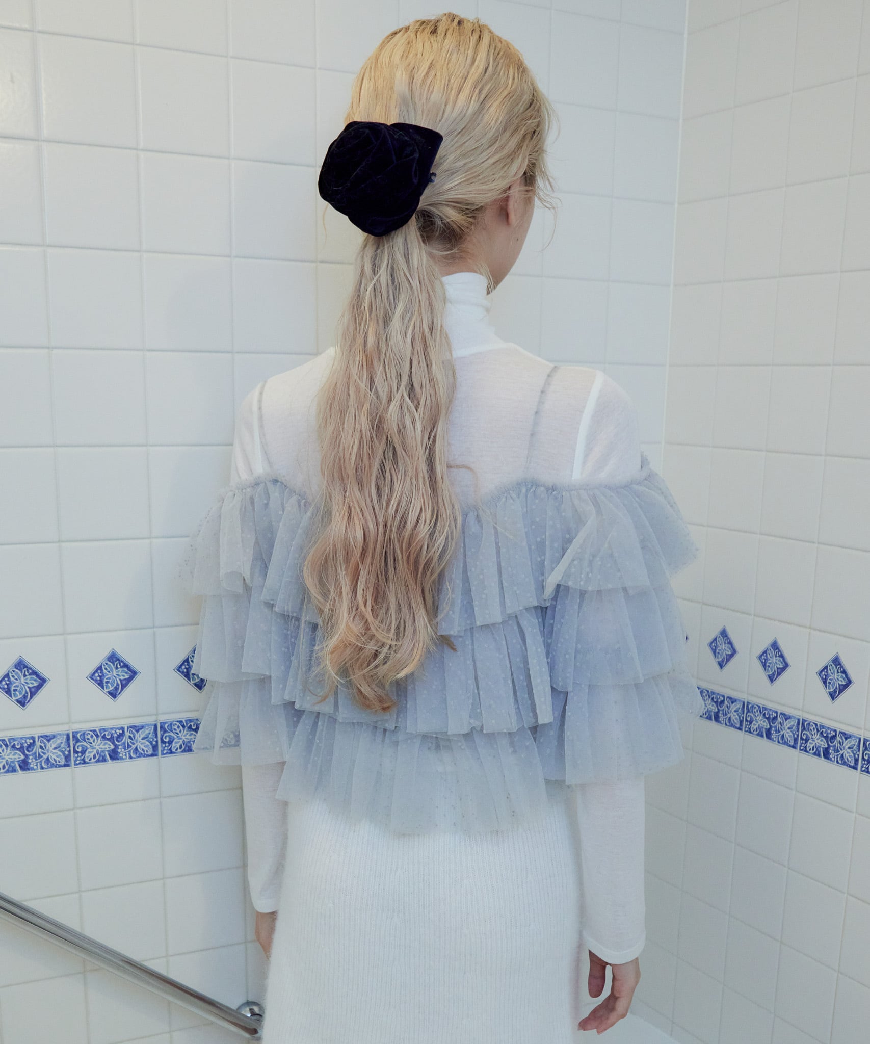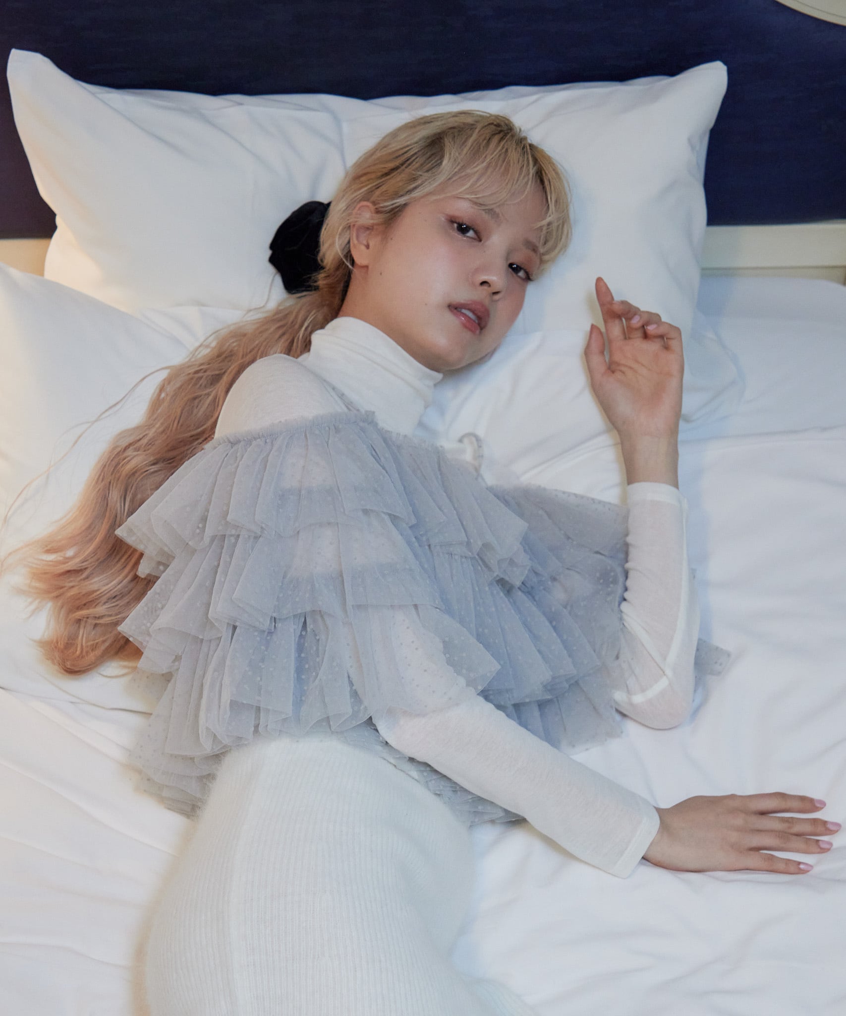 キャミソールは、ドットチュールをふんだんに使用し、ボリューミーに仕上げました。