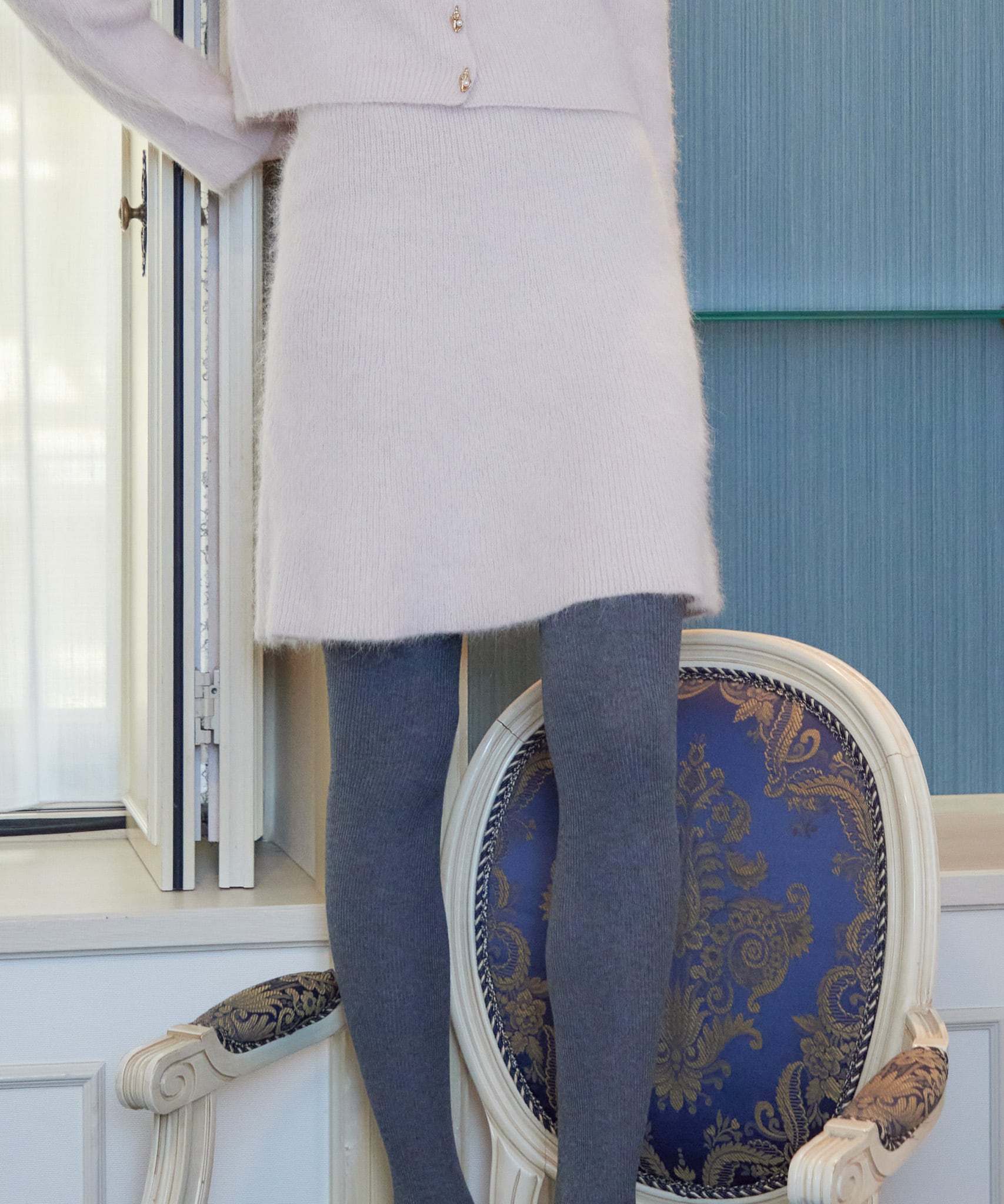 裏地はついていませんが、ニットの厚みがあるので、一枚でご着用いただけます。