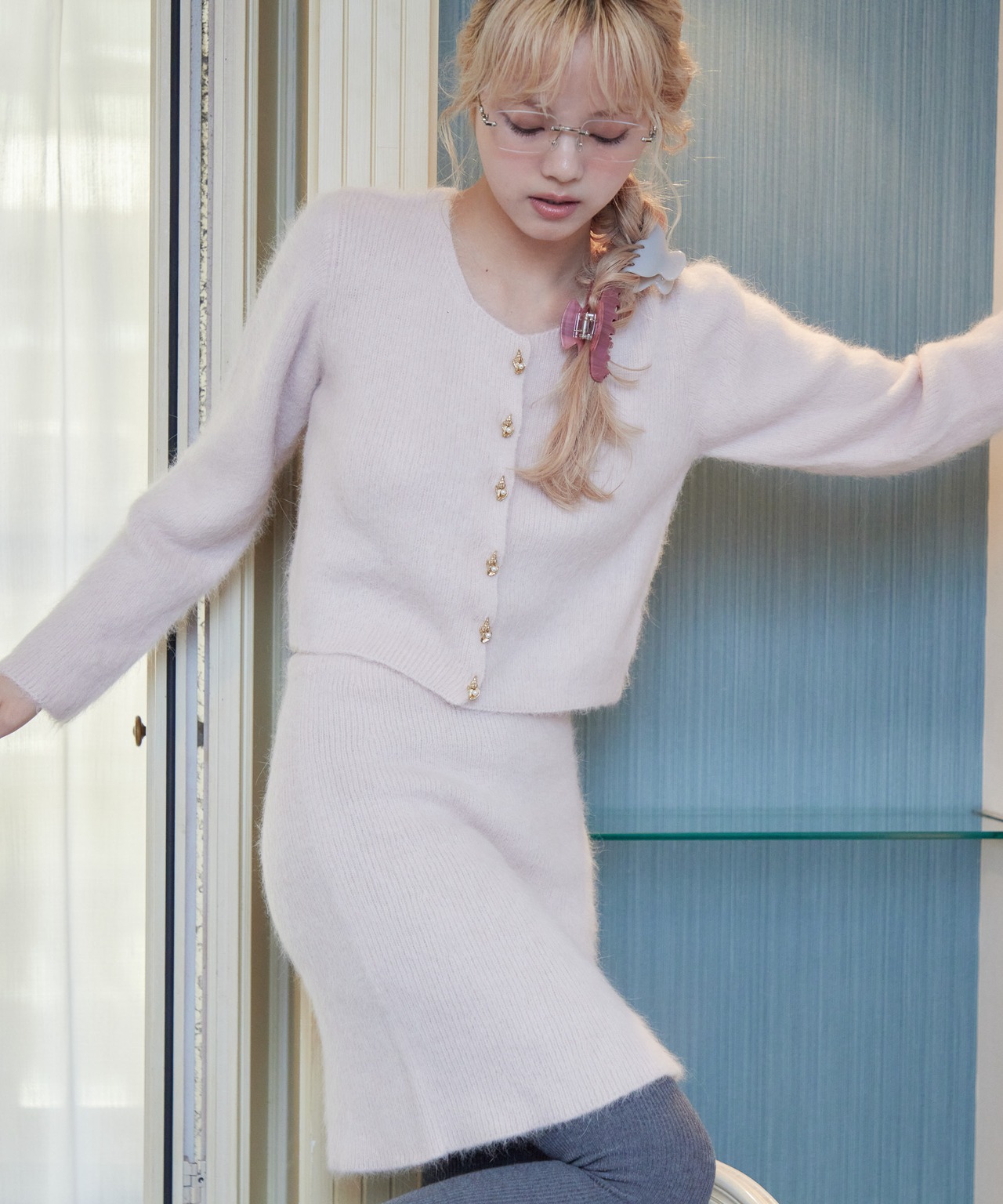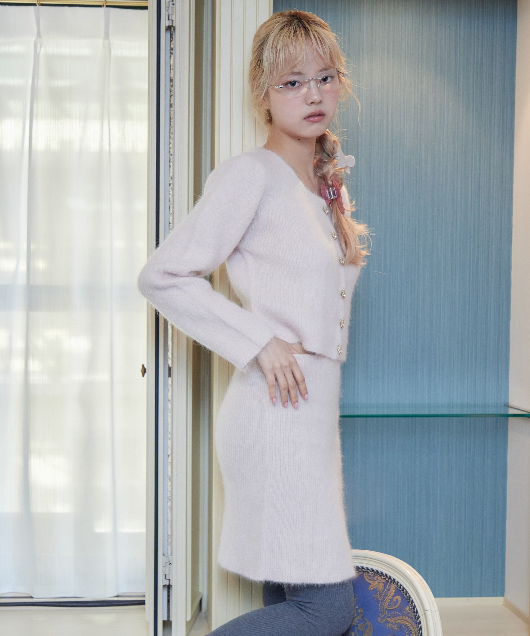 アンゴラ60%をふんだんに使用し、毛がふんわりと立ち、まるでうさぎのような仕上がりです。