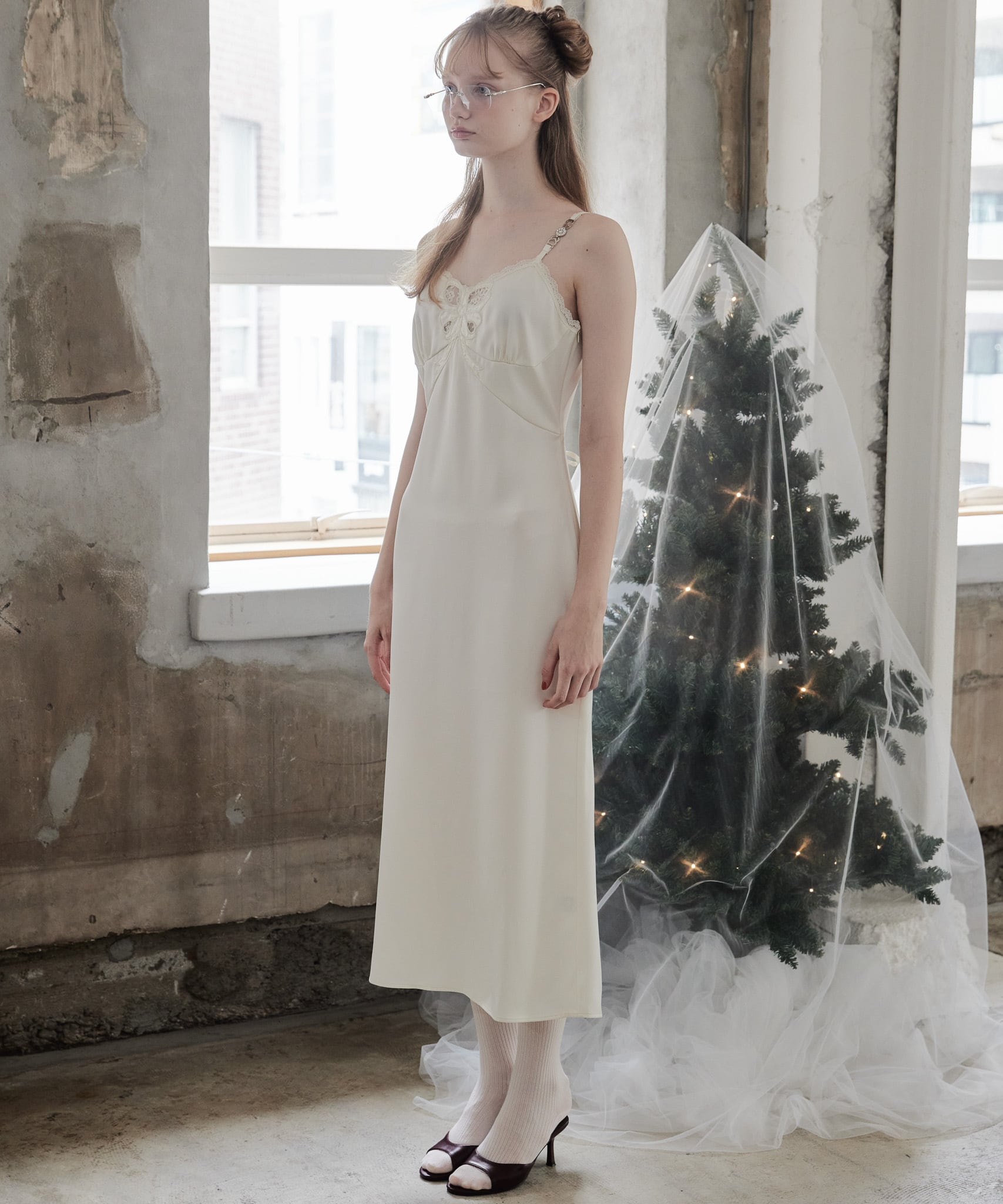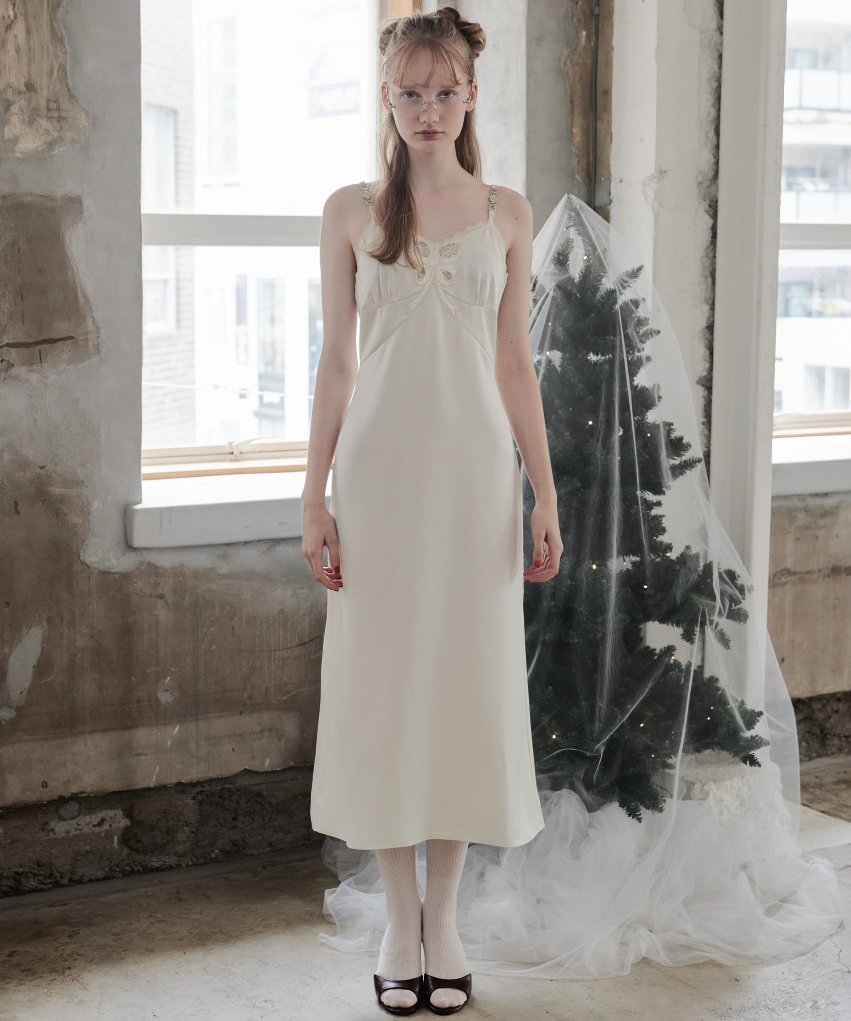 去年も完売したリボン刺繍のキャミワンピースが、肩のアクセをアップデートして今年も登場!