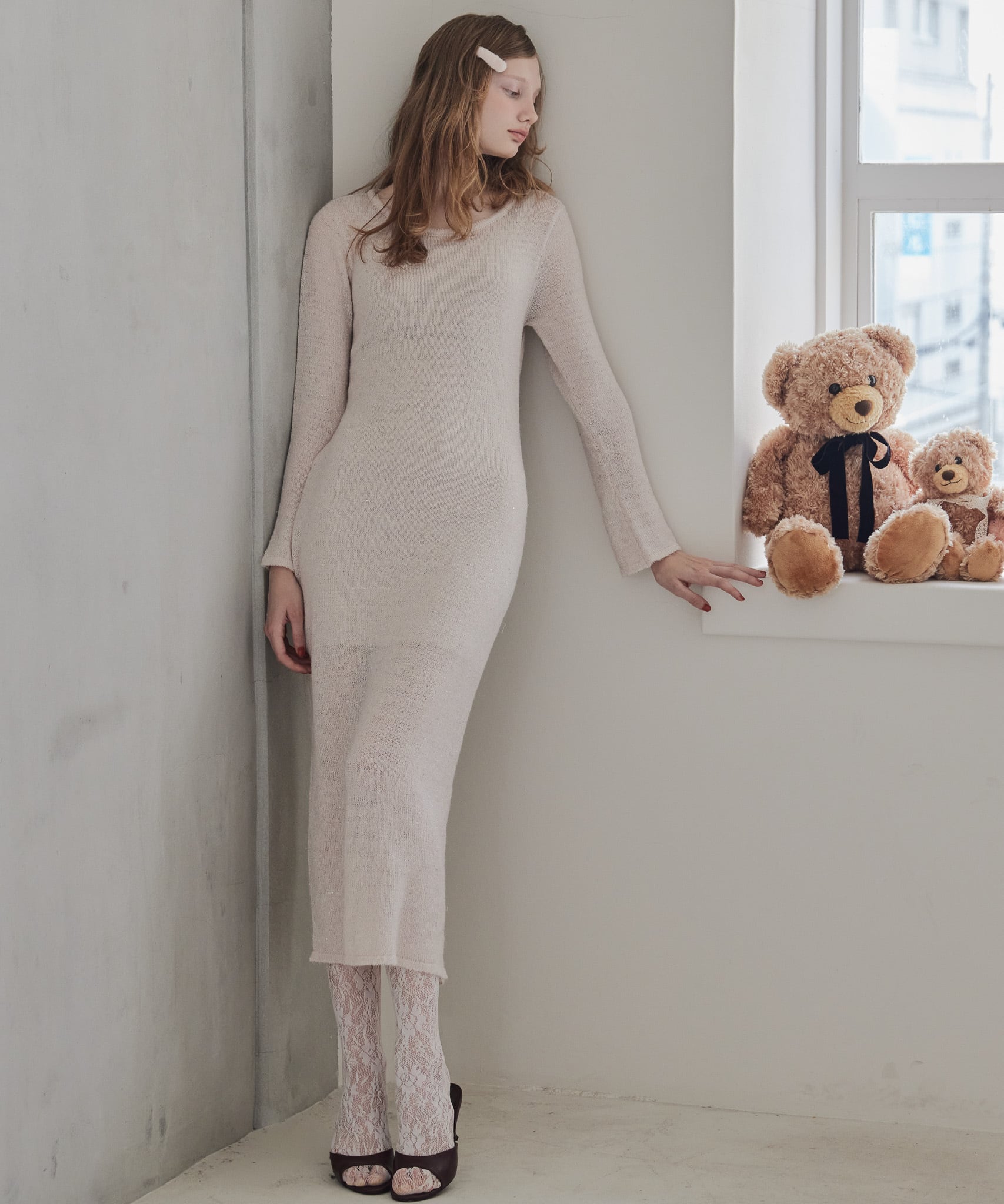 ホリデーシーズンにおすすめ、スパンコールが煌めくニットワンピースです。