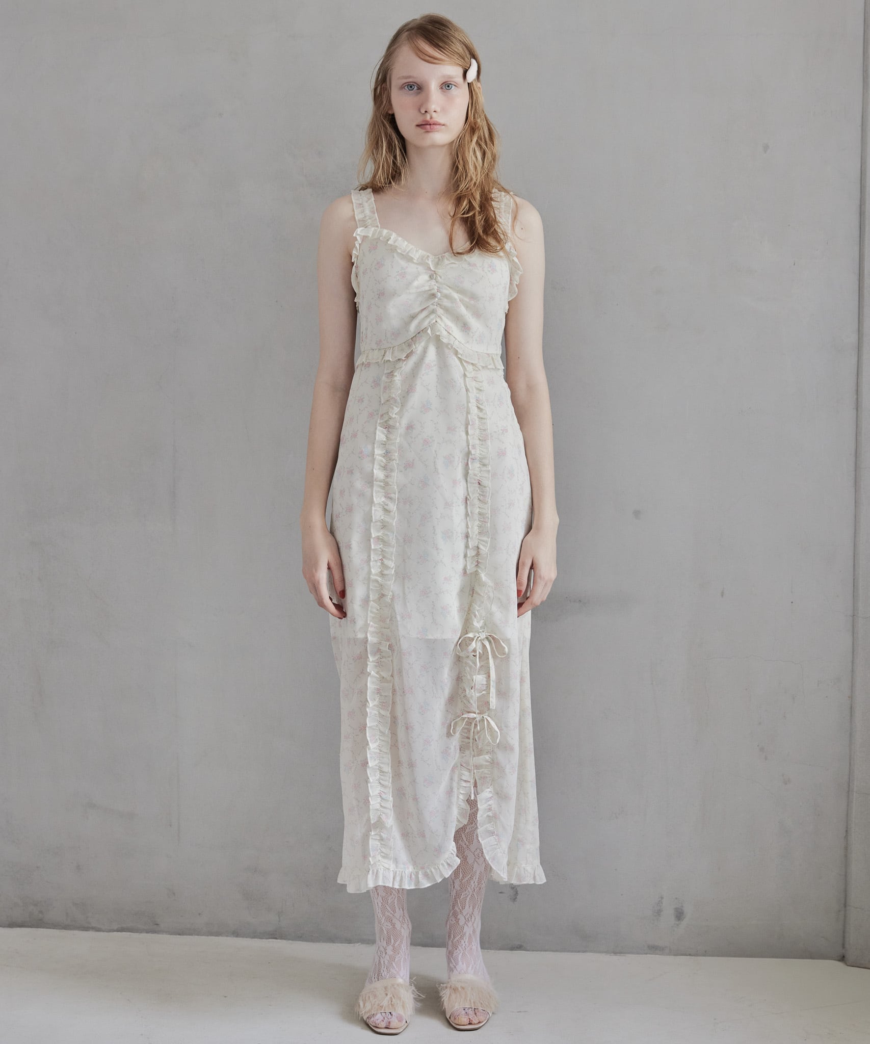 Frill slit cami dress【white】125054