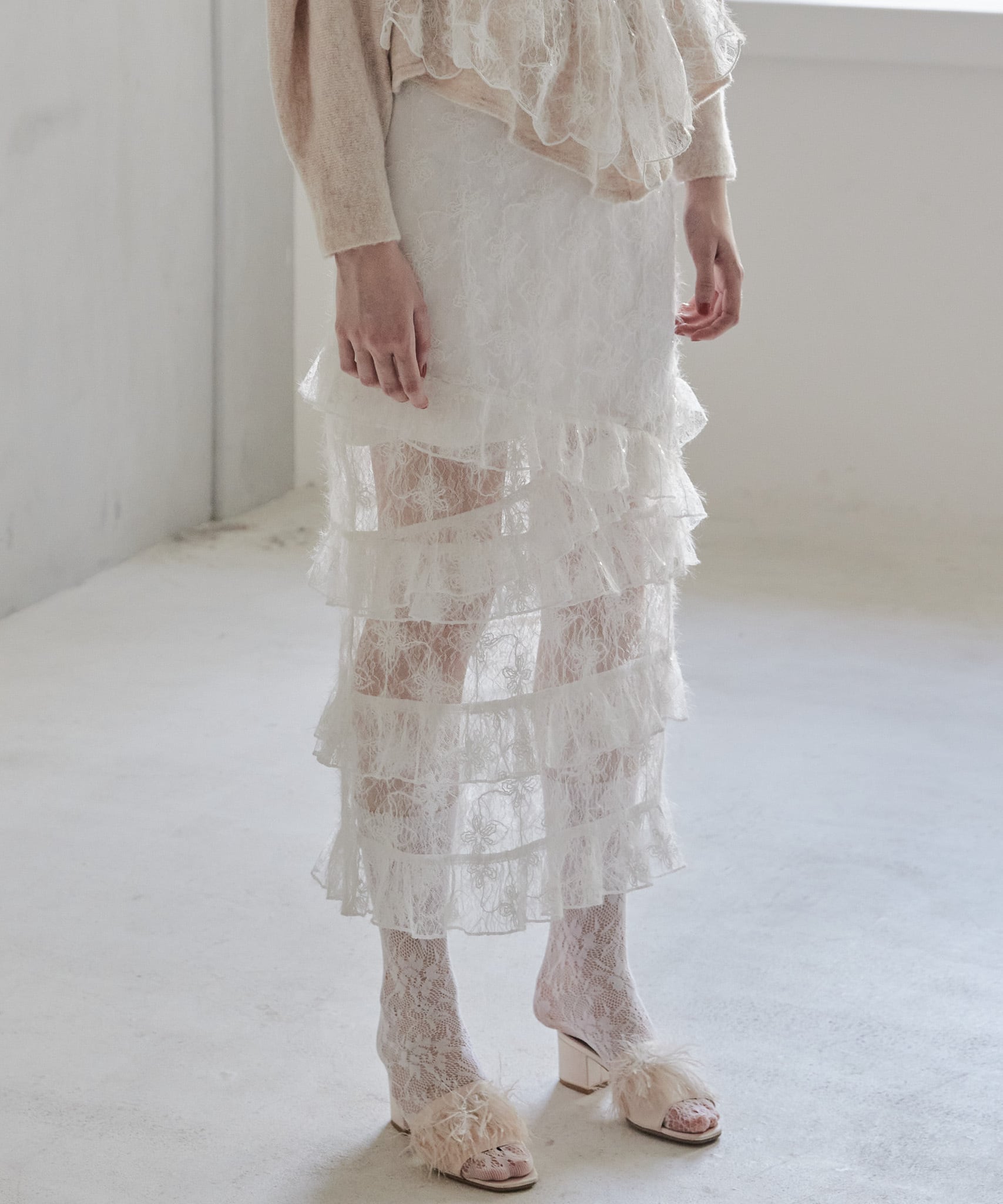 スパンコールと、シャギー感のあるレースでホリデーシーズンにぴったりなスカートです。