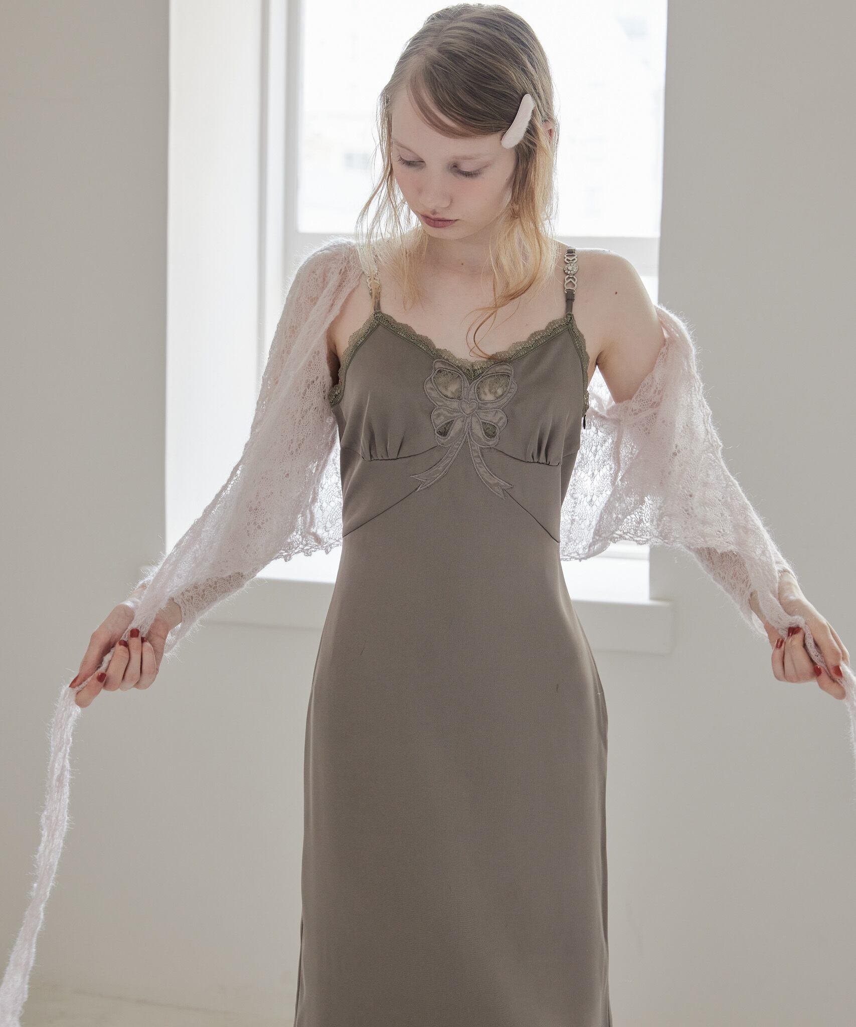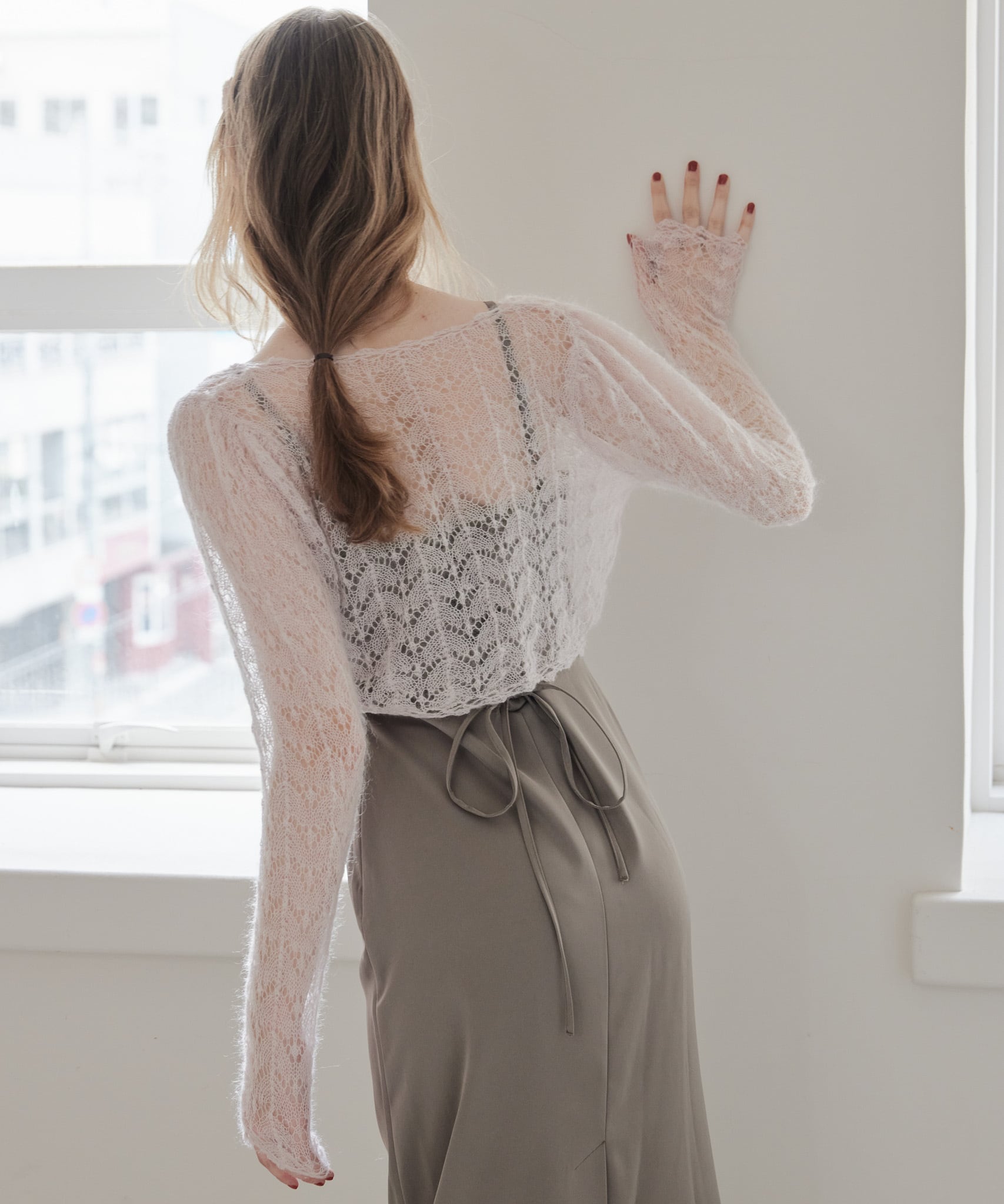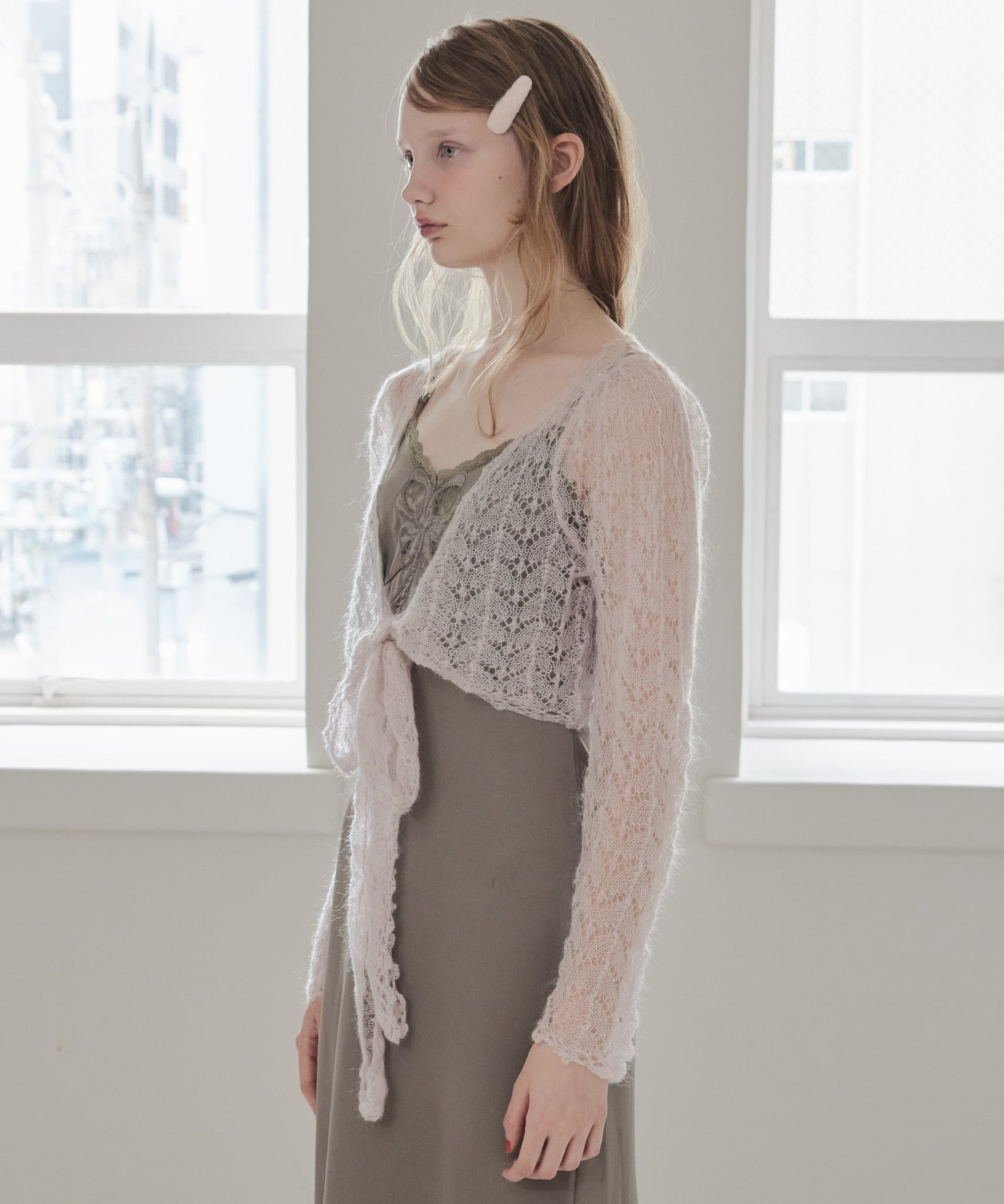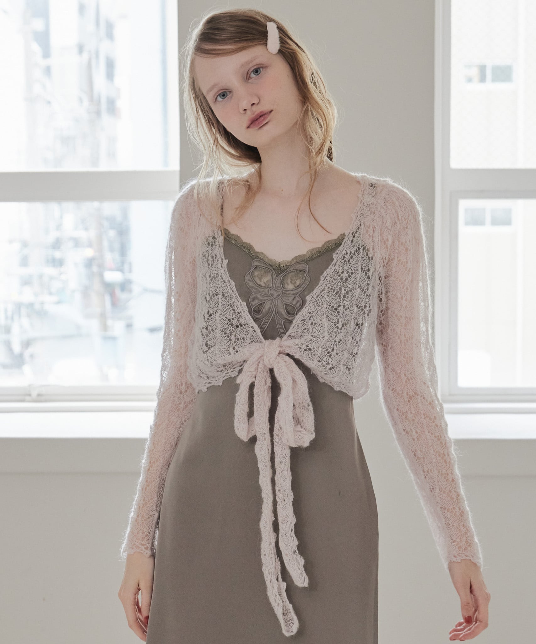 Mohair crochet ribbon cardigan【pink】125049