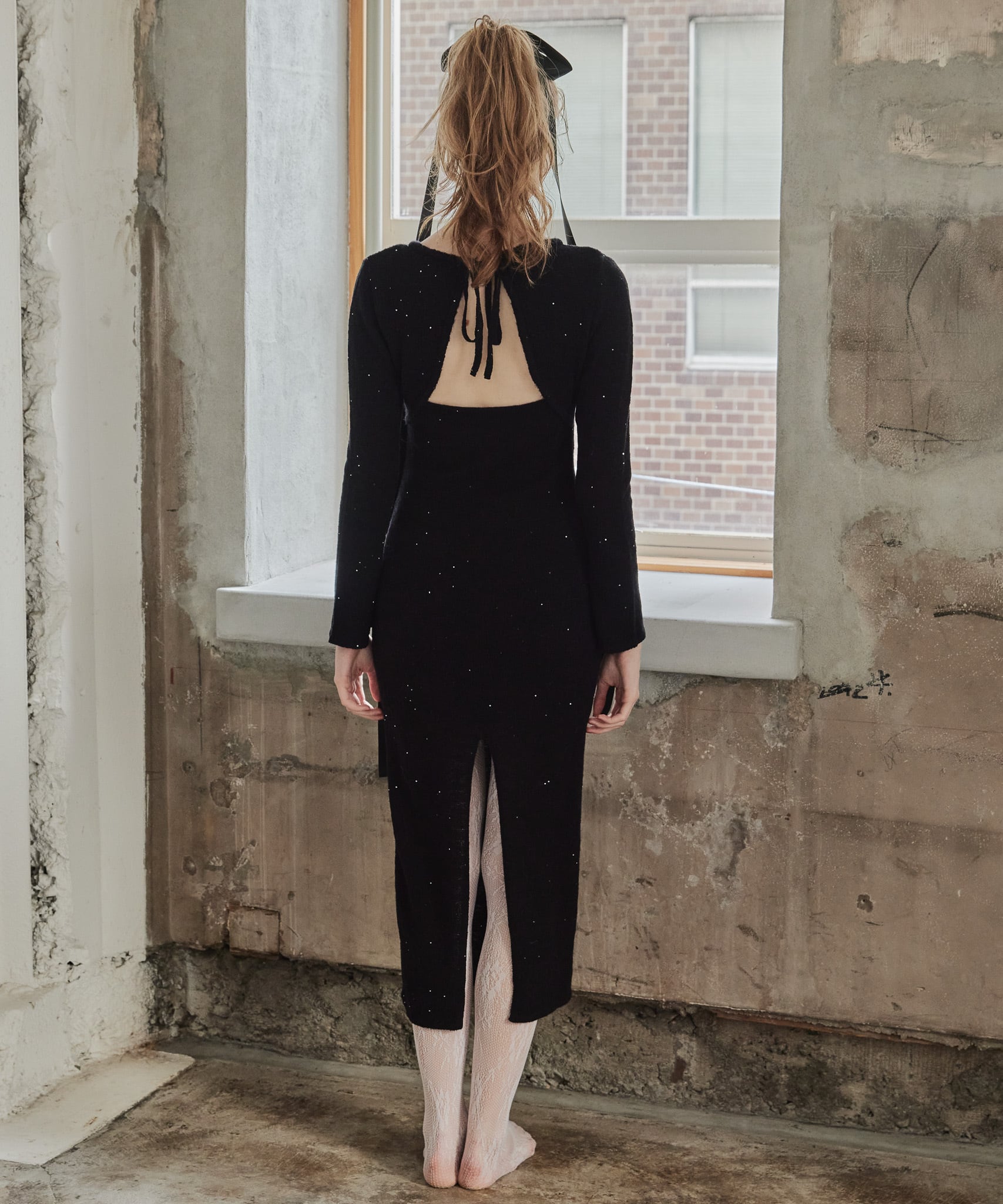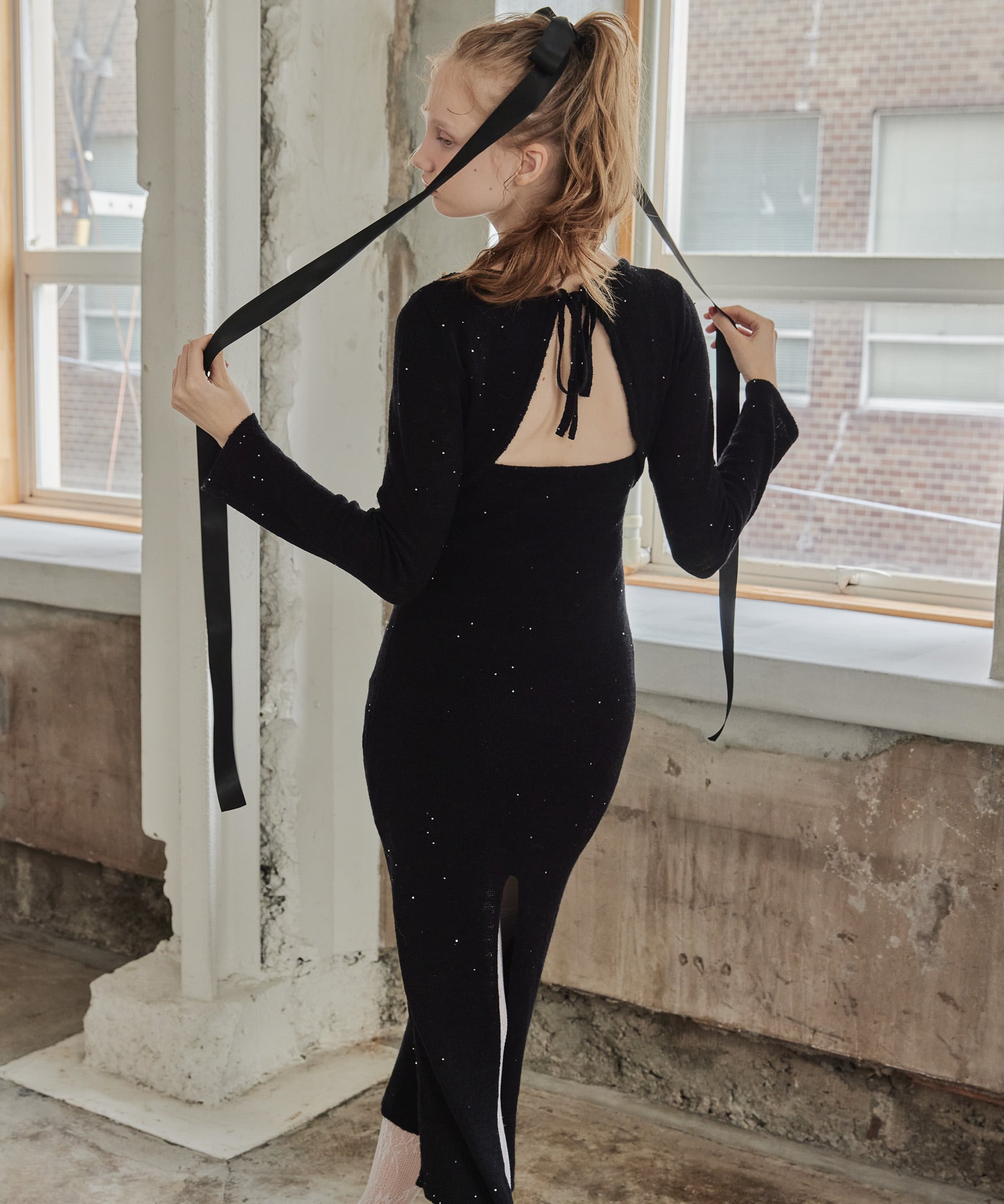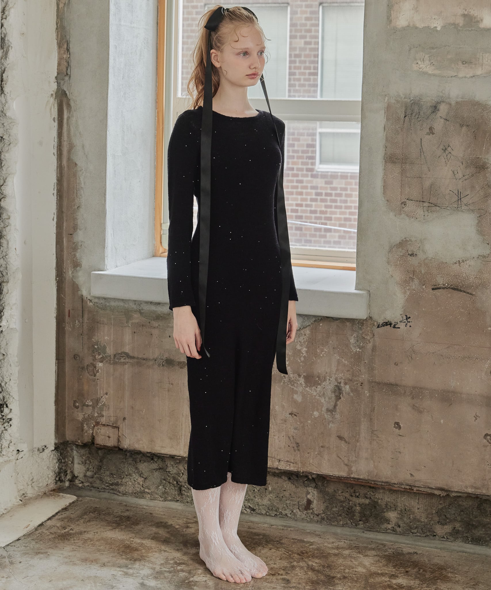 ホリデーシーズンにおすすめ、スパンコールが煌めくニットワンピースです。