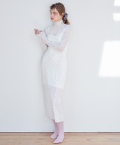 チュールにプリントを施したワンピース。