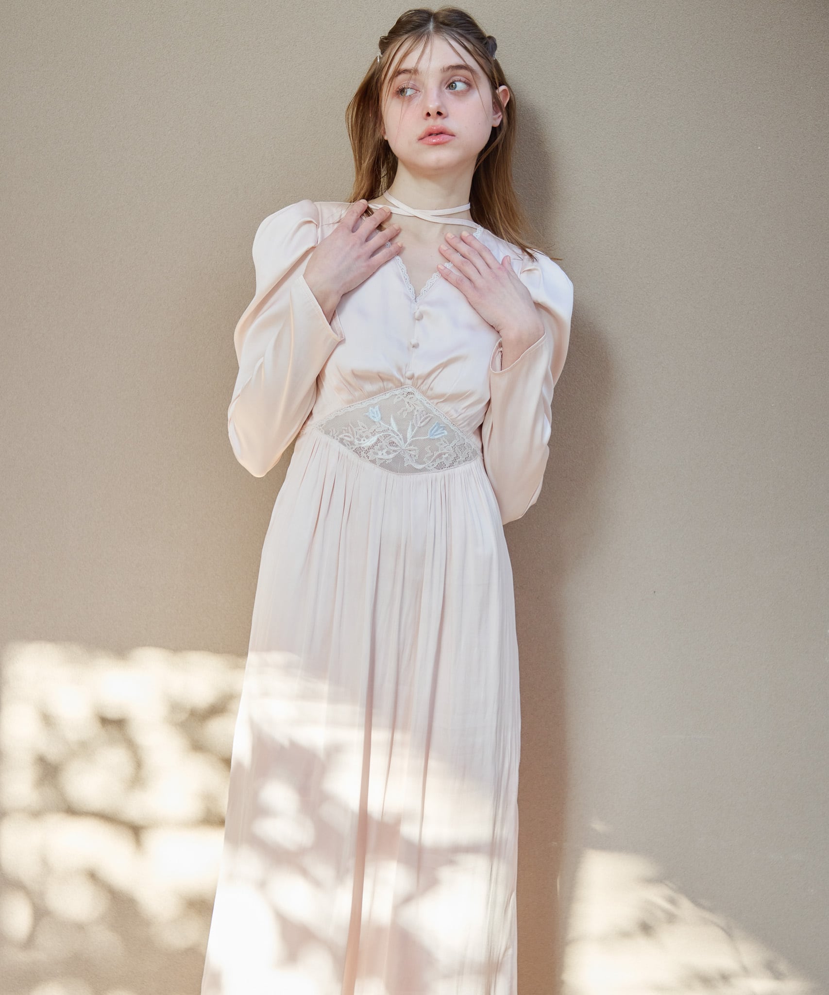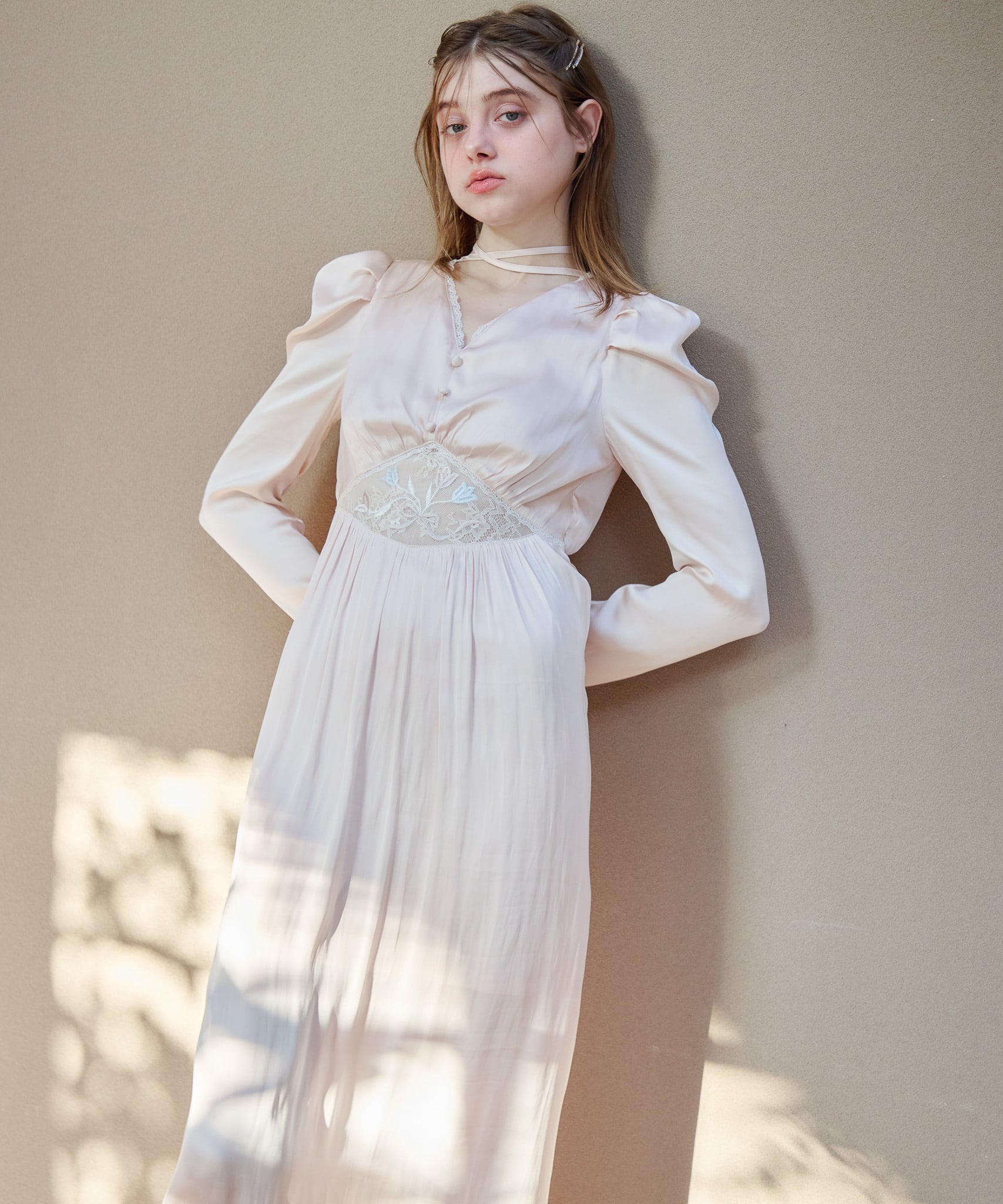 Tulip embroidered dress【pink beige】126002