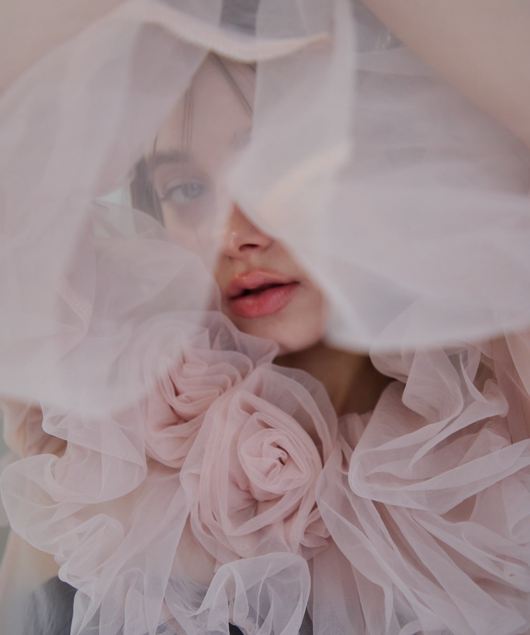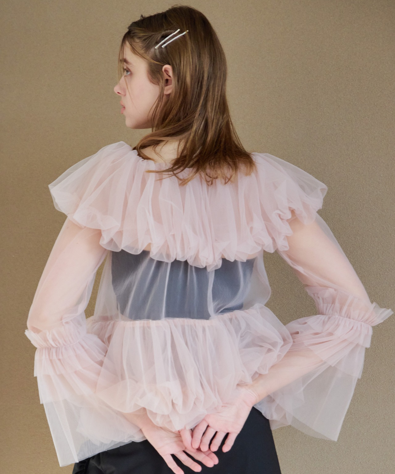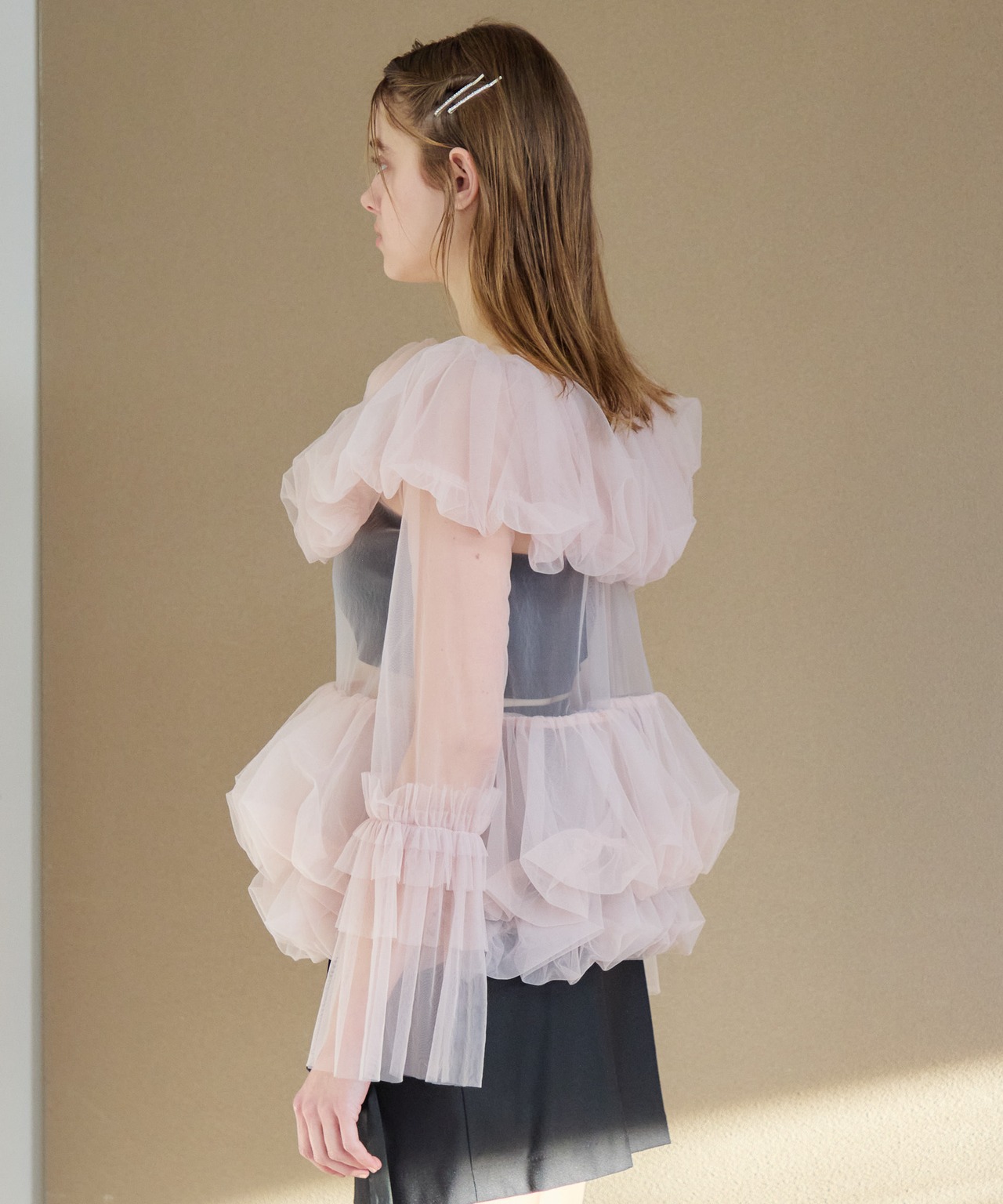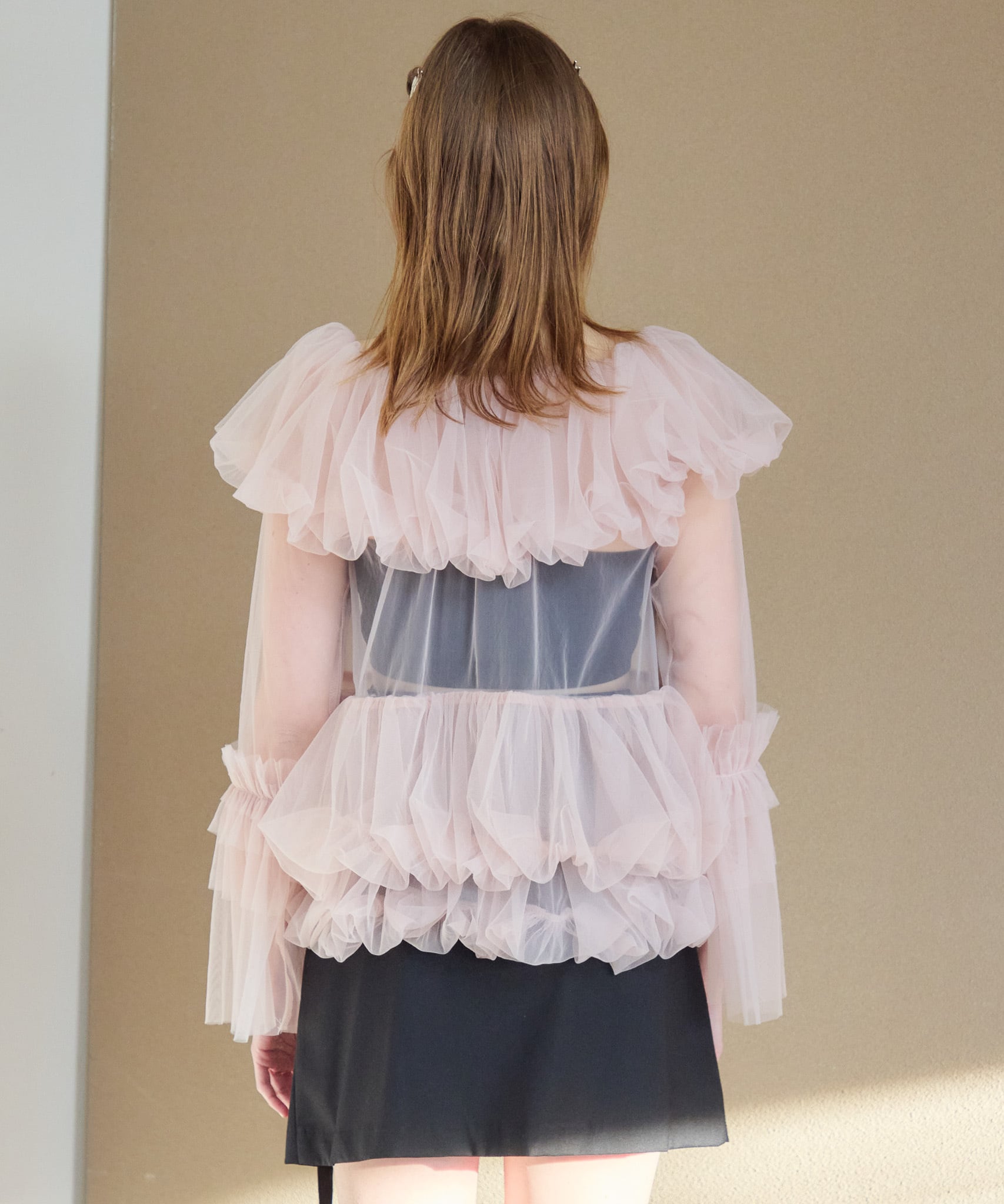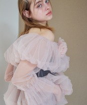Rose tulle off shoulder blouse【pink】126006