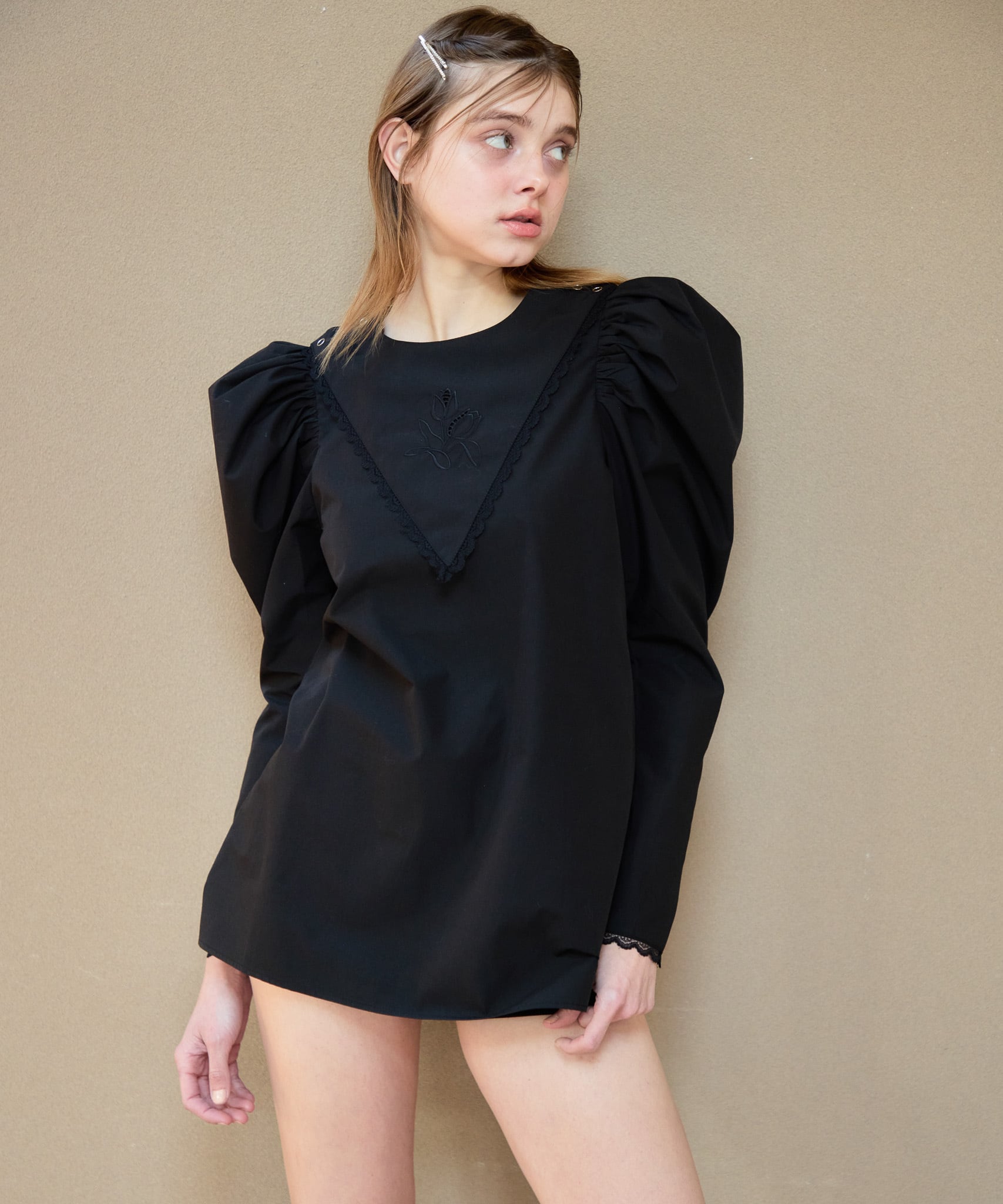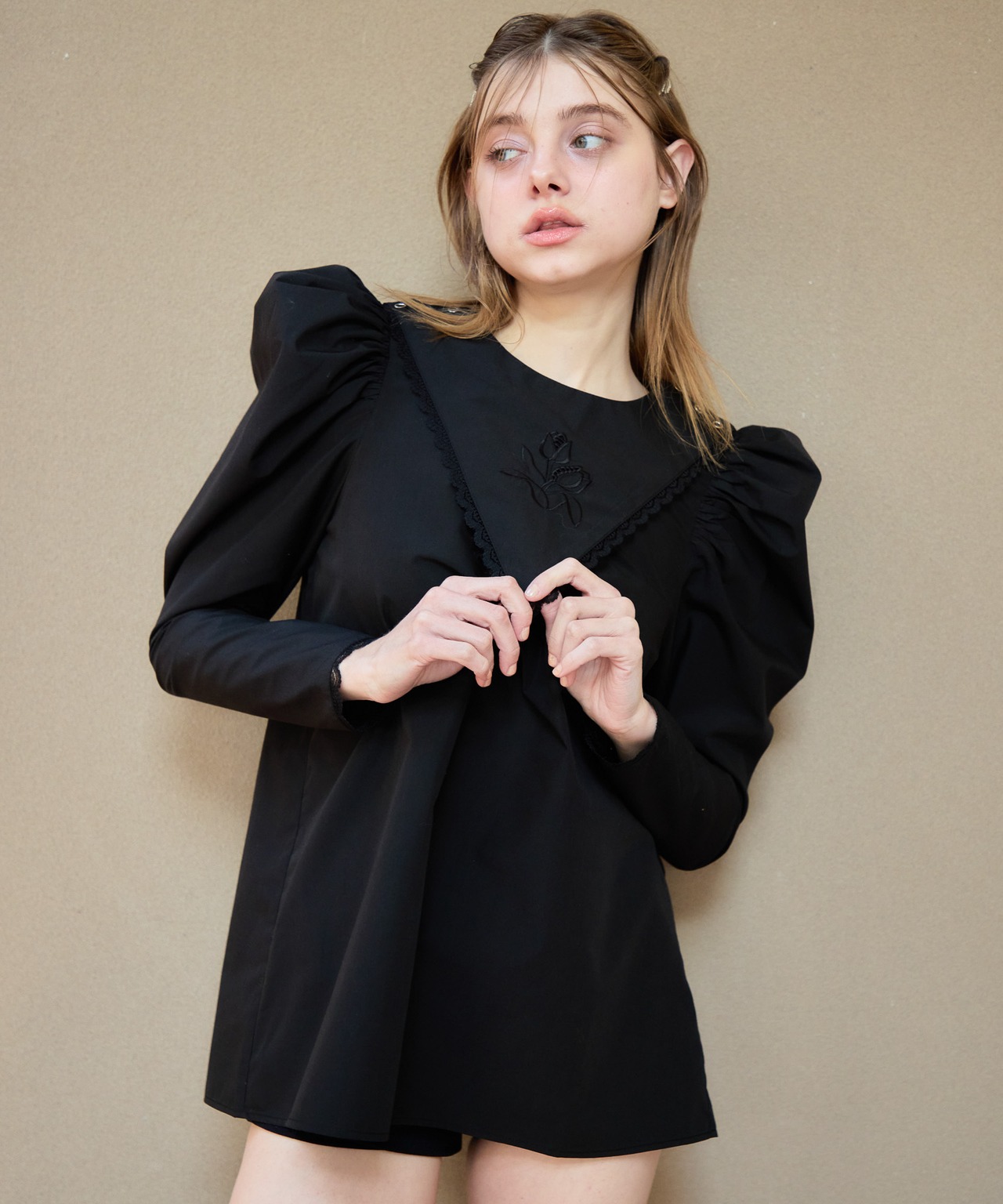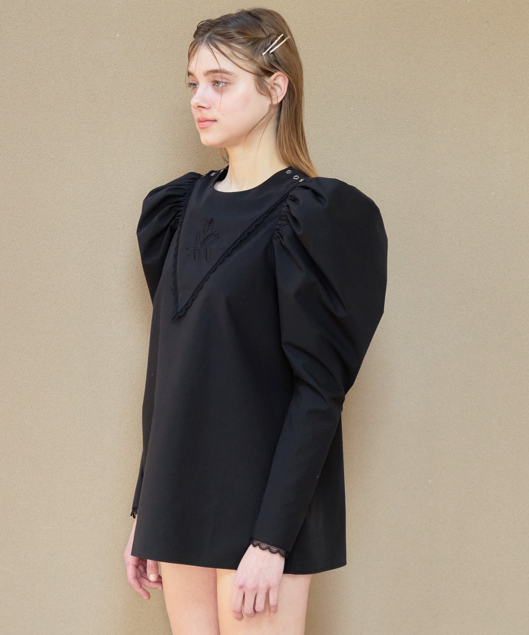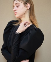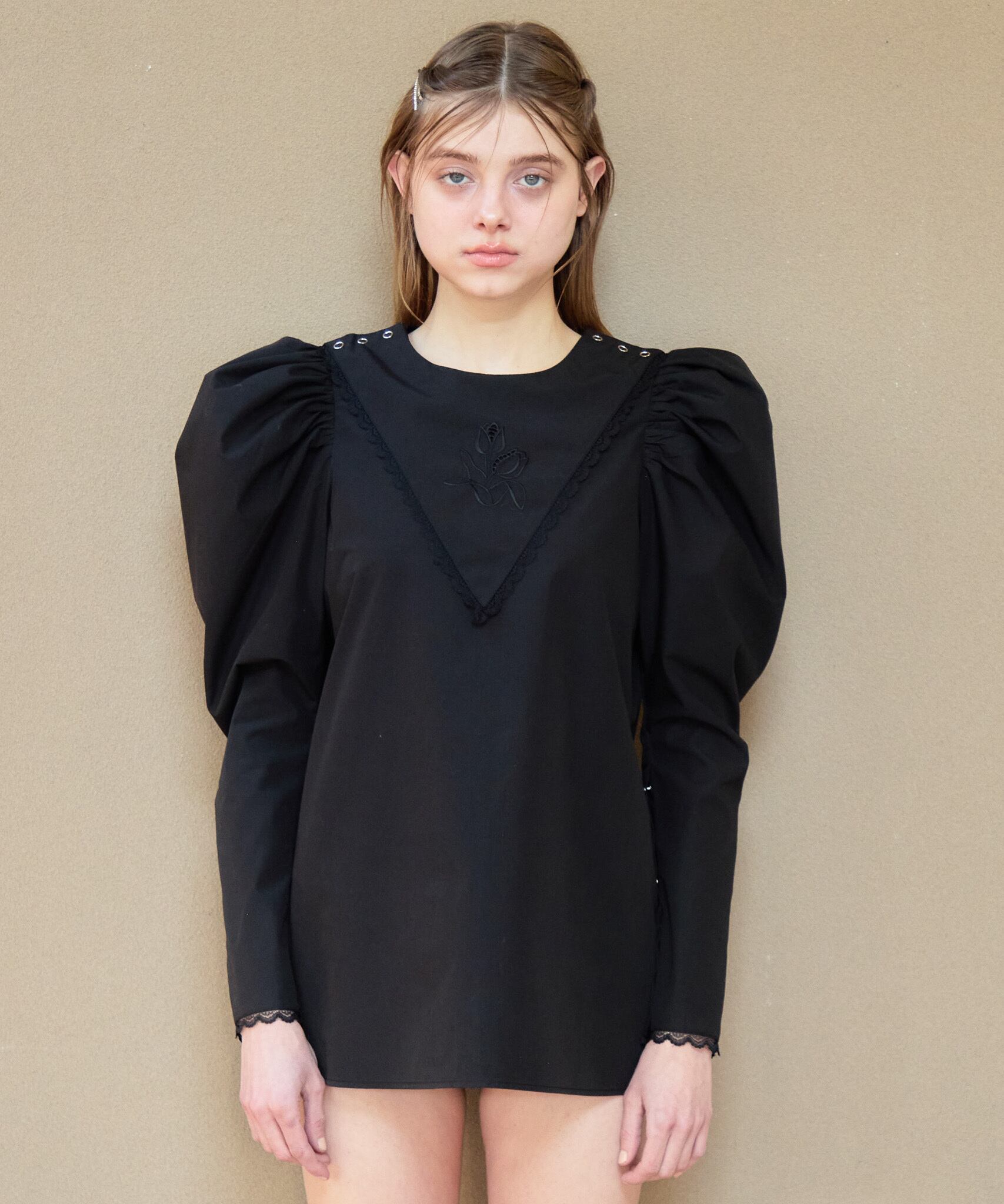 Tulip embroidered volume sleeve blouse【black】126007
