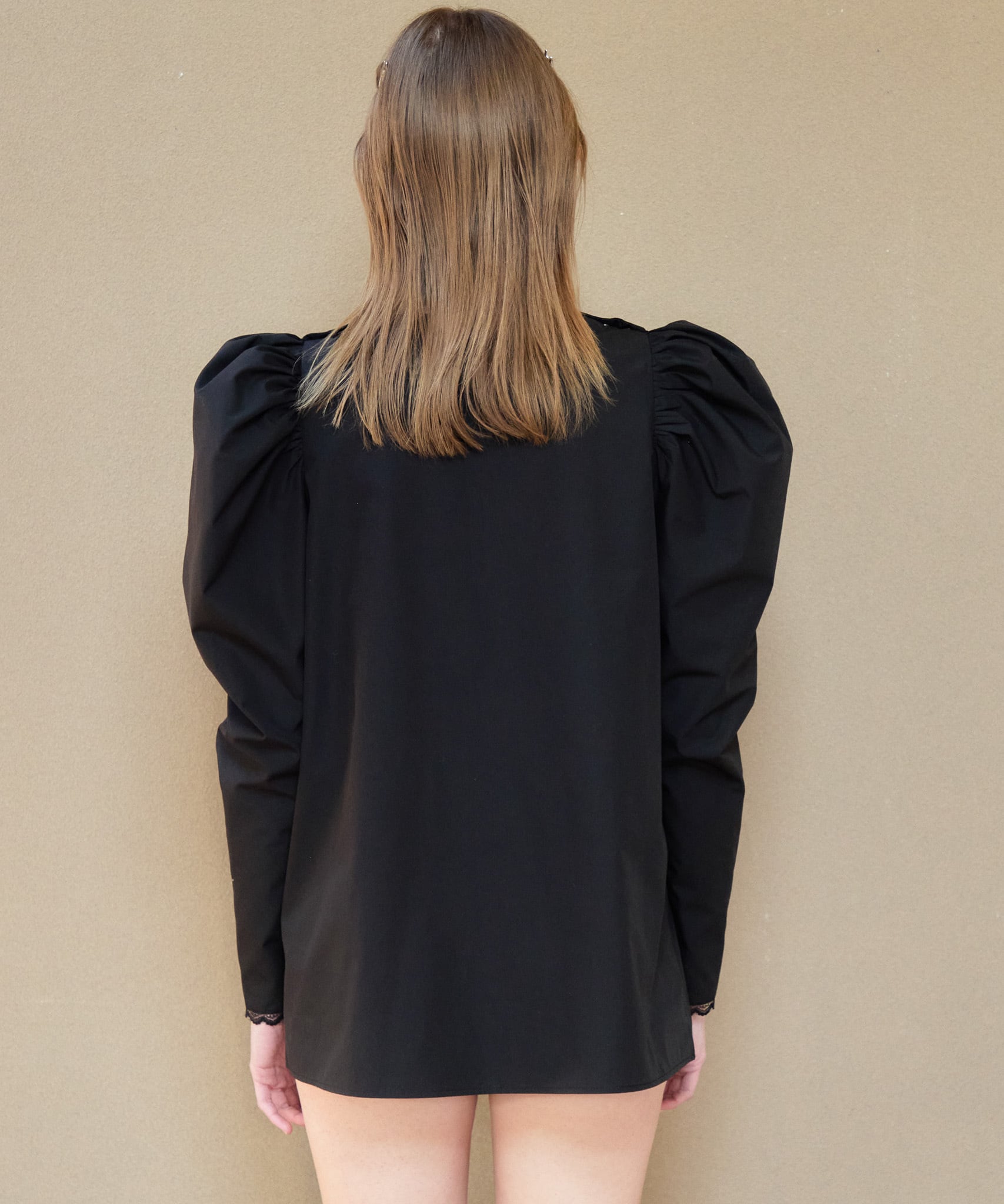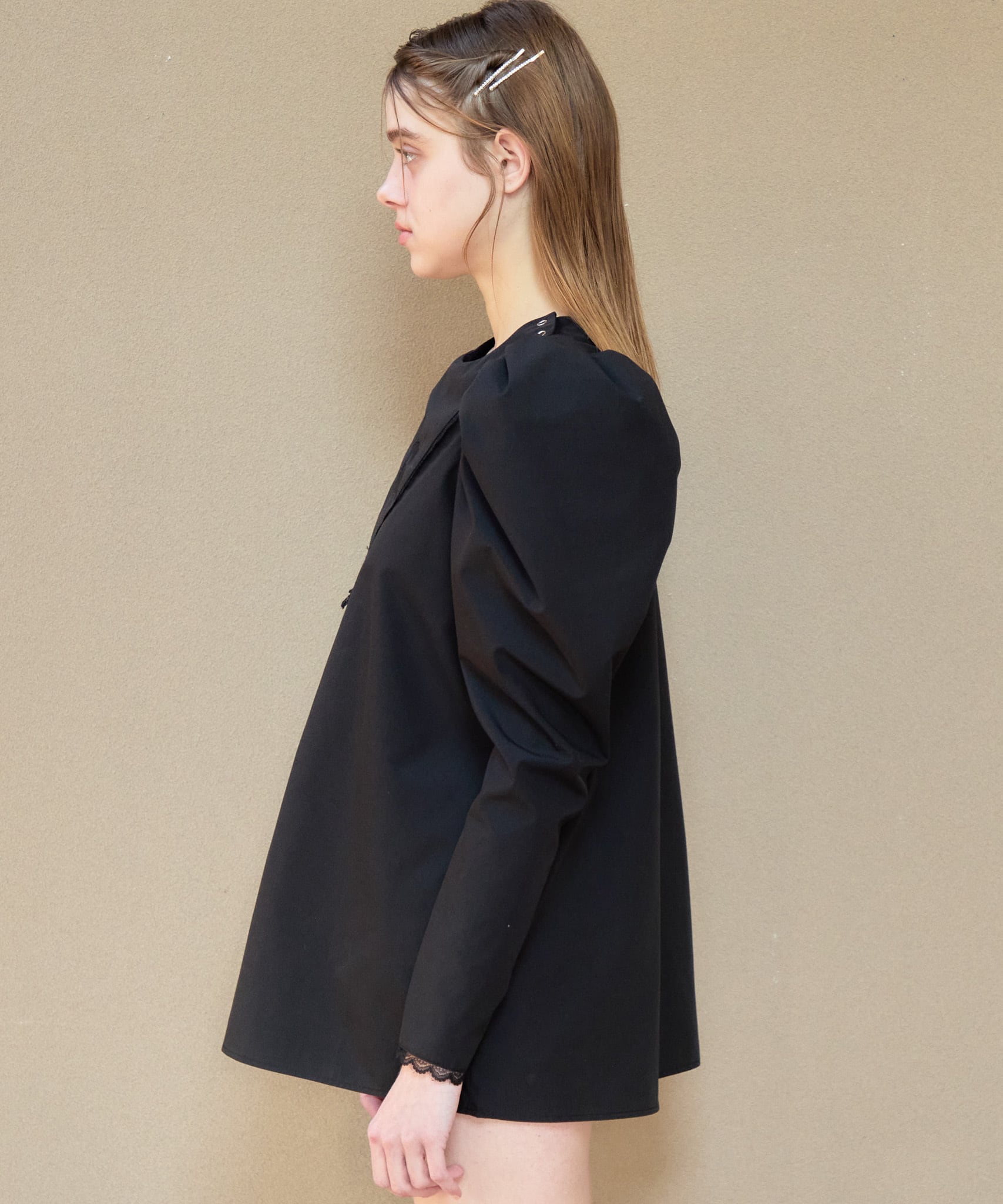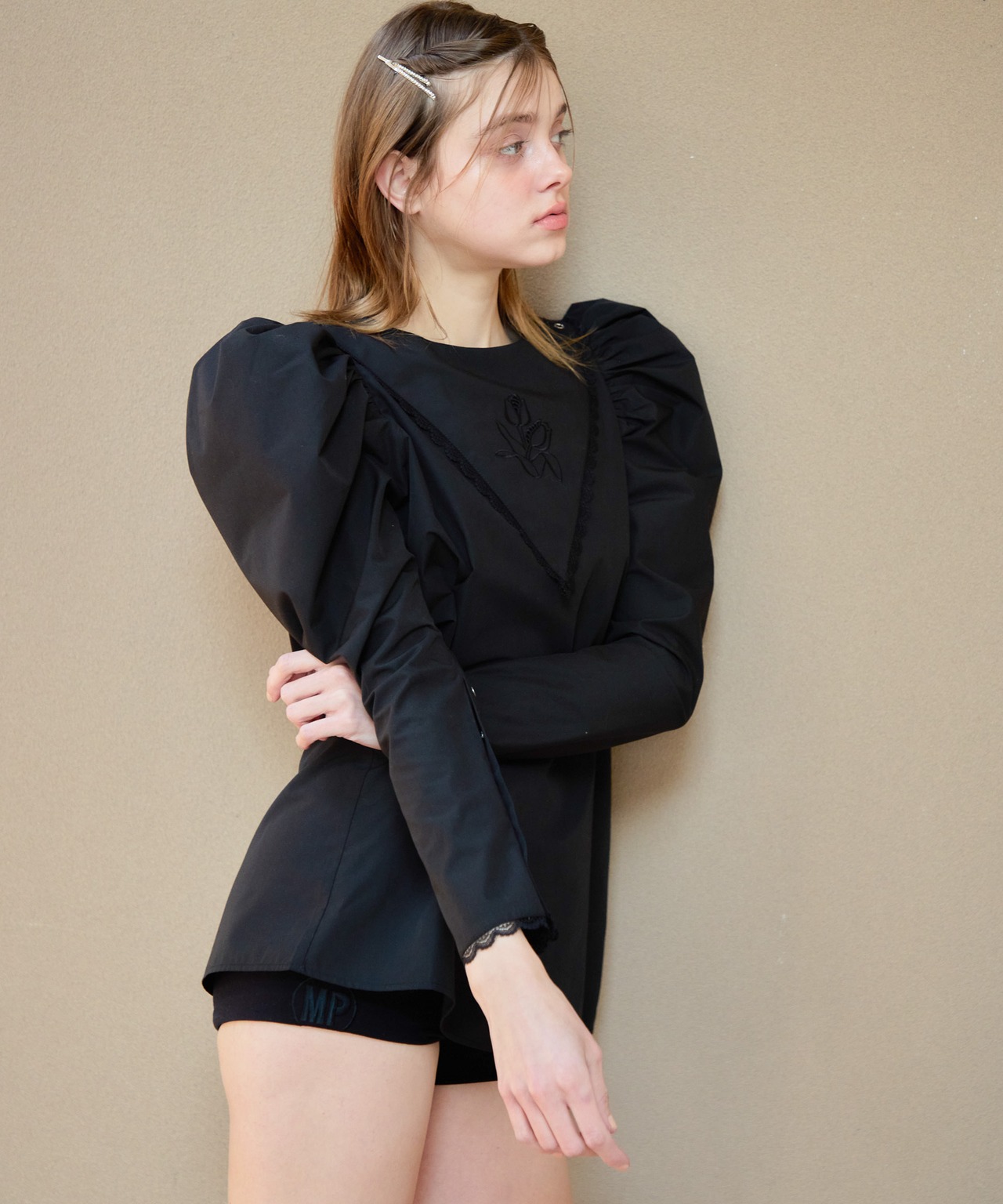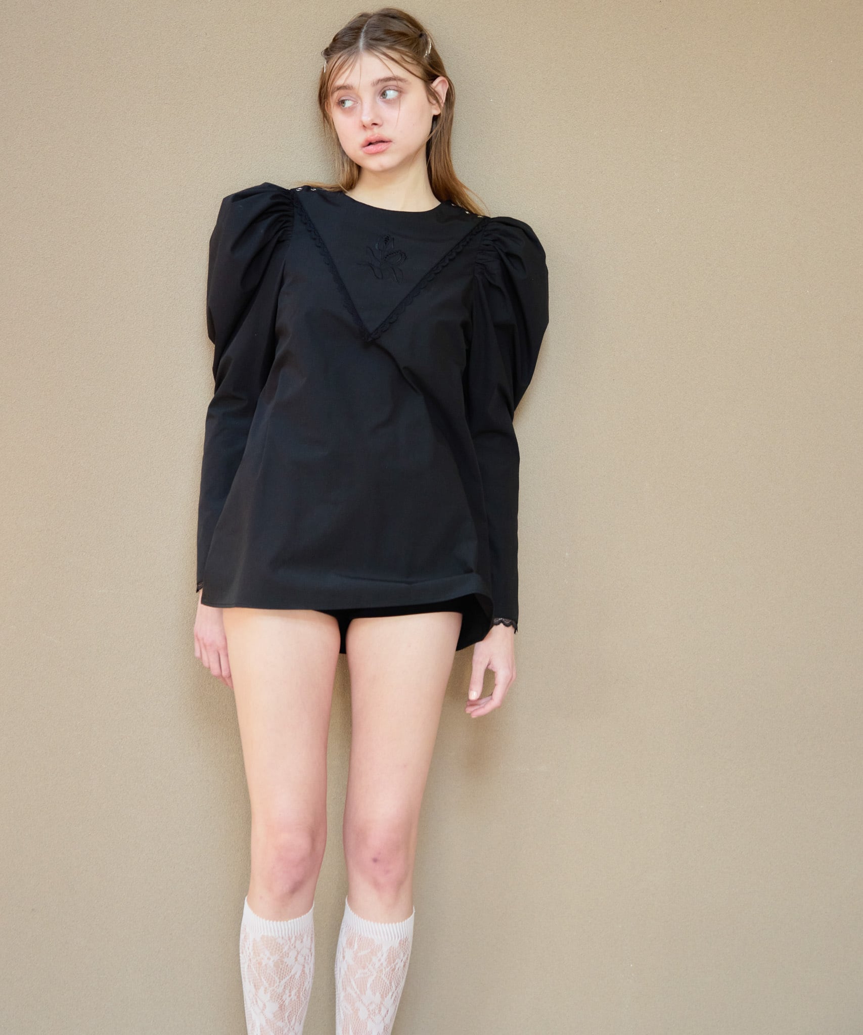 Tulip embroidered volume sleeve blouse【black】126007