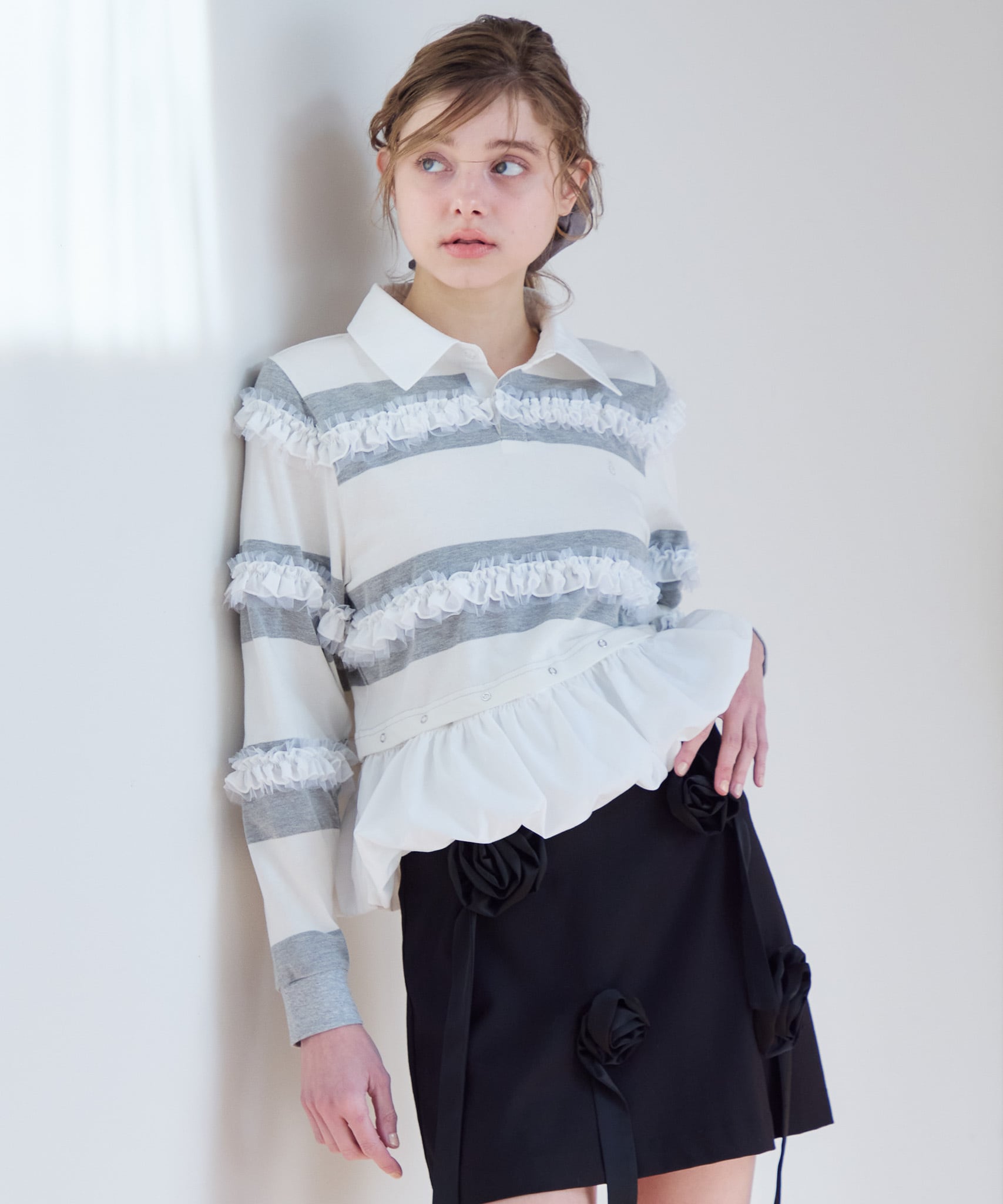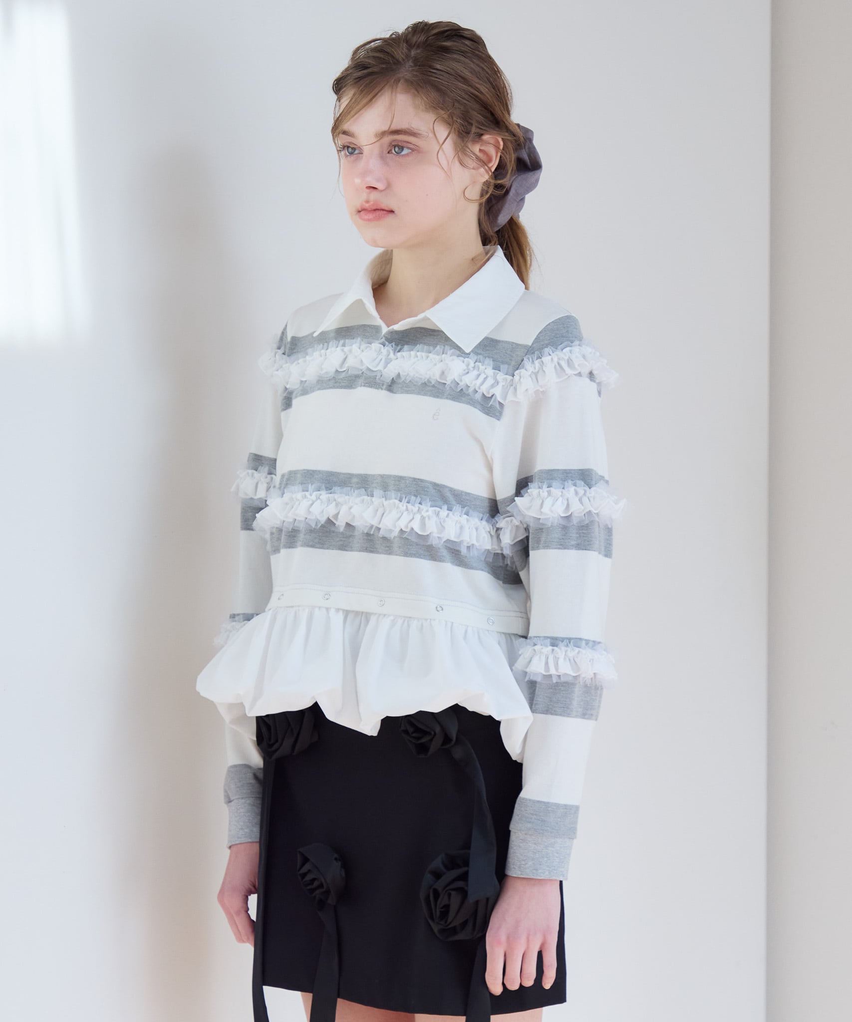 Balloon hem rugby shirt【gray】126008