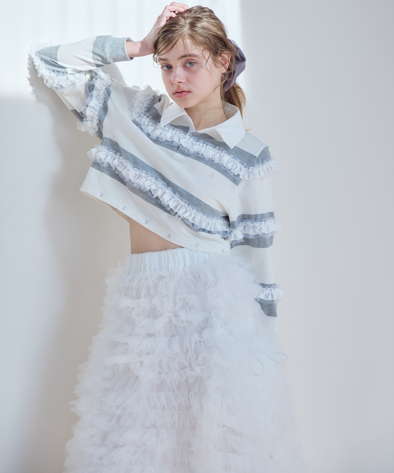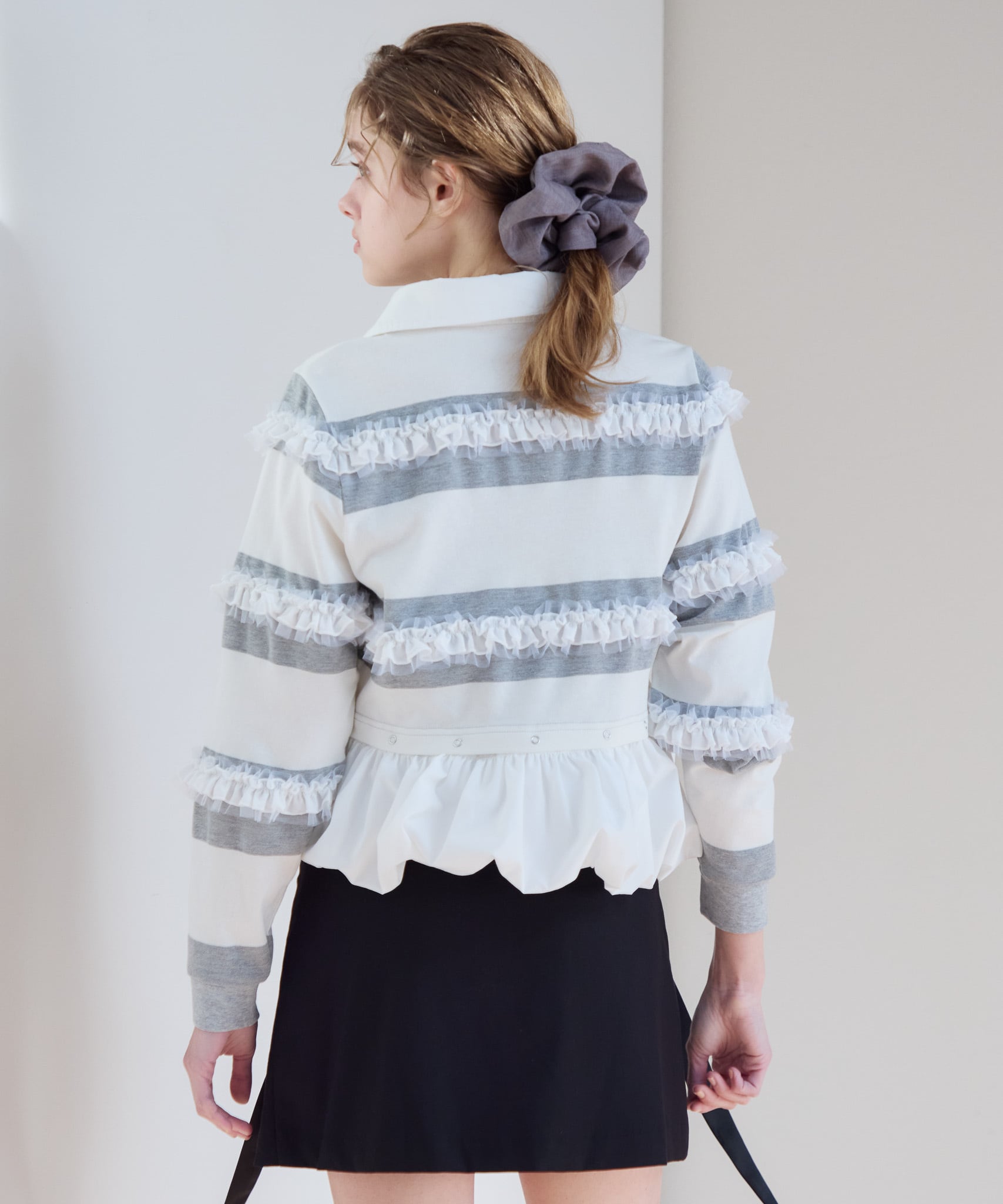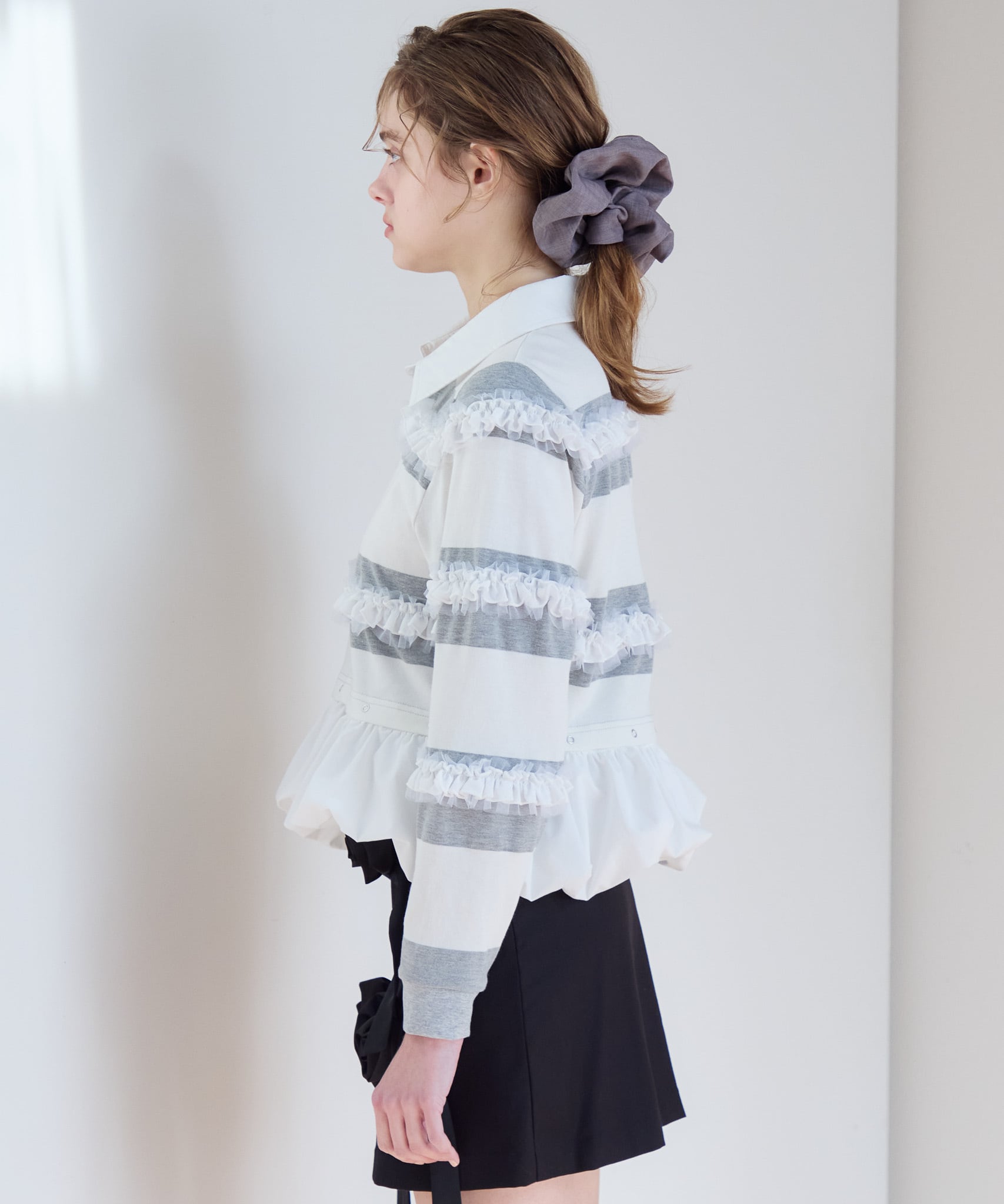 バルーン部分を外すと短丈のトップスとしてもお使いいただけるので、ハイウエストのボトムやボリュームたっぷりのフレアスカートとのコーディネートもおすすめです。