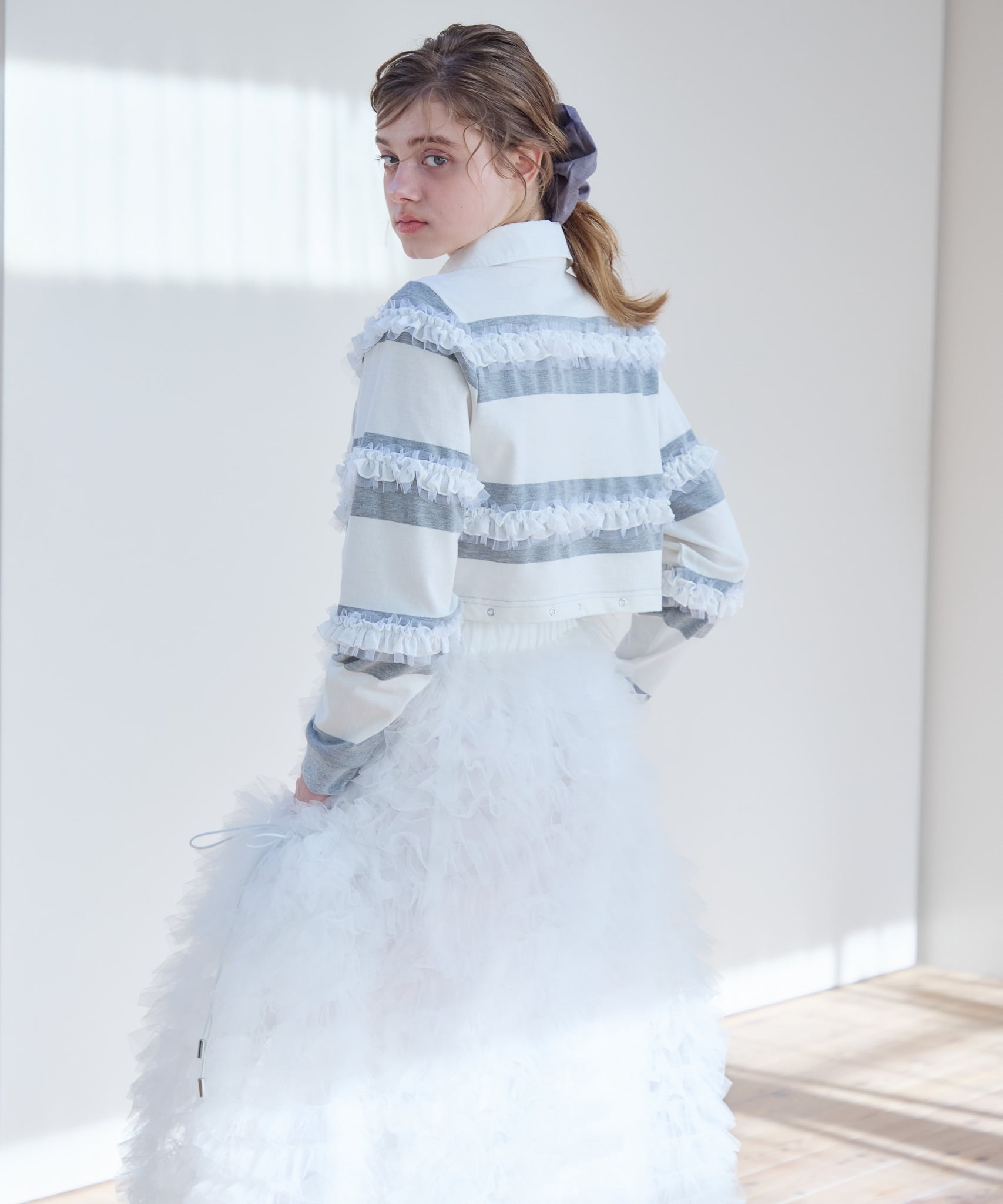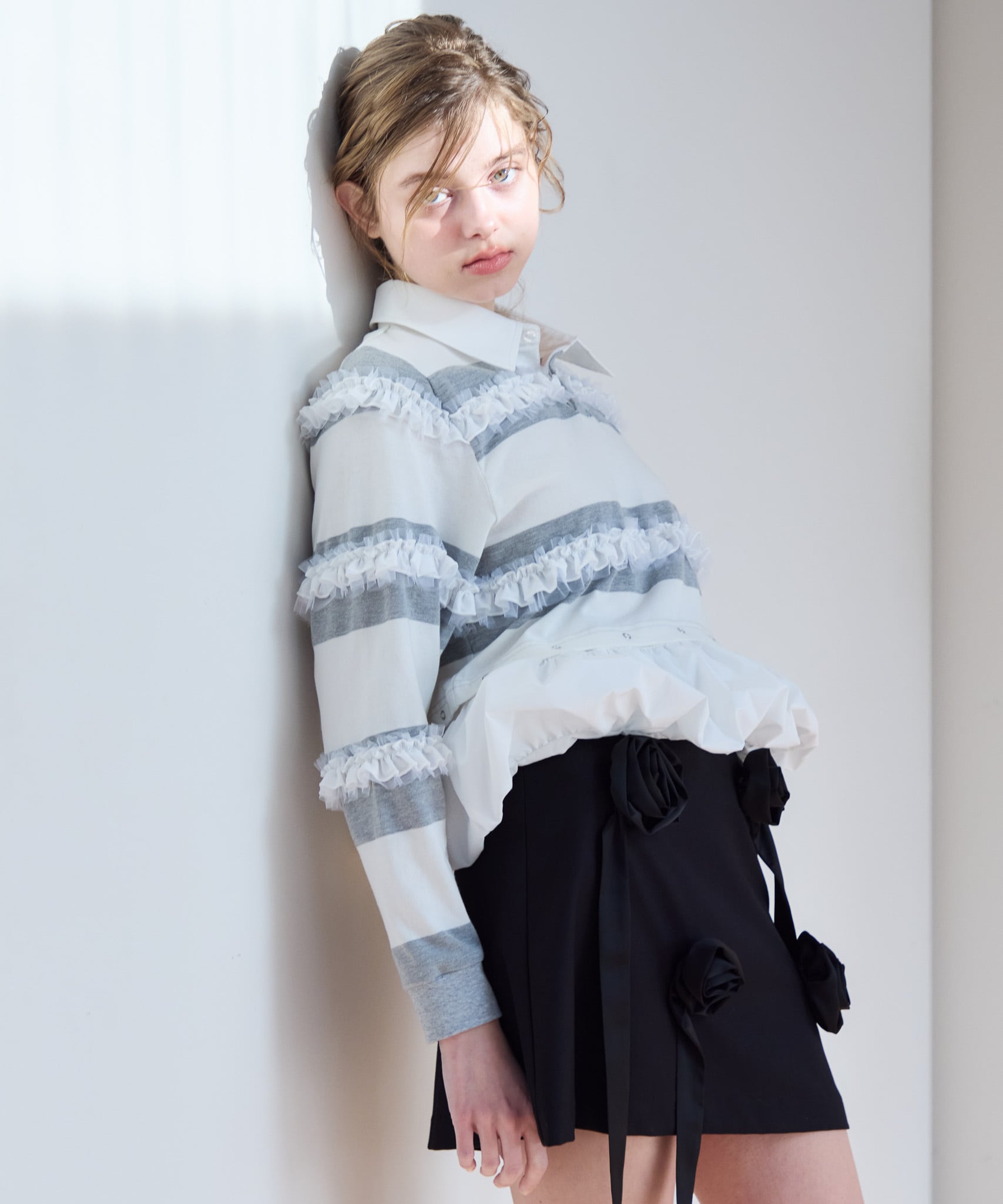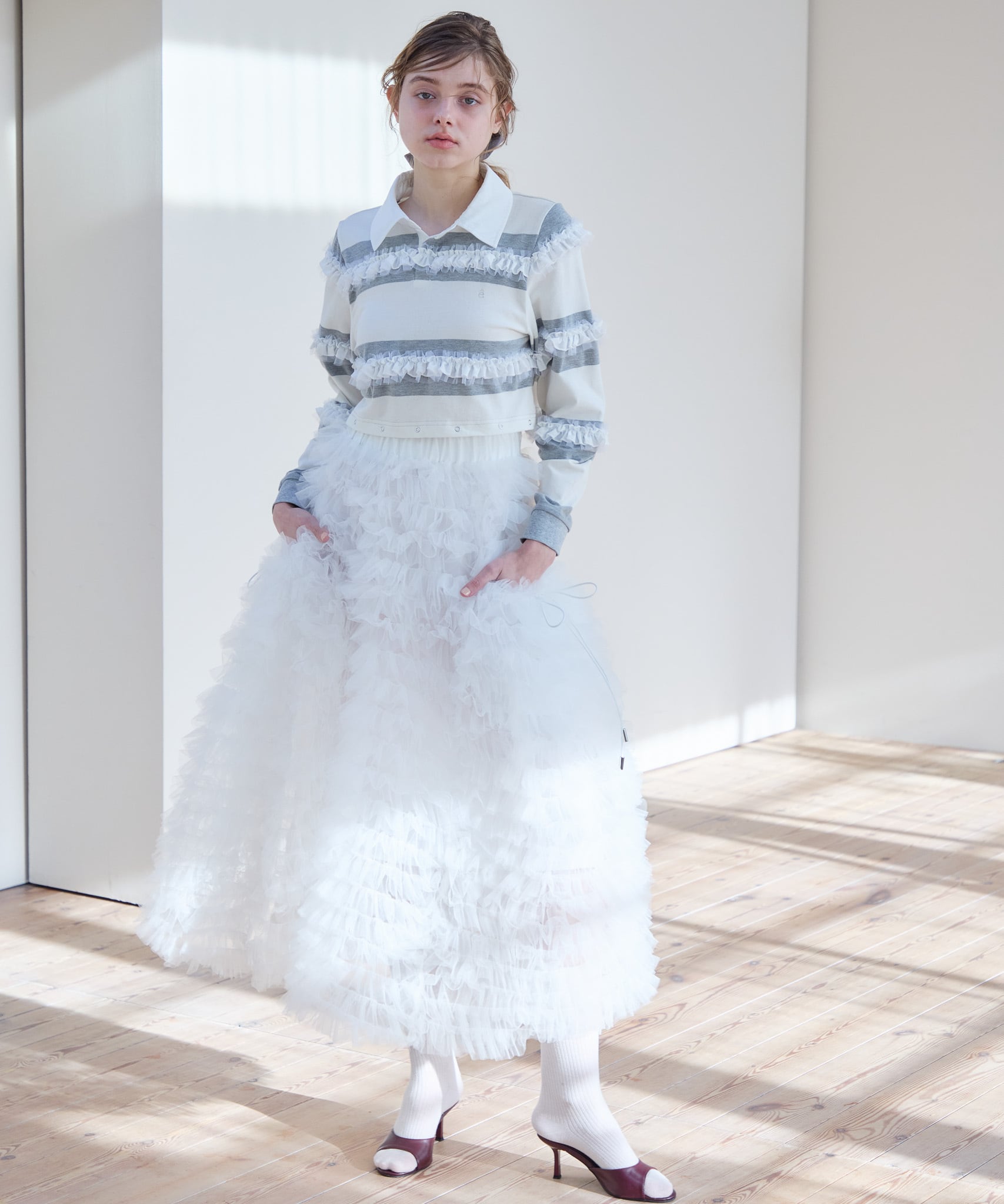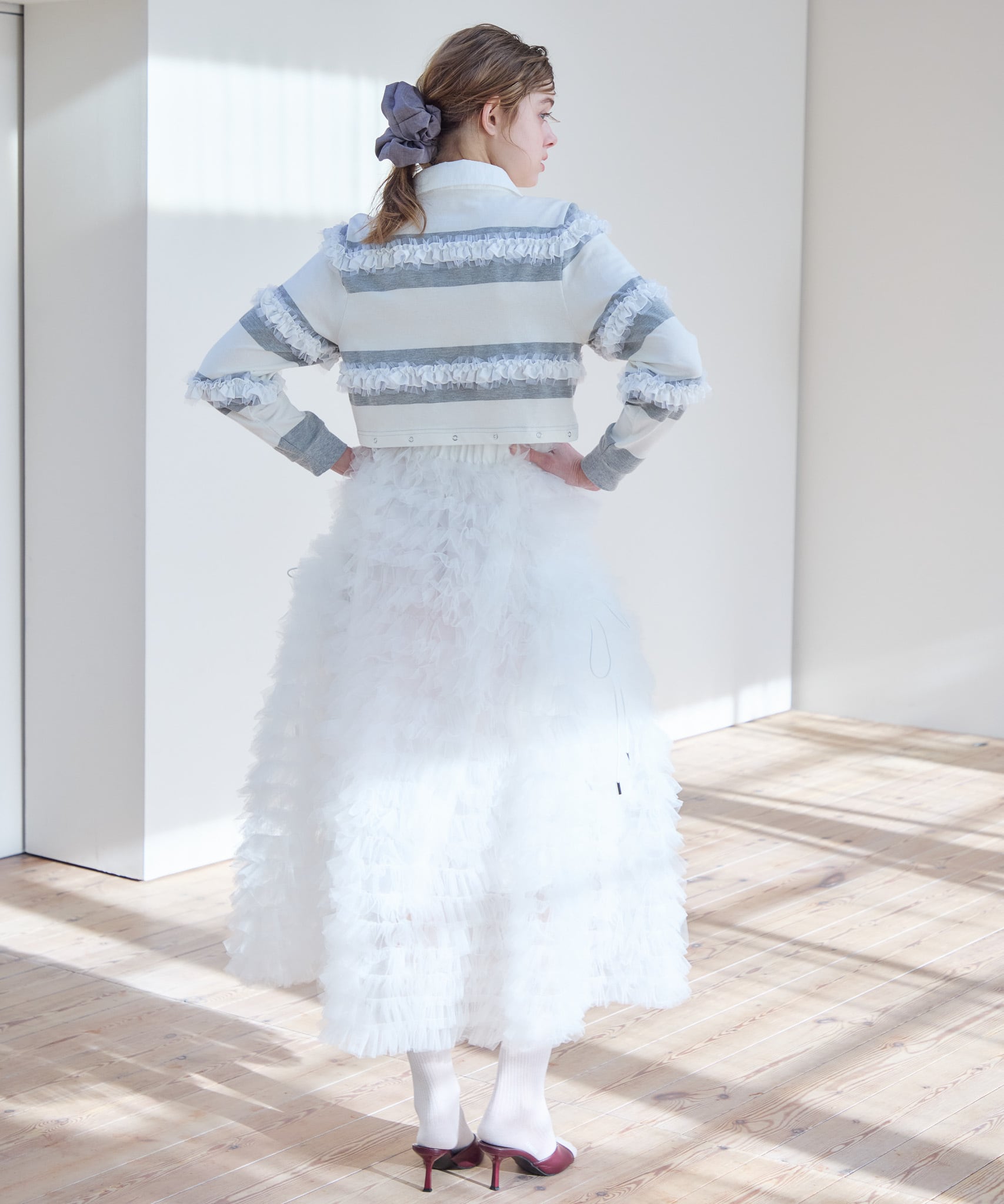バルーン部分を外すと短丈のトップスとしてもお使いいただけるので、ハイウエストのボトムやボリュームたっぷりのフレアスカートとのコーディネートもおすすめです。