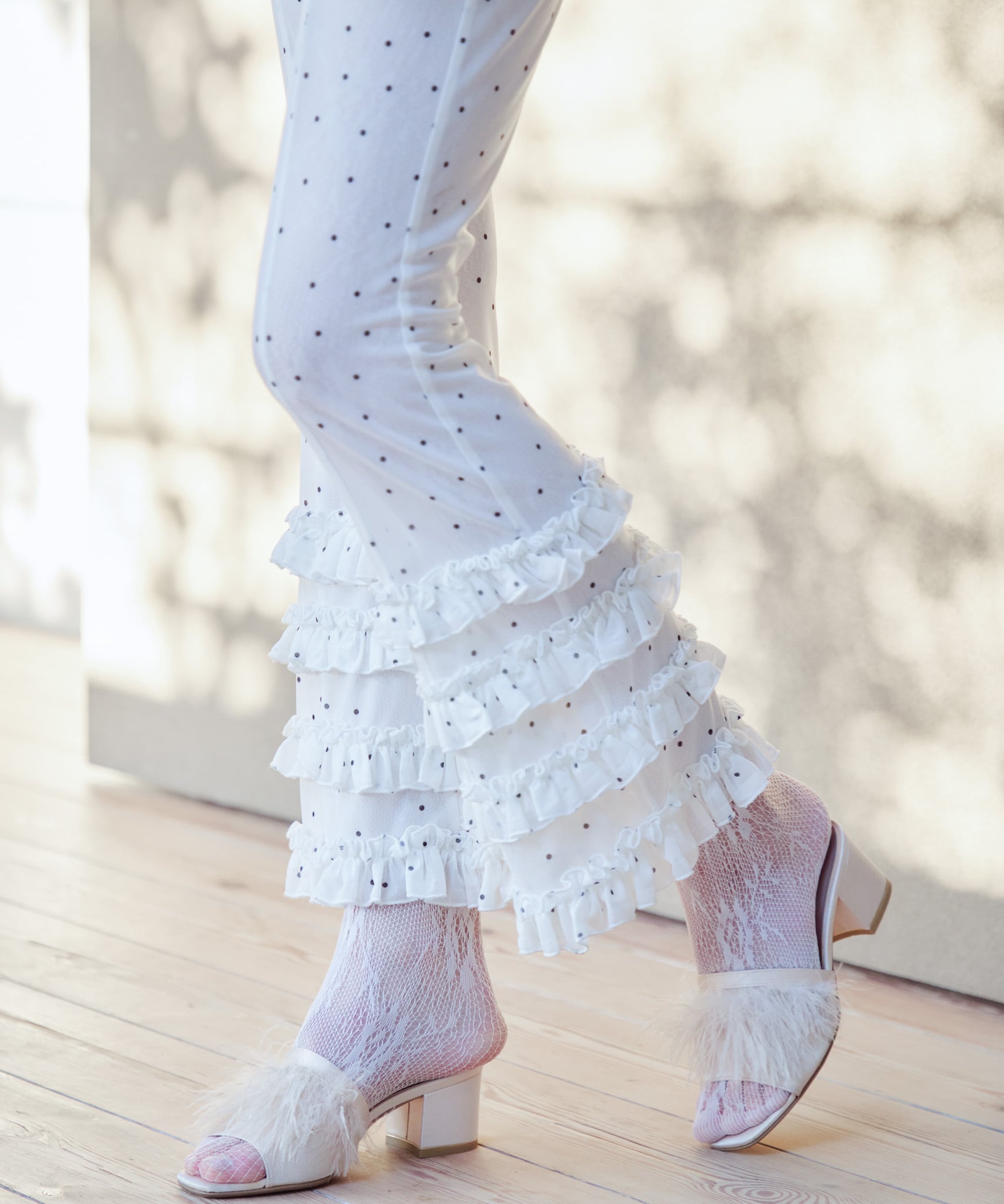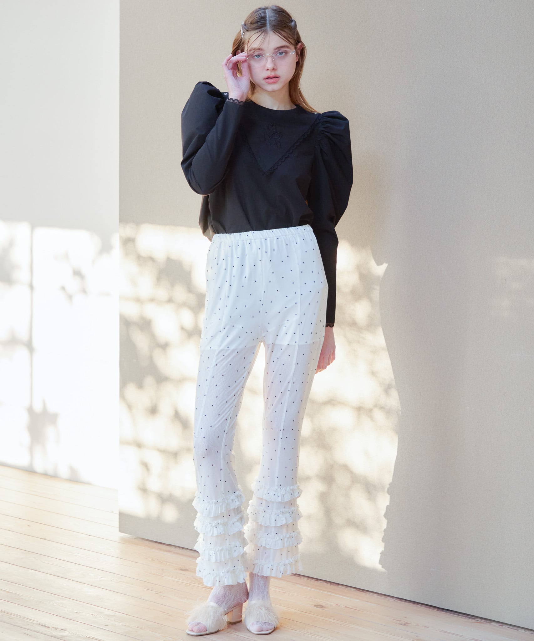 Frill tulle print pants【white】126010