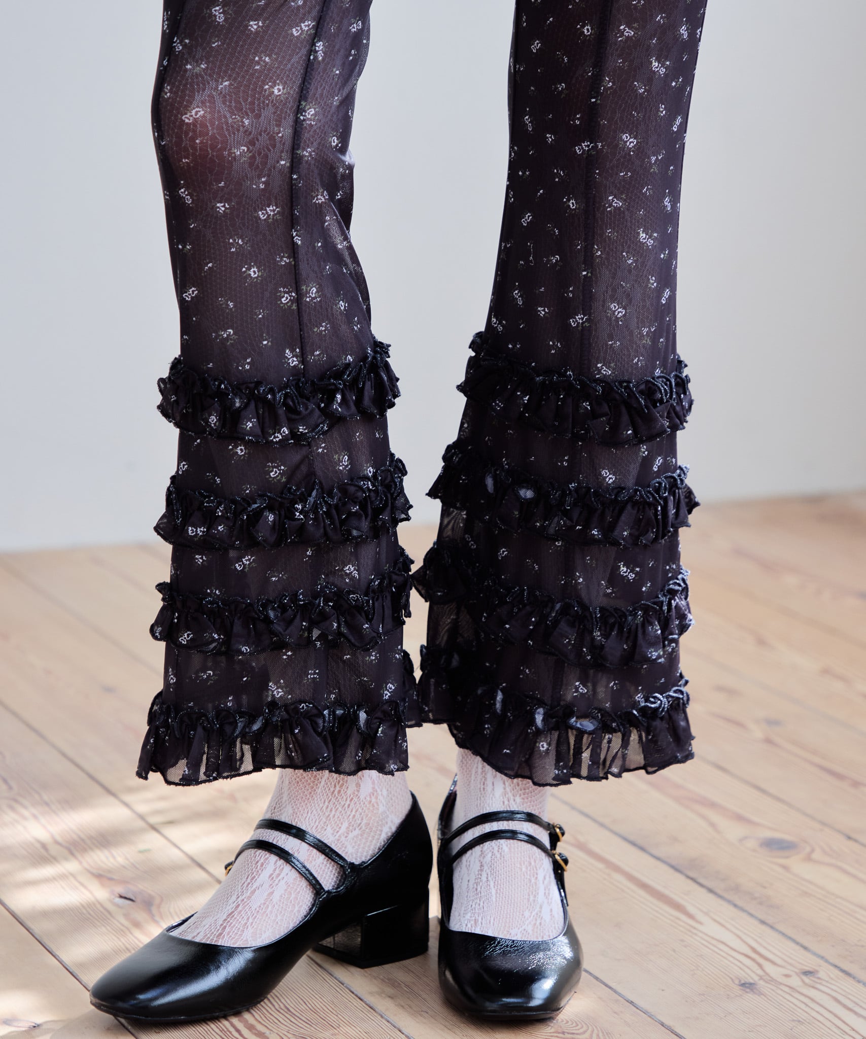 Frill tulle print pants【black】126010