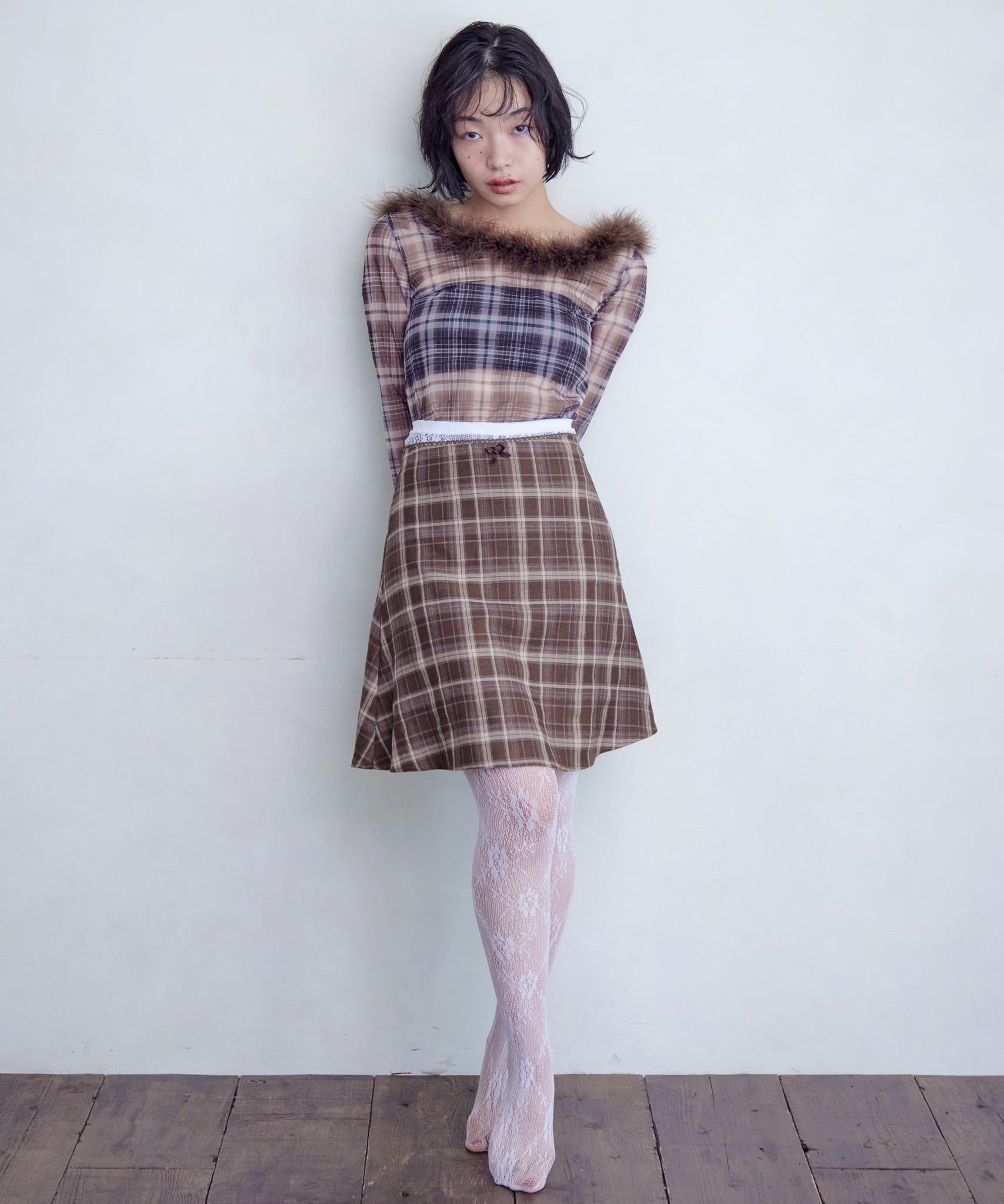 brownのレーステープとリボンは茶色。