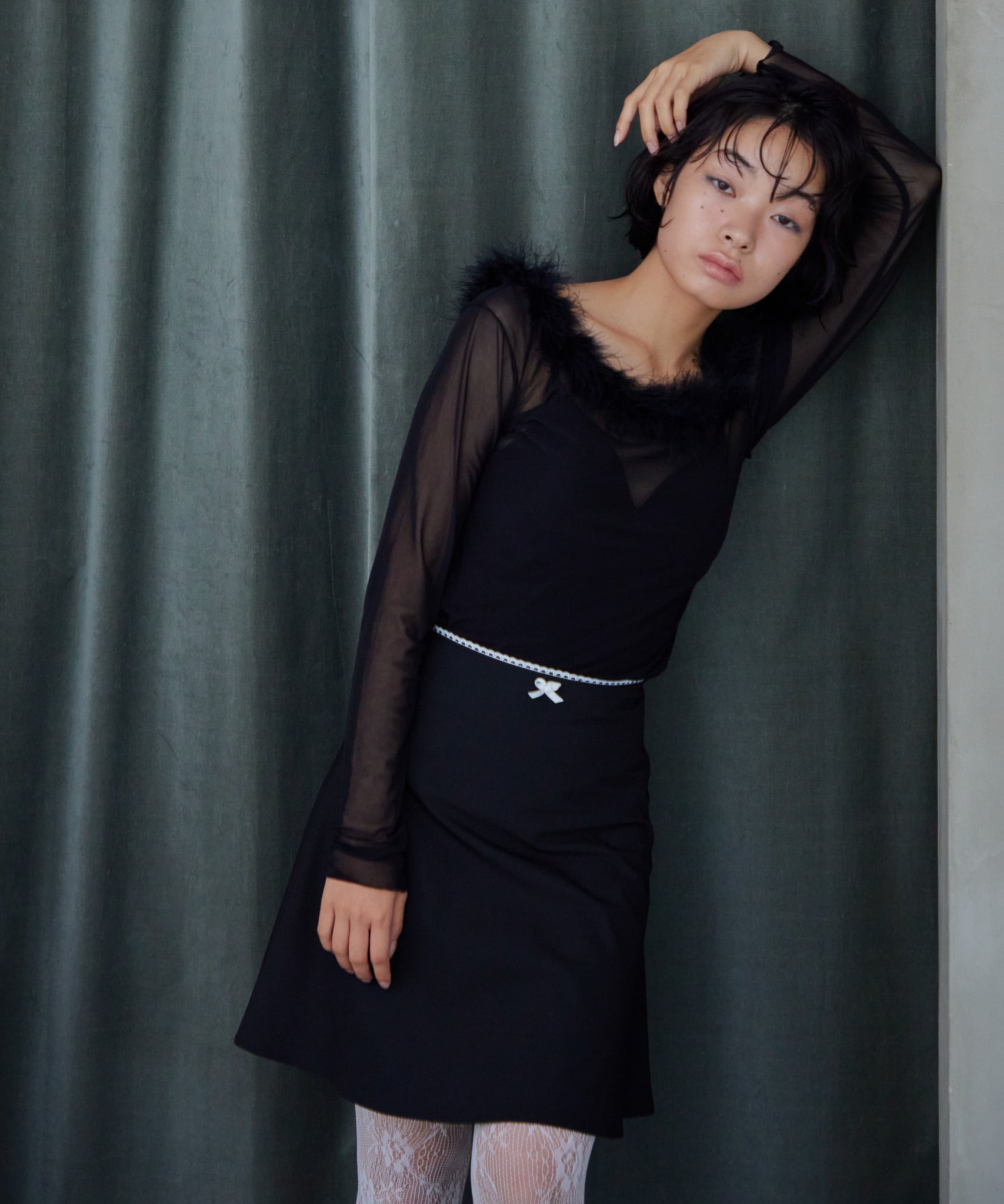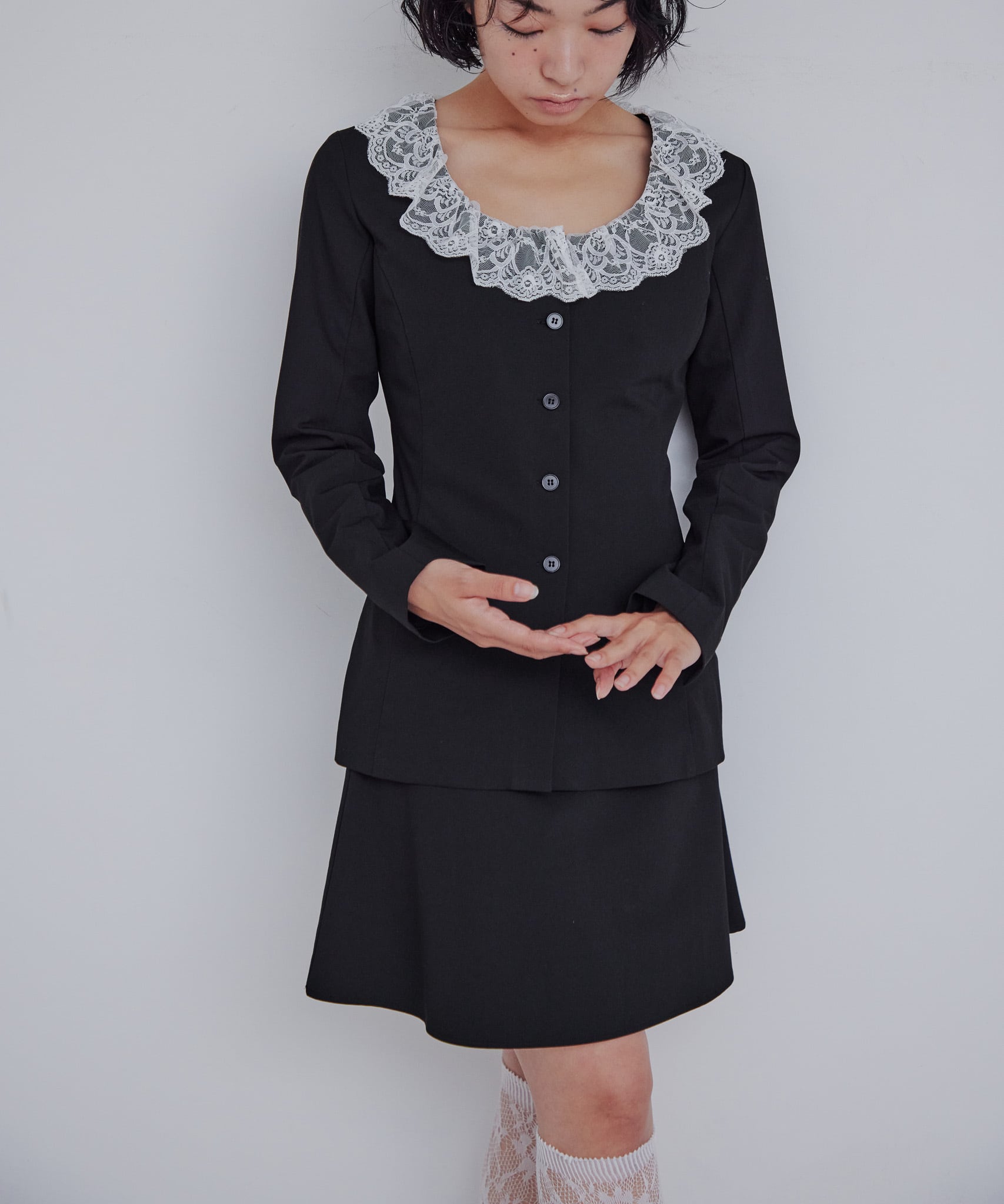 blackのレーステープとリボンは白色。