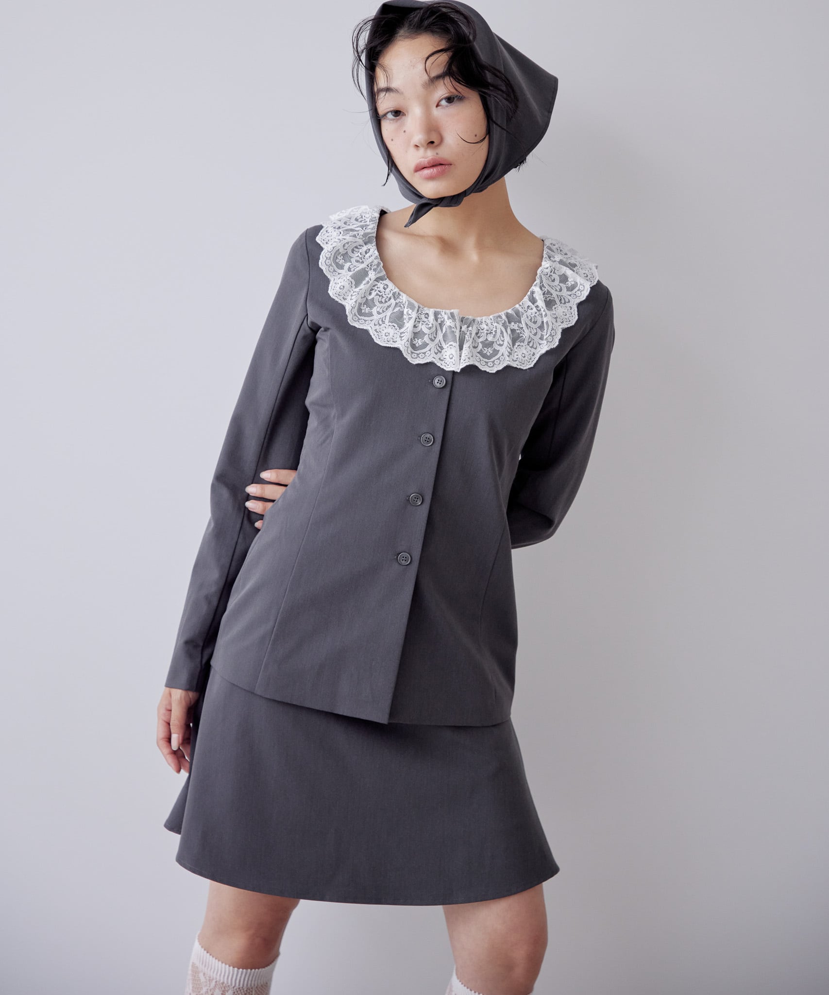 grayのレーステープとリボンは黒色。