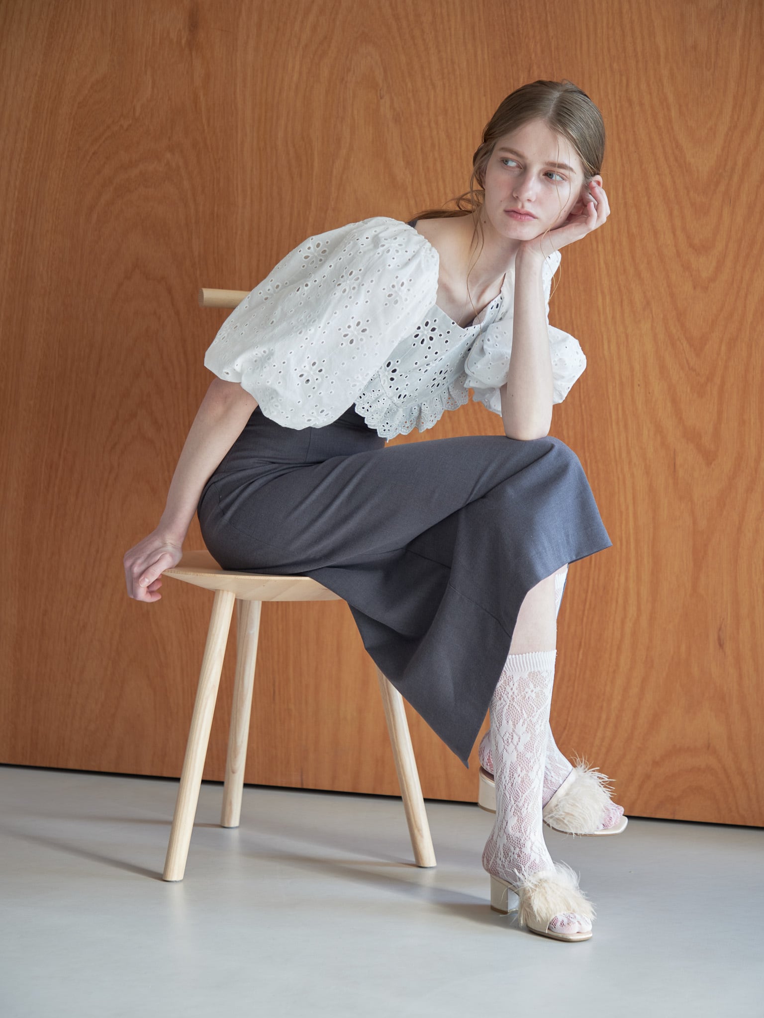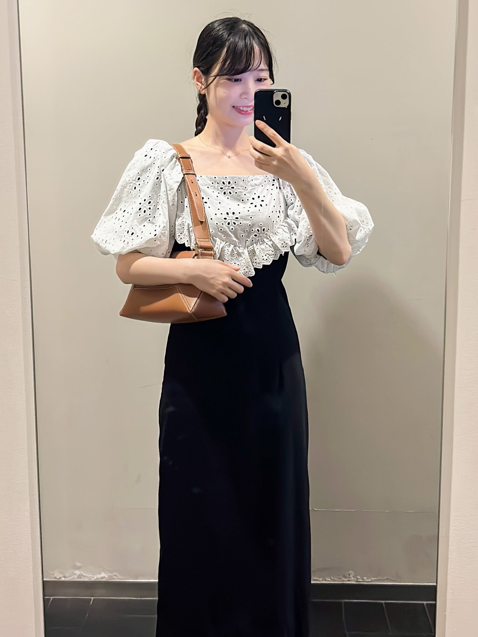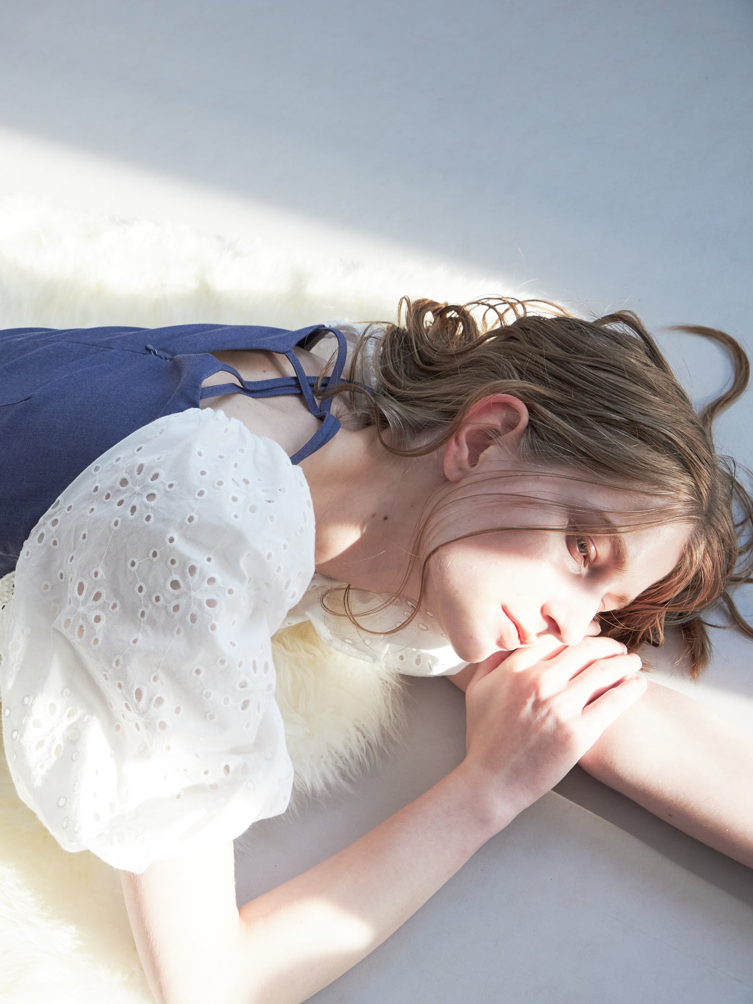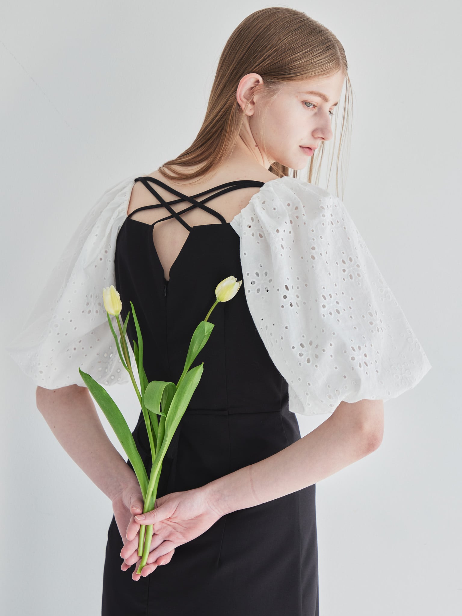 ボリュームのあるパフスリーブがアイラインのボディシルエットとのバランス抜群です。