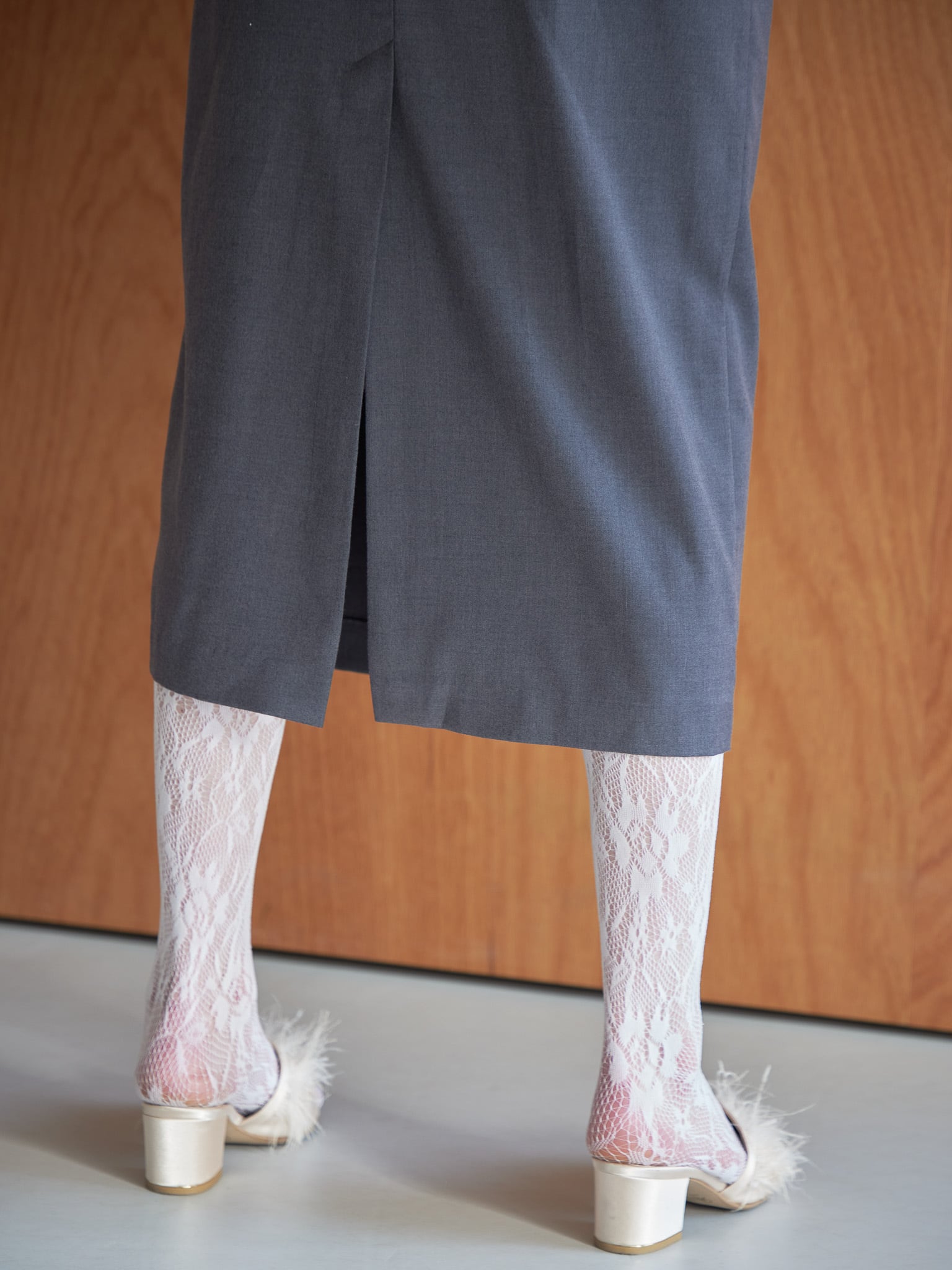 スカートの後ろの裾にベンツ開きがありアイラインながらも足さばきはgood。