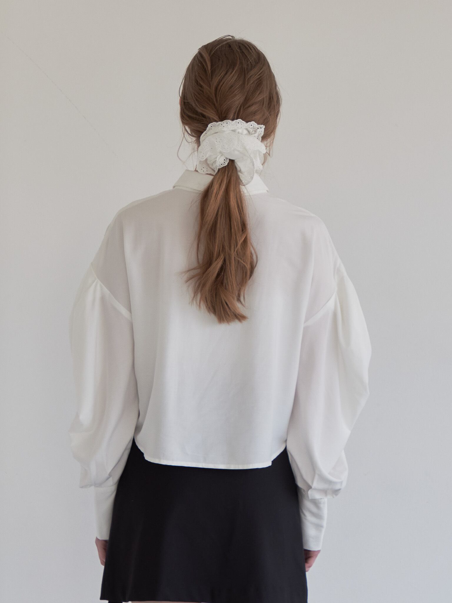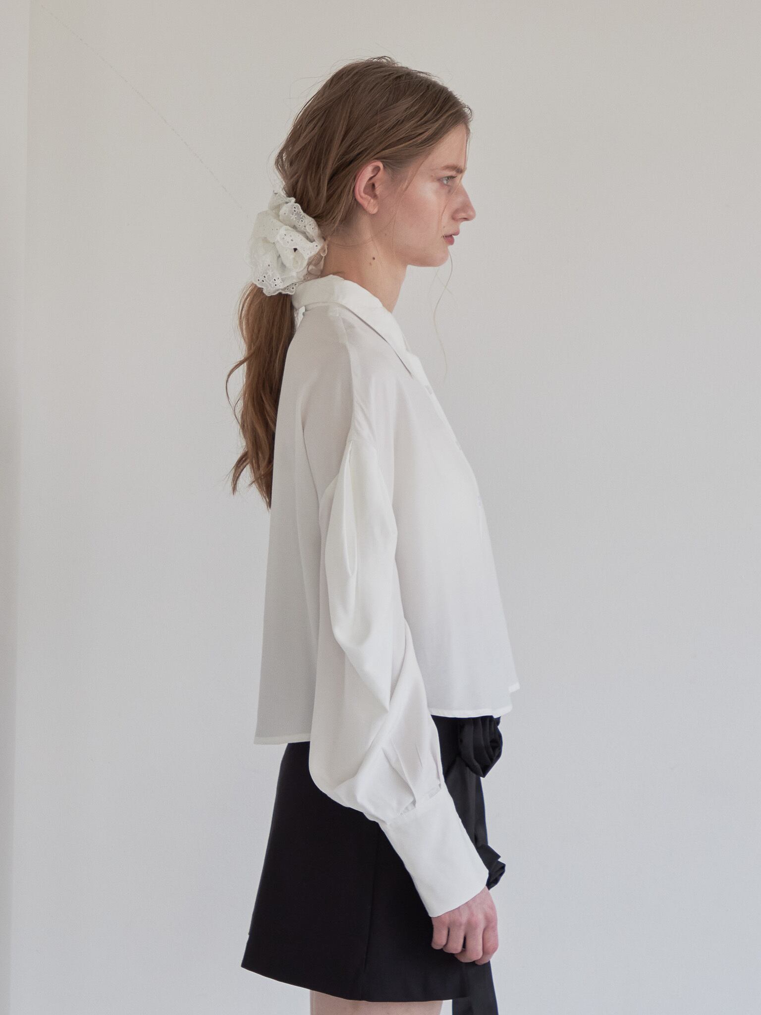 タックでボリュームたっぷりの袖のシャツは1枚でも使え、モードな気分を上げてくれます。