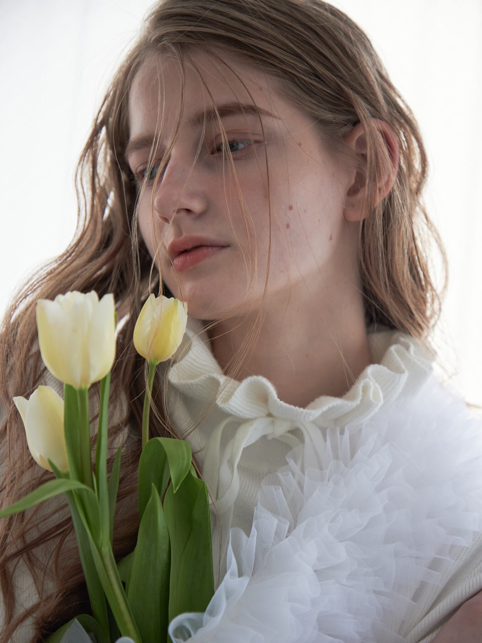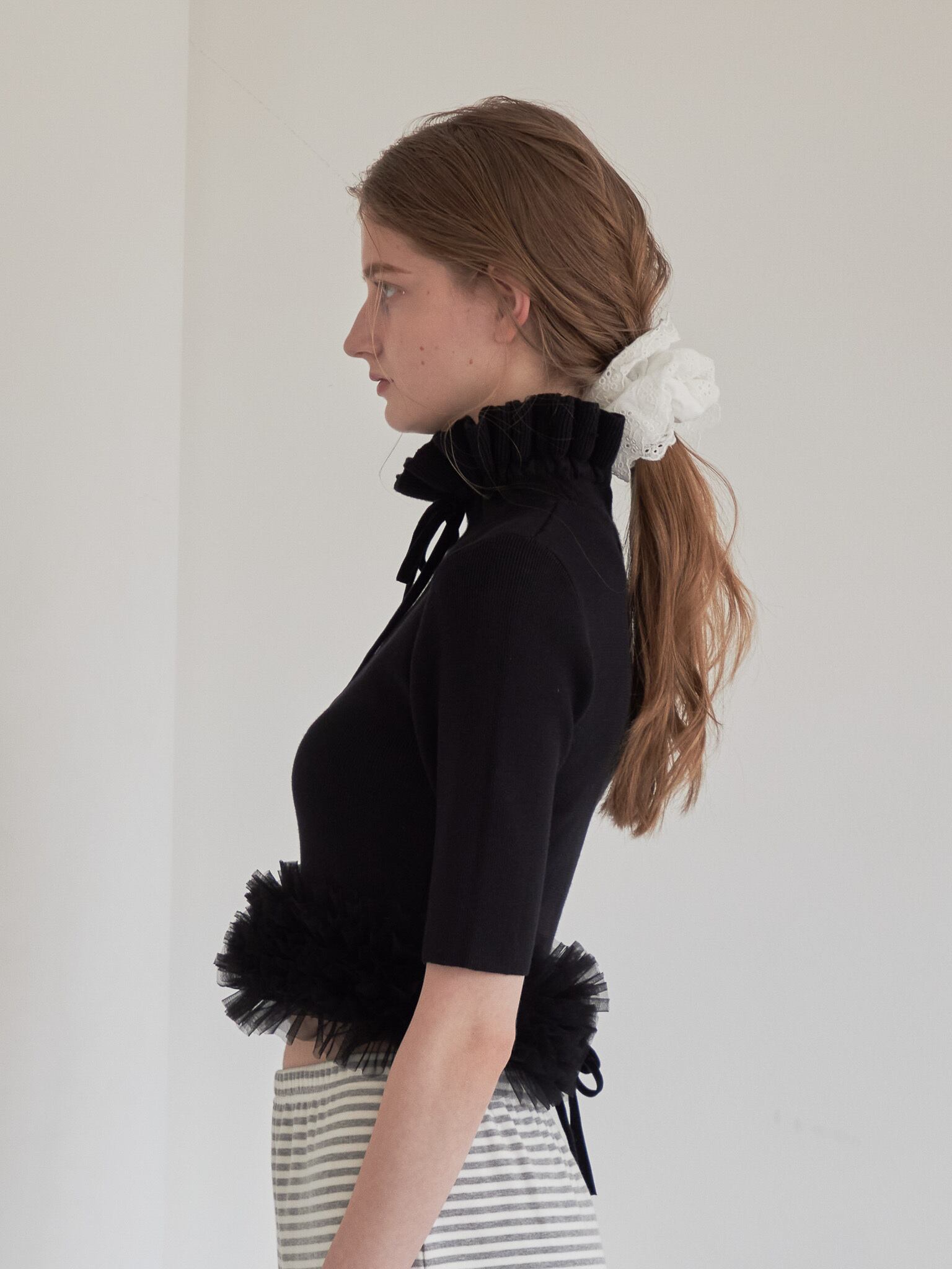 ヘムチュールリブニット / Hem tulle rib knit 【125012】