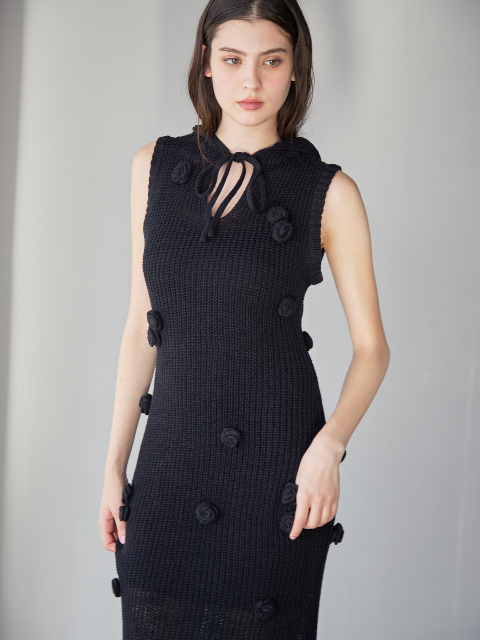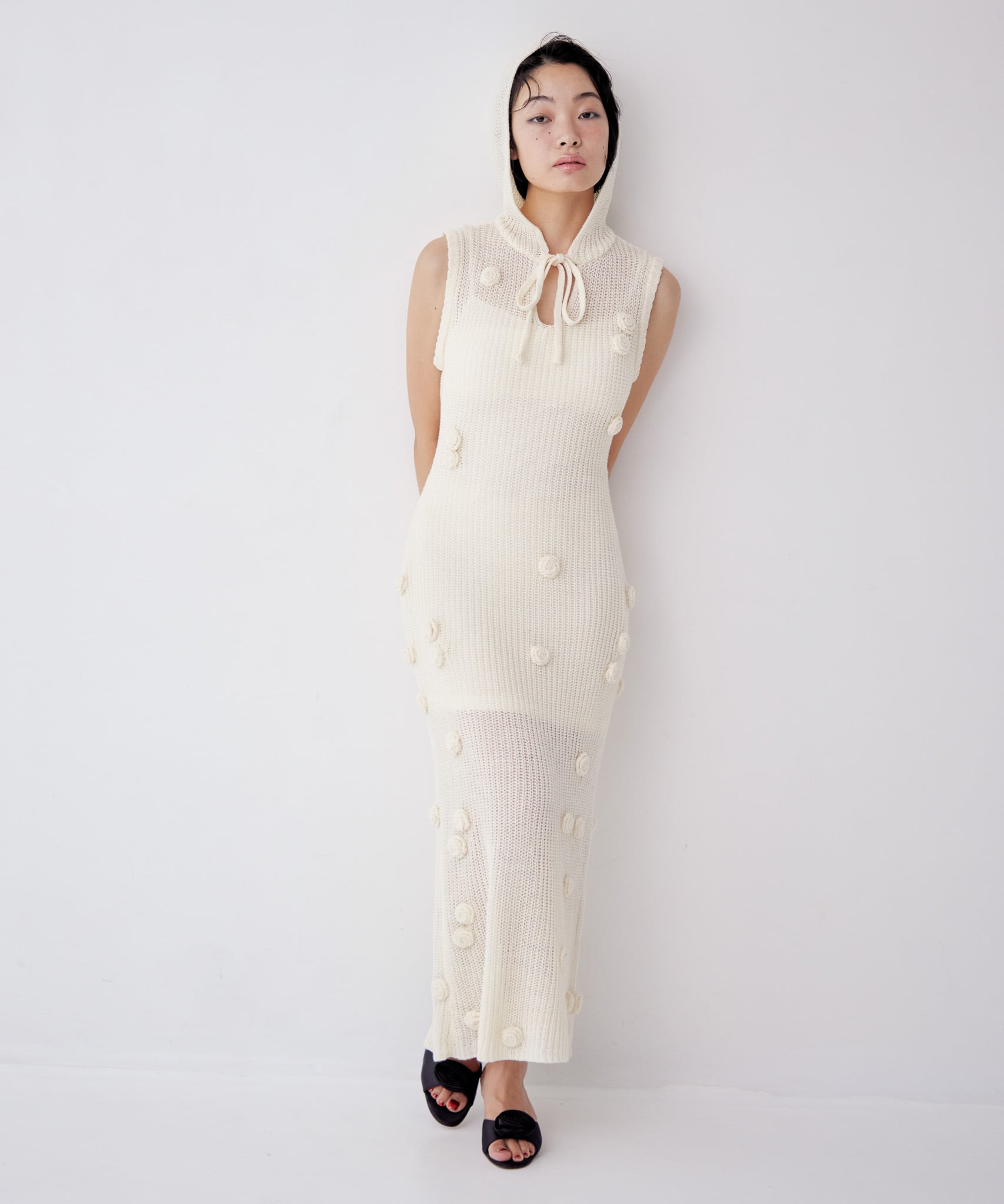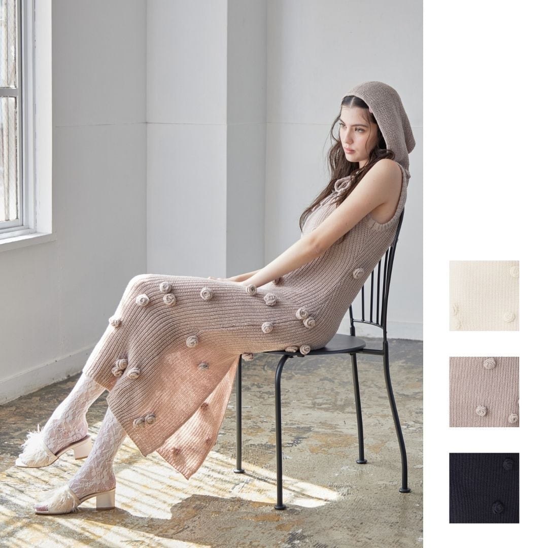 ローズニットフーディワンピース / Rose knit hoodie dress 【125016】