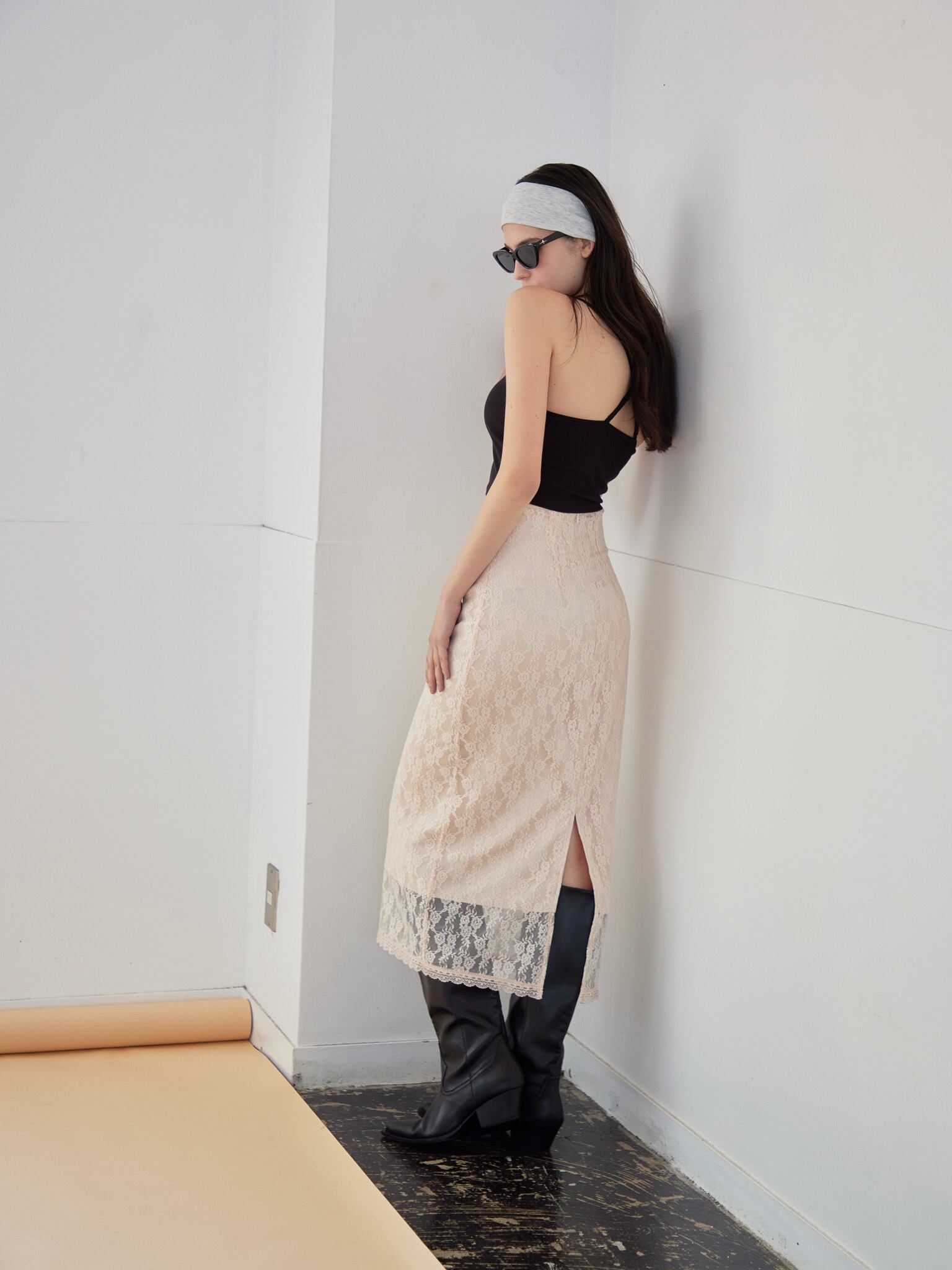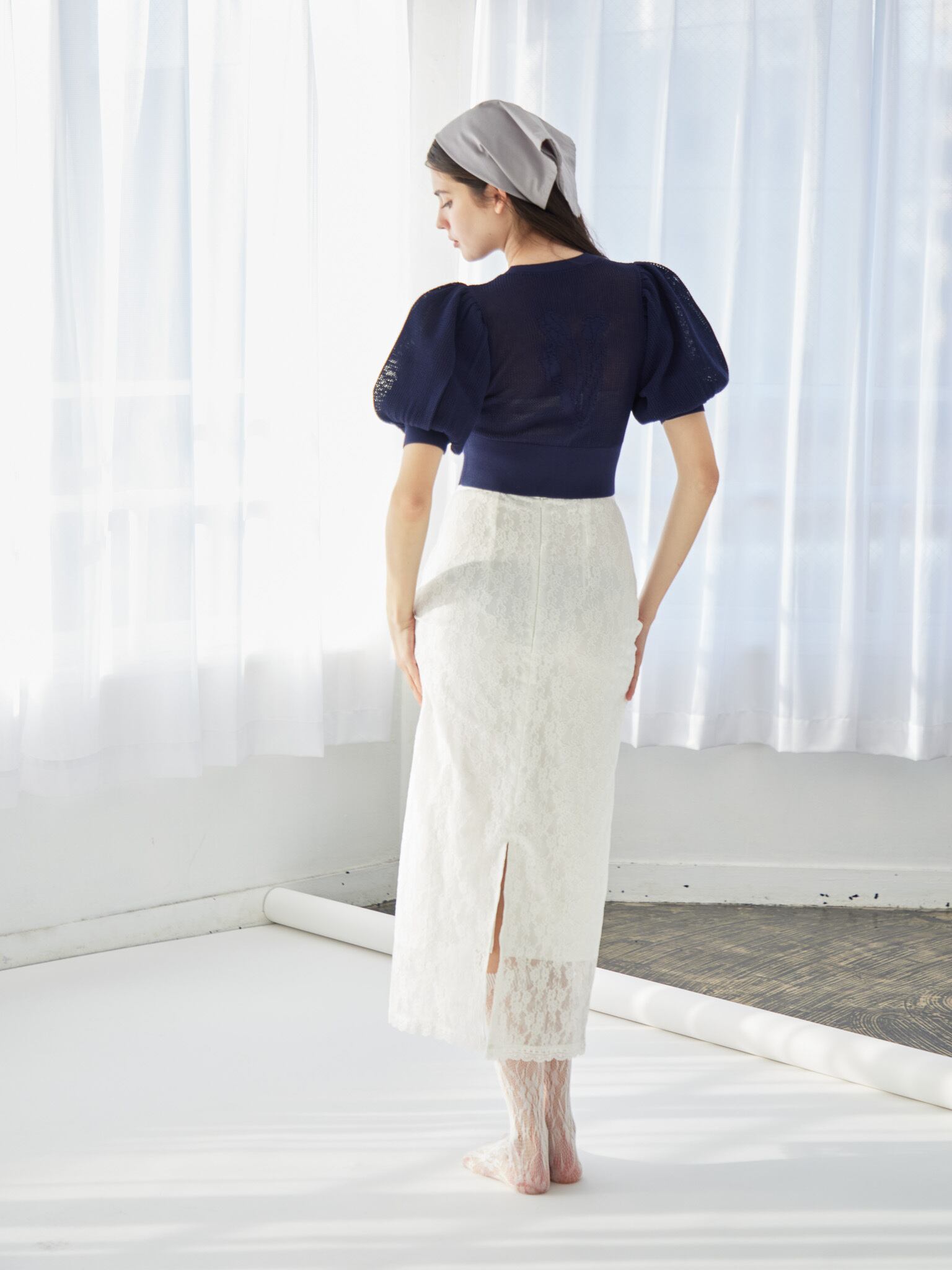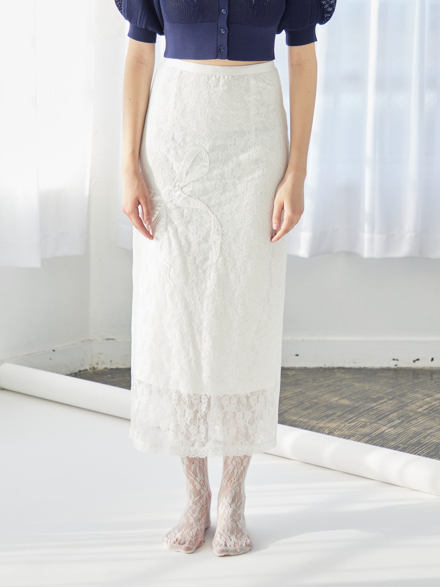 リボンエンブロイダリーレースタイトスカート / Ribbon embroidered lace tight skirt 【125021】