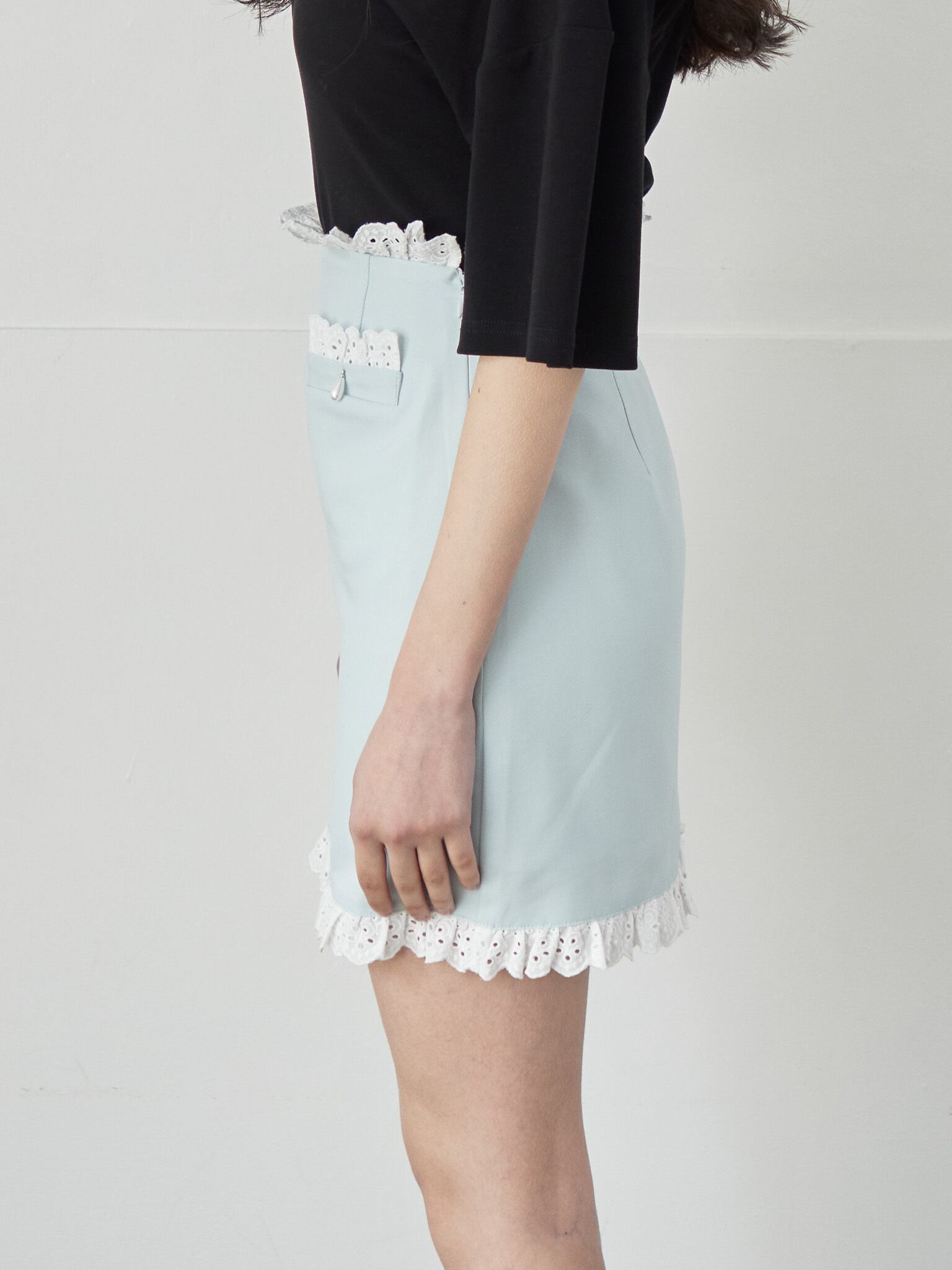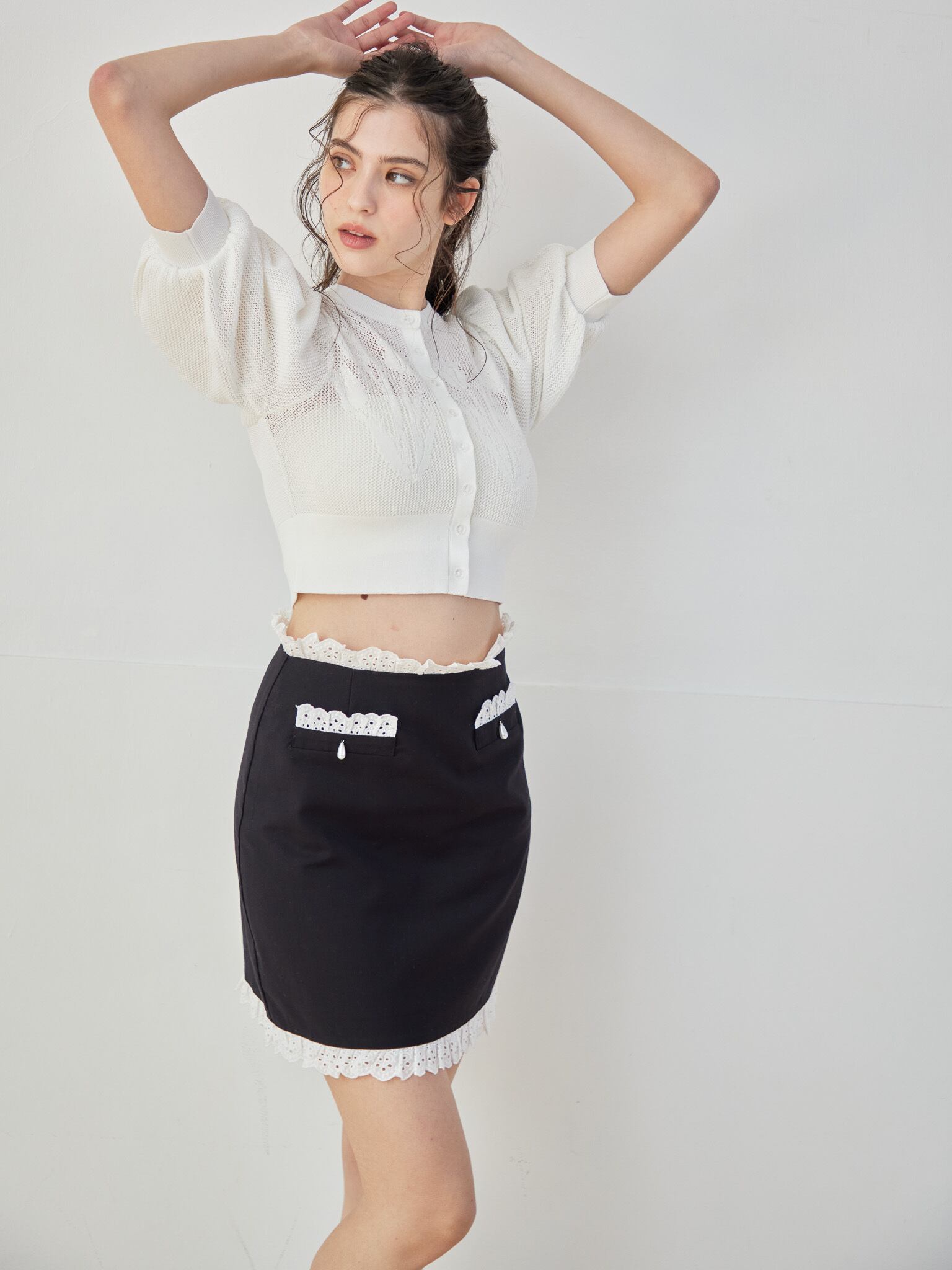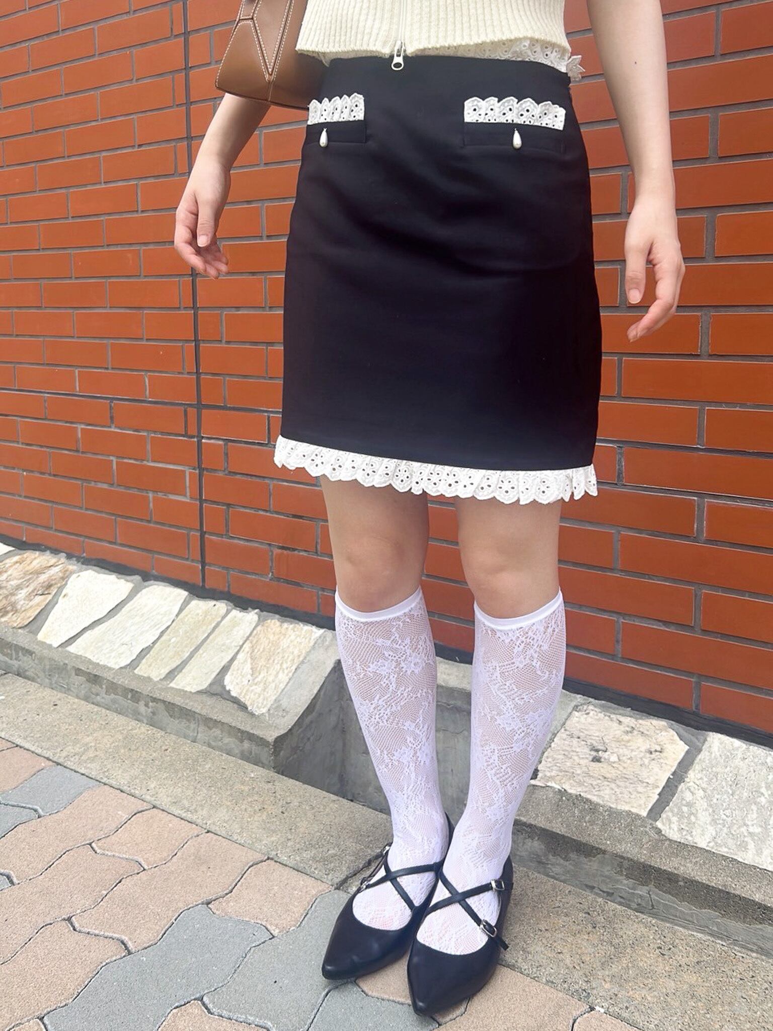 レーストリミングミニスカート / Lace trimming mini skirt 【125022】