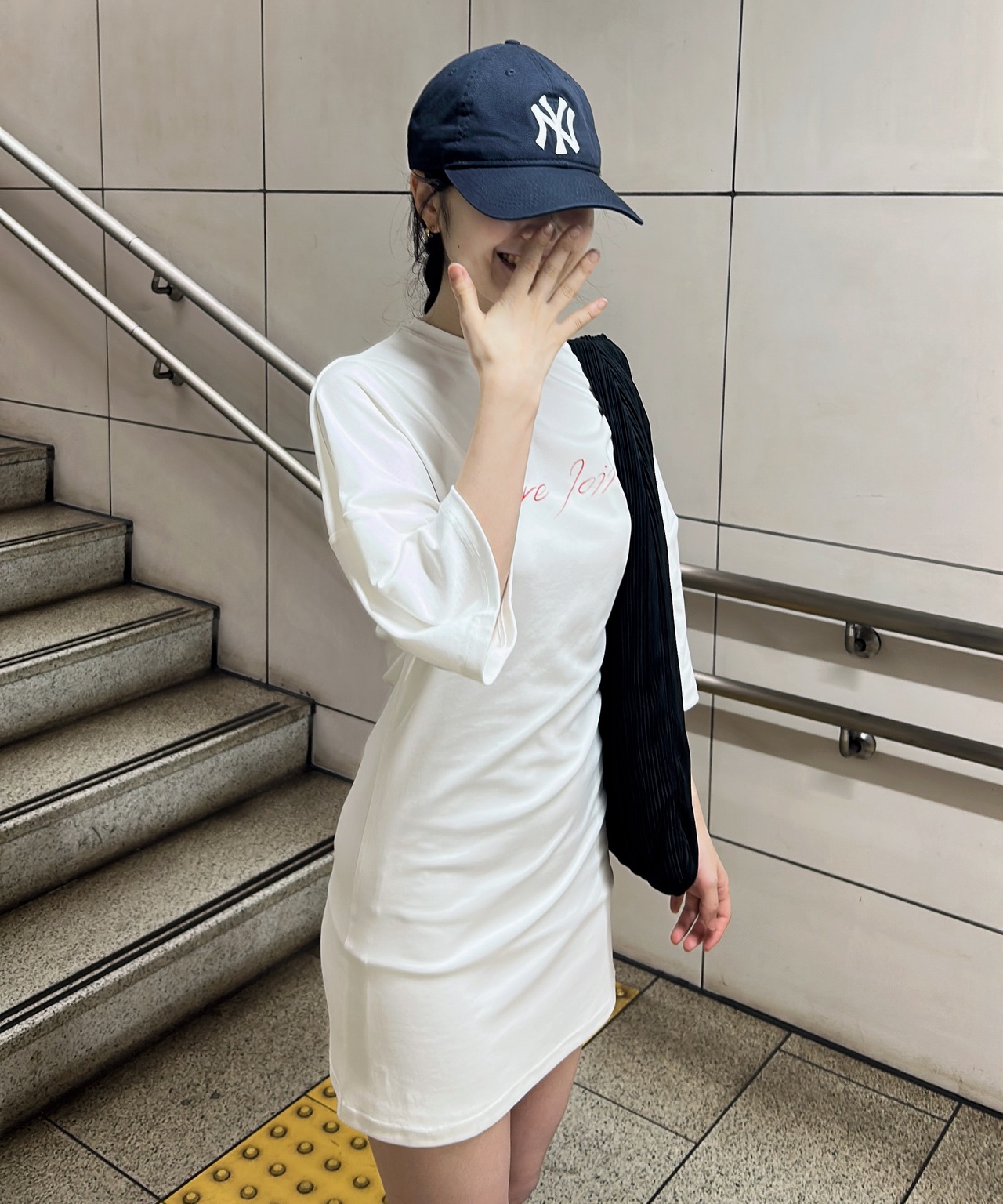 Tシャツをワンピースにアレンジしたデザイン。
