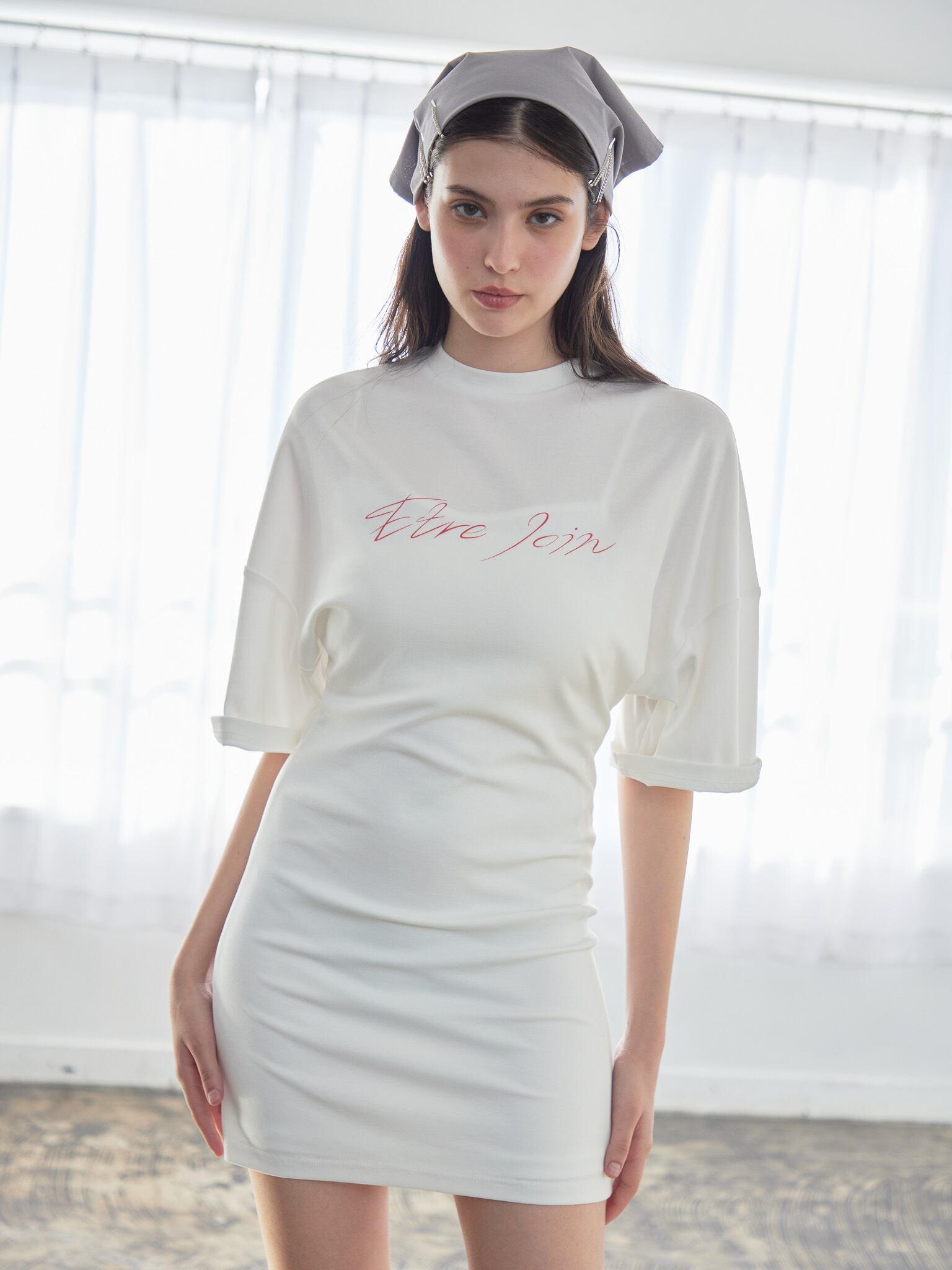 「?tre loin」のロゴ入りのワンピース。