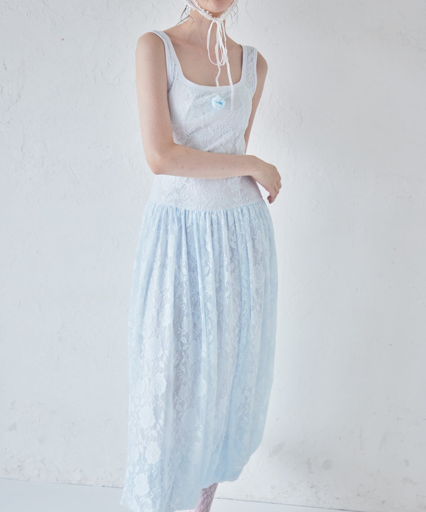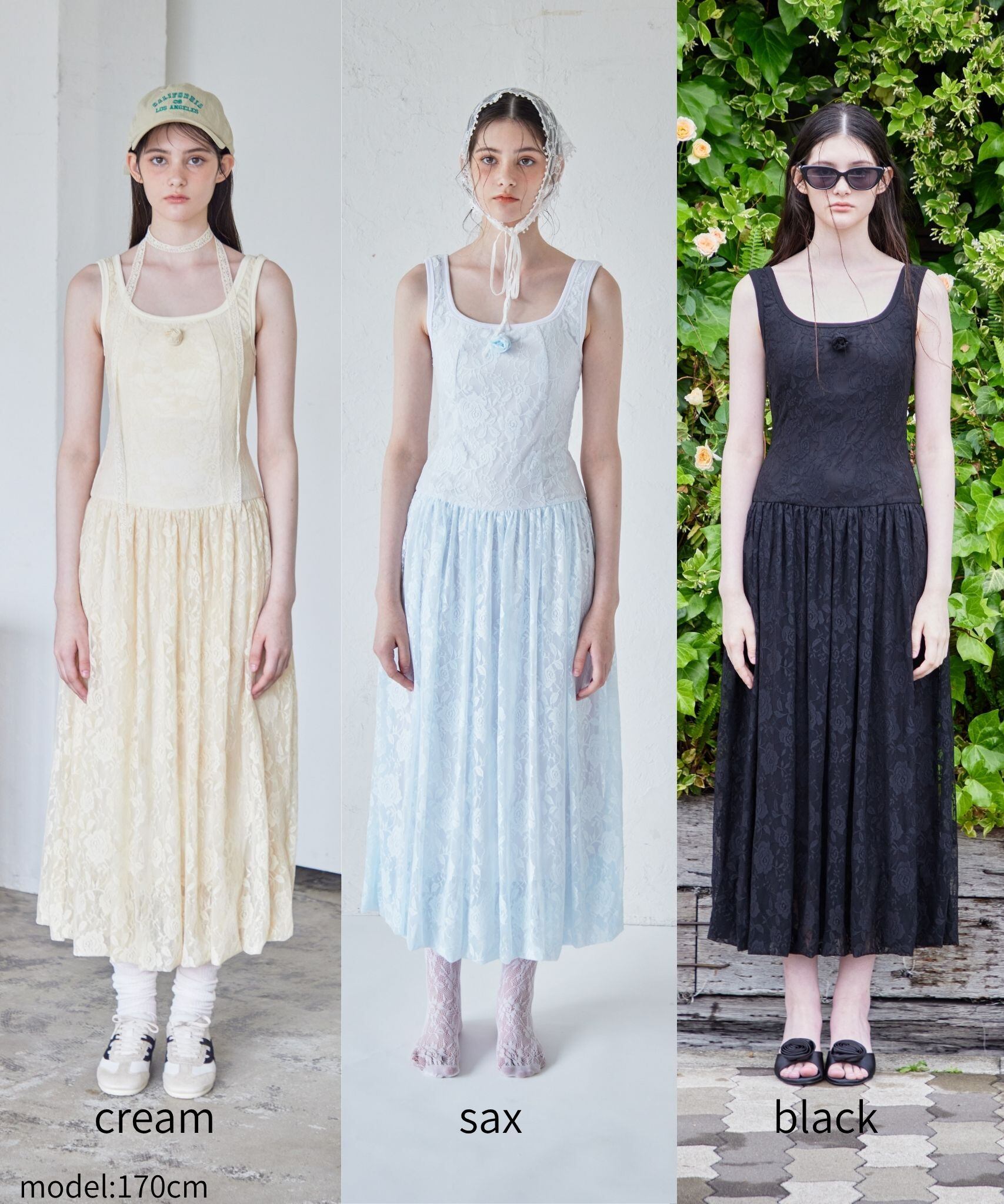 ロースイッチングローズレースドレス / Low switching rose lace dress 【125026】