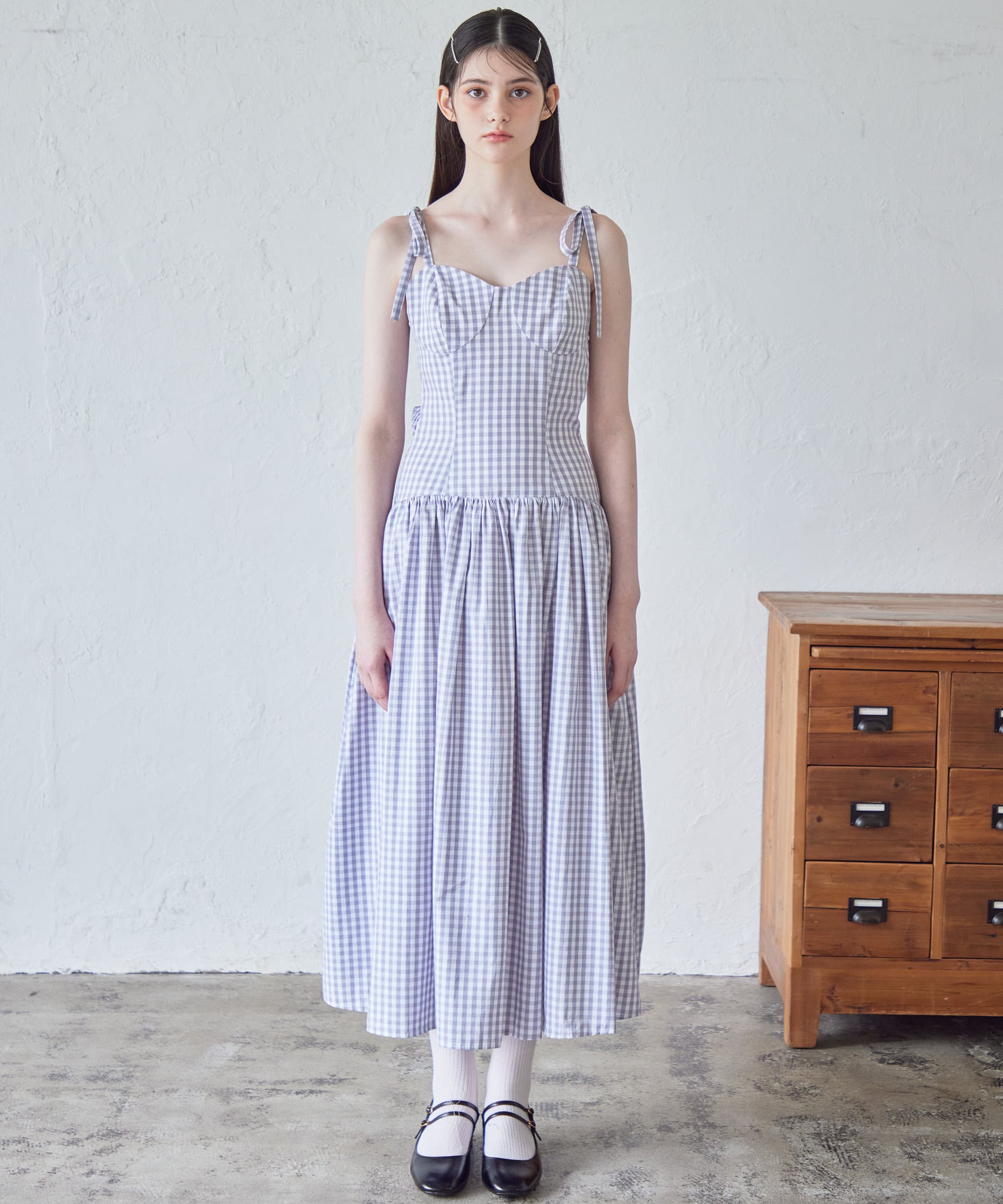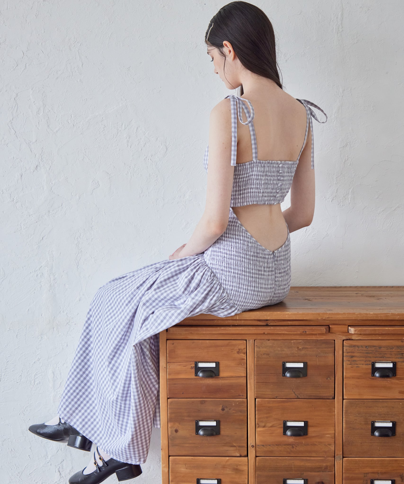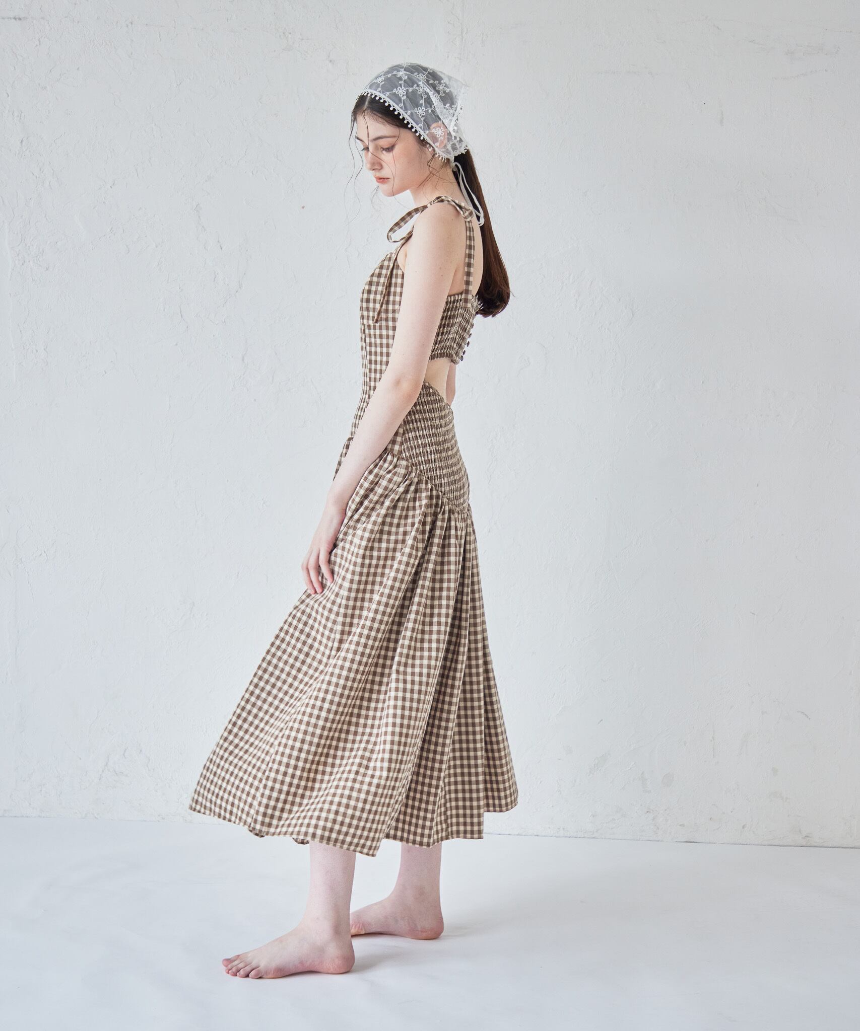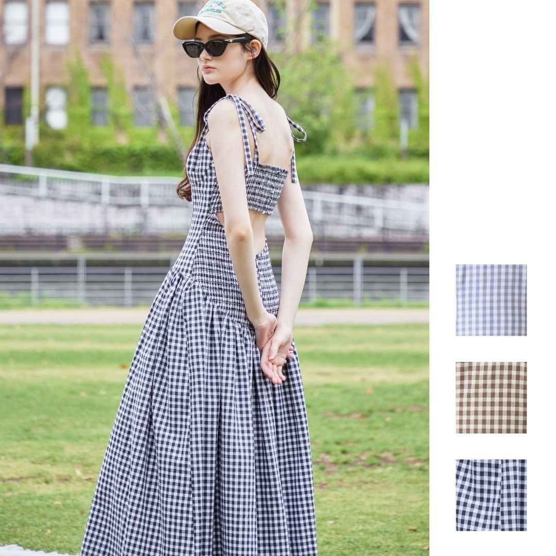 ギンガムチェックバックオープンワンピース / Gingham check back open dress 【125027】