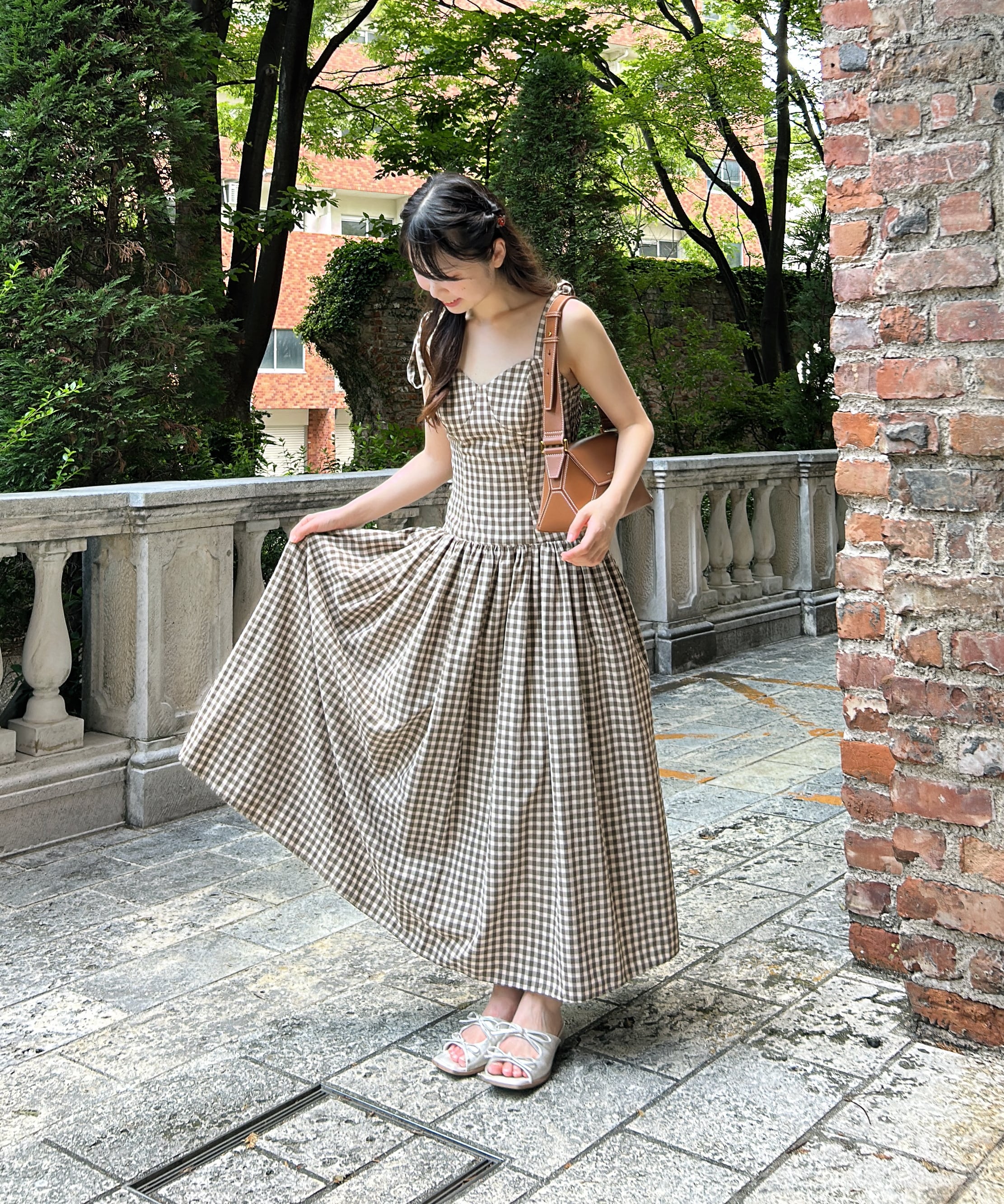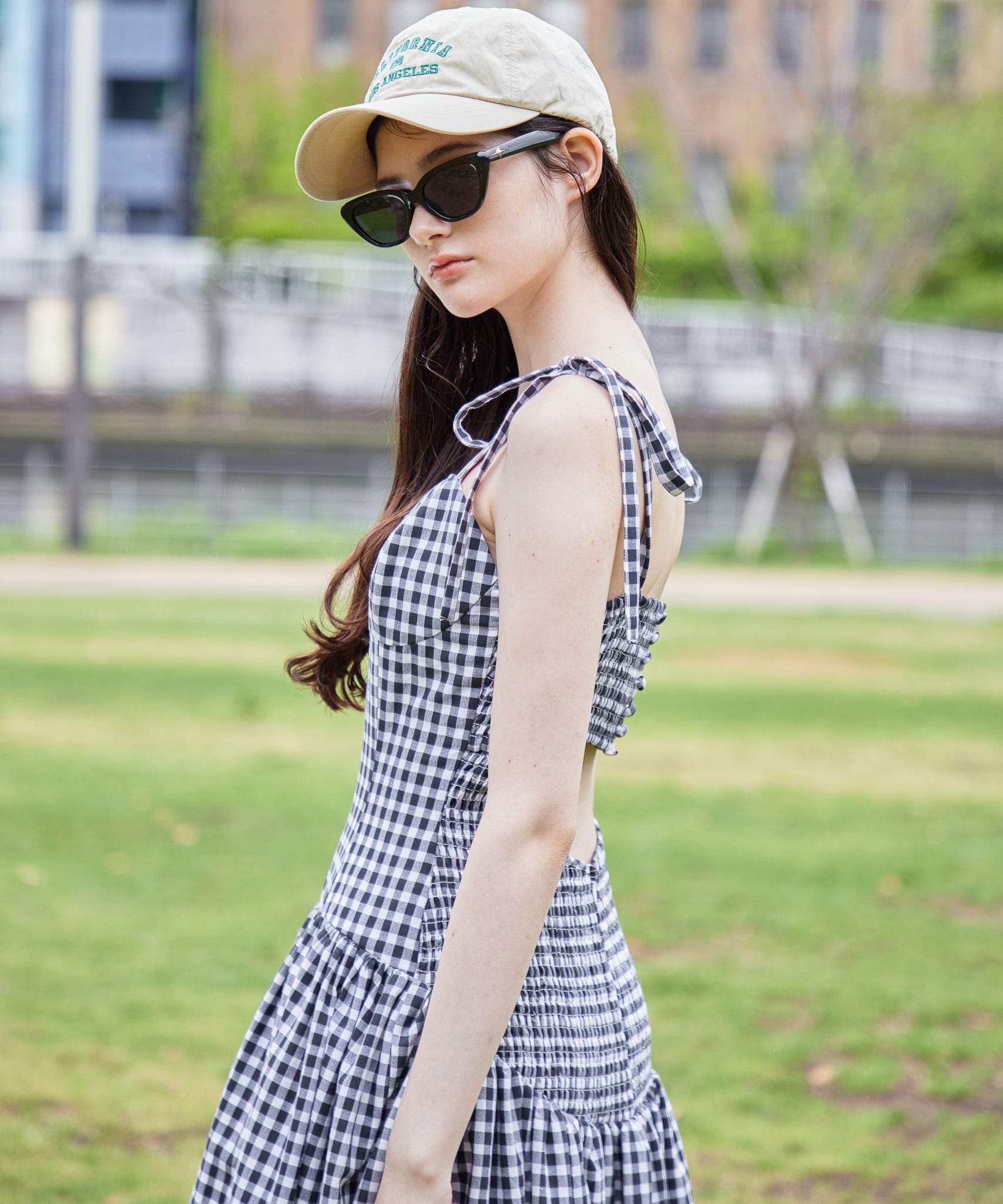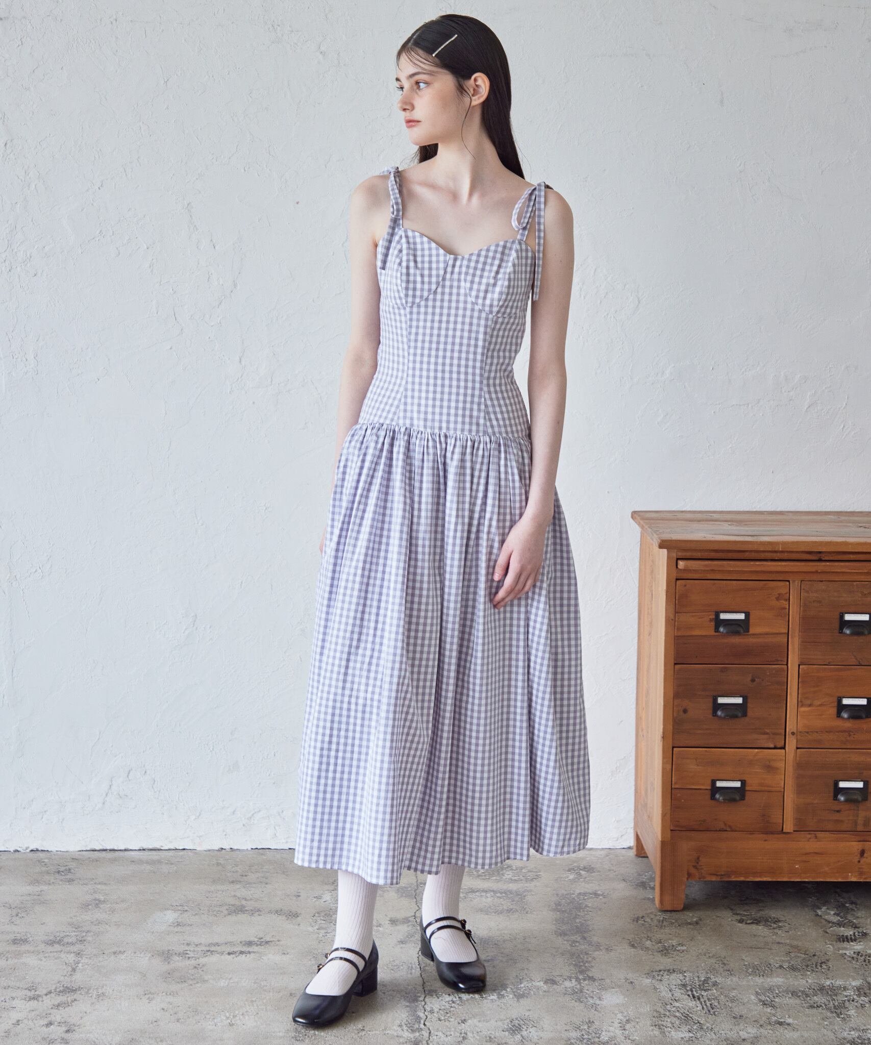 ギンガムチェックバックオープンワンピース / Gingham check back open dress 【125027】