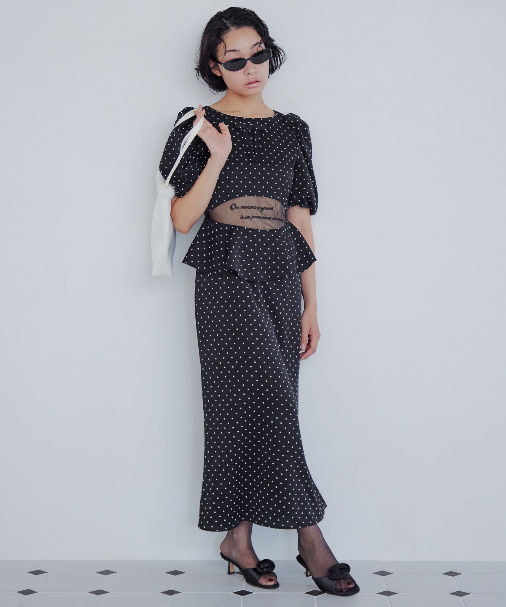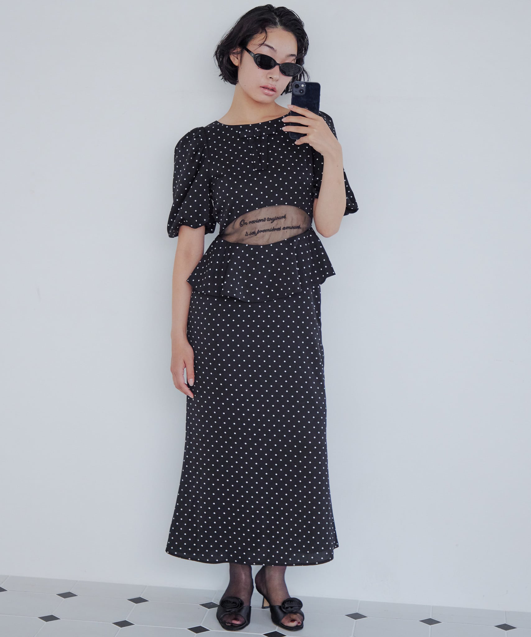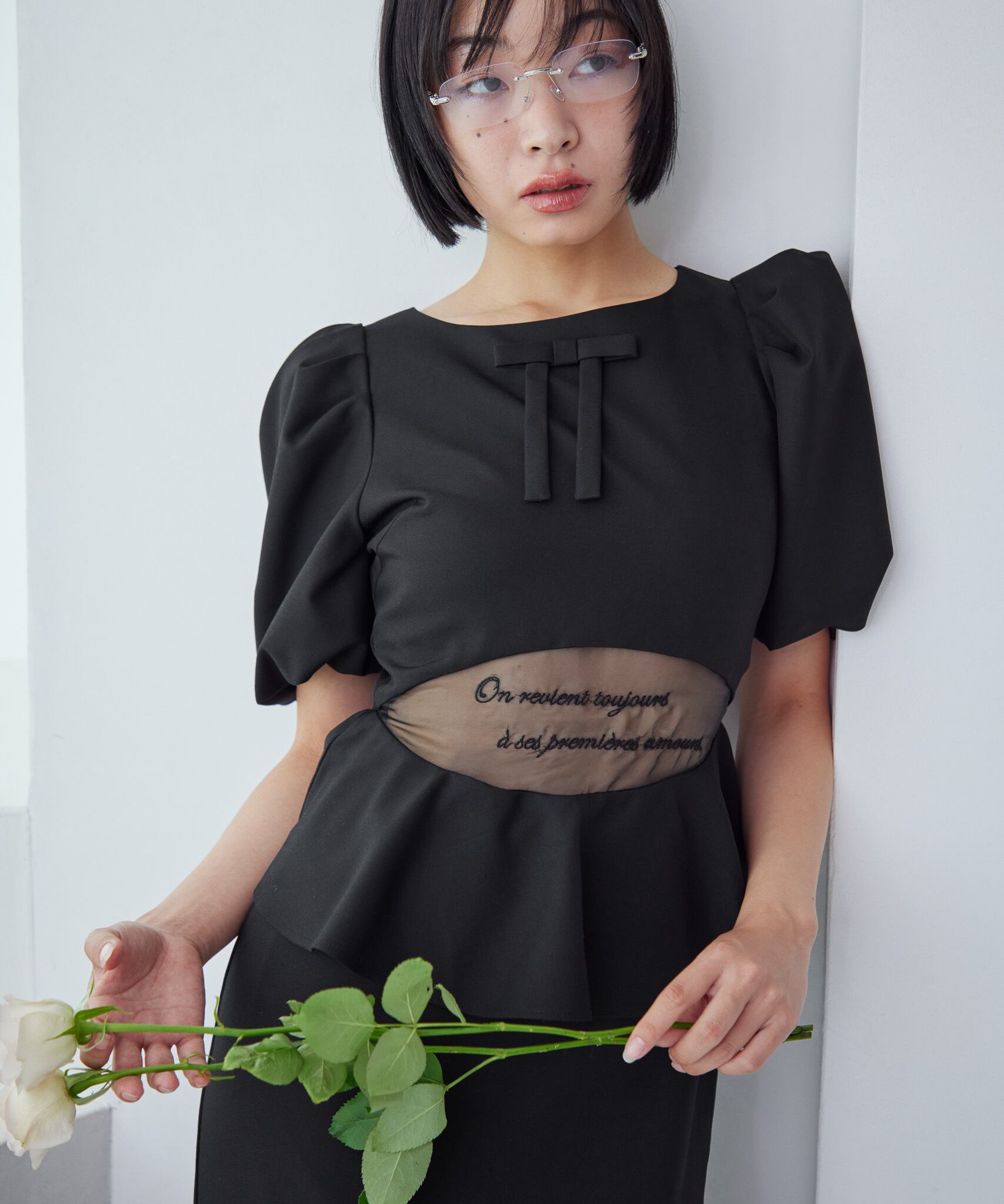 シアーエンブロイダリーパフスリーブワンピース / Sheer embroidered puff sleeve dress 【125028】