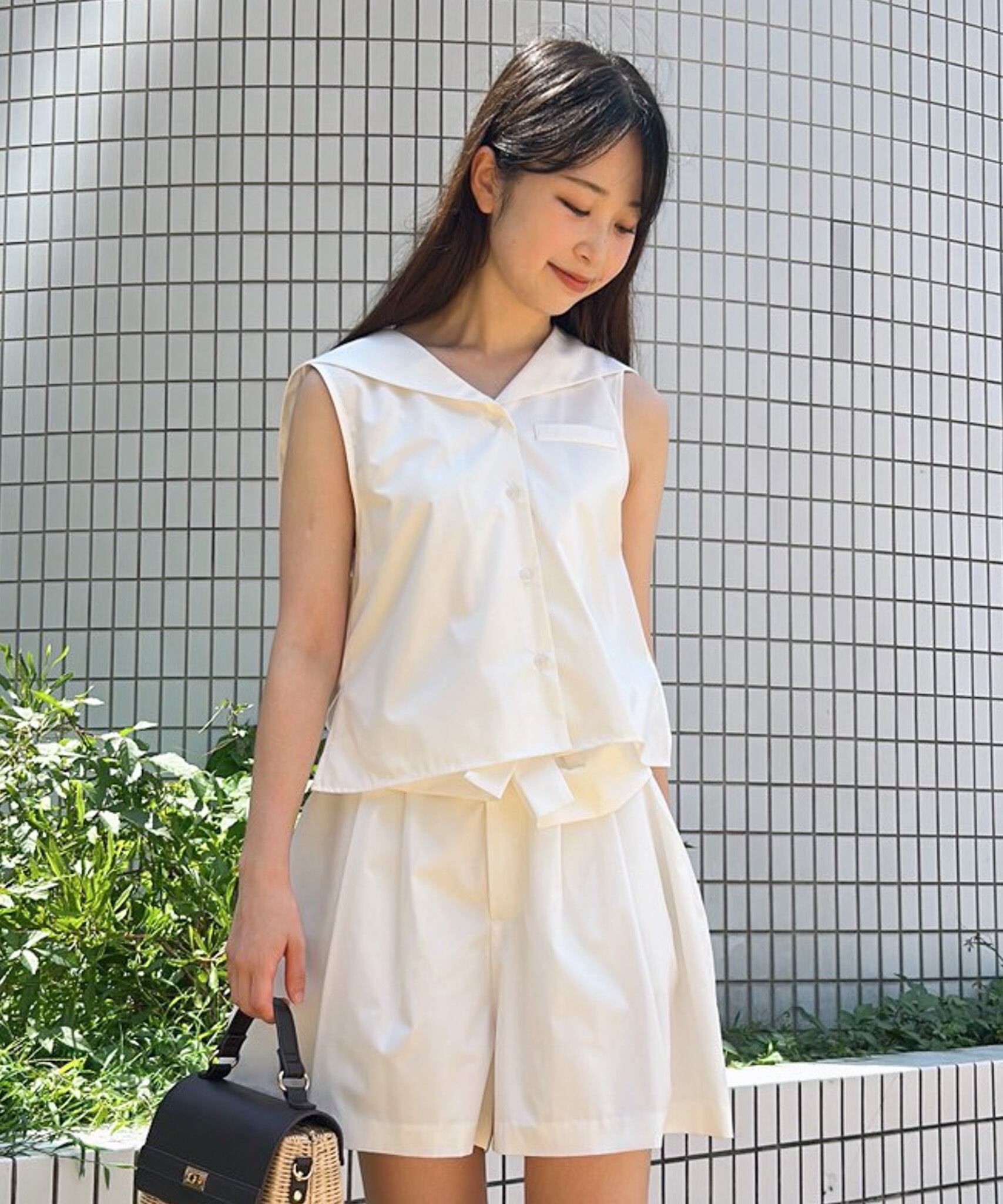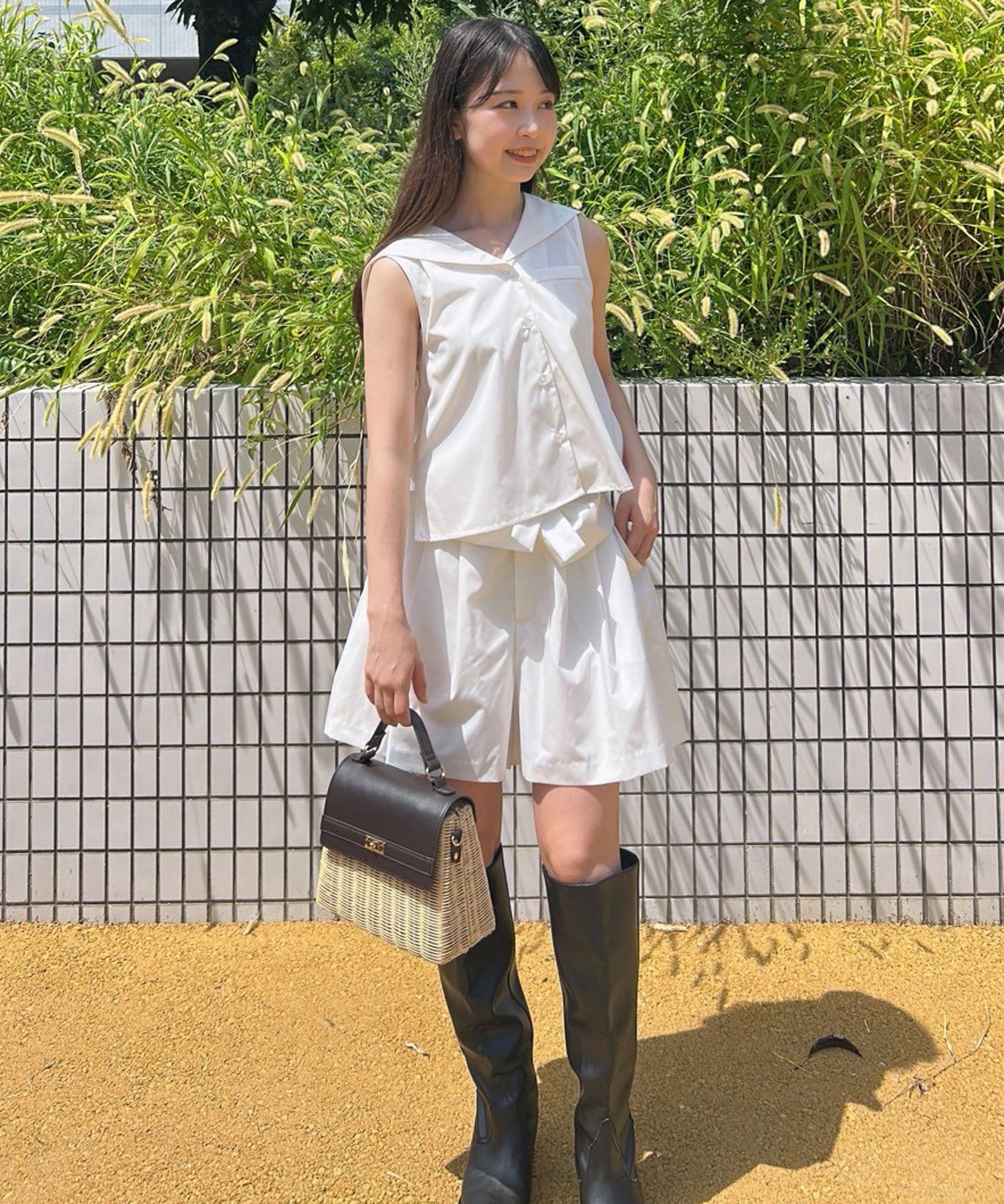 同じ生地の、High waist volume short pants(品番:125031)とセットアップで着用するのもおすすめです!