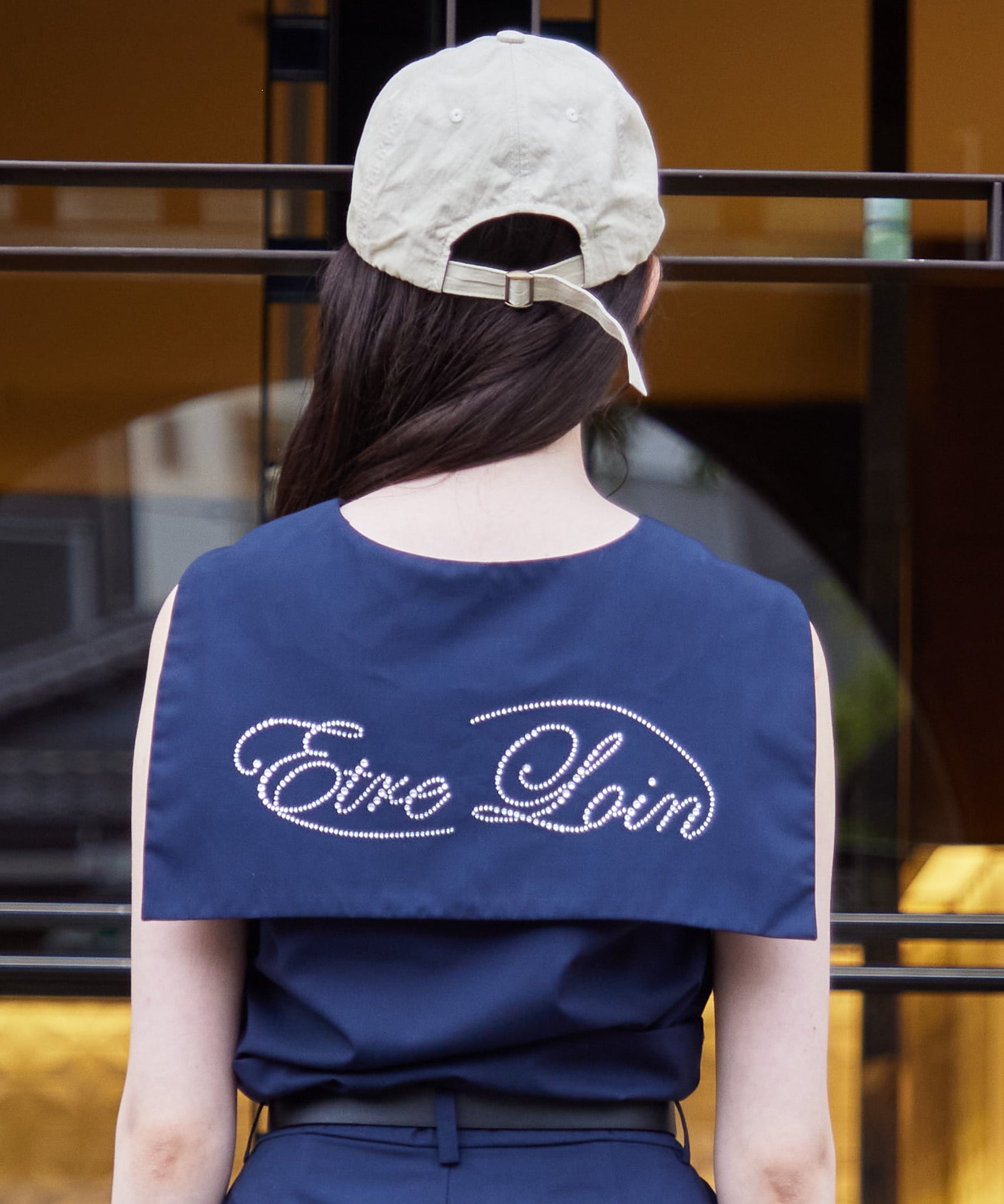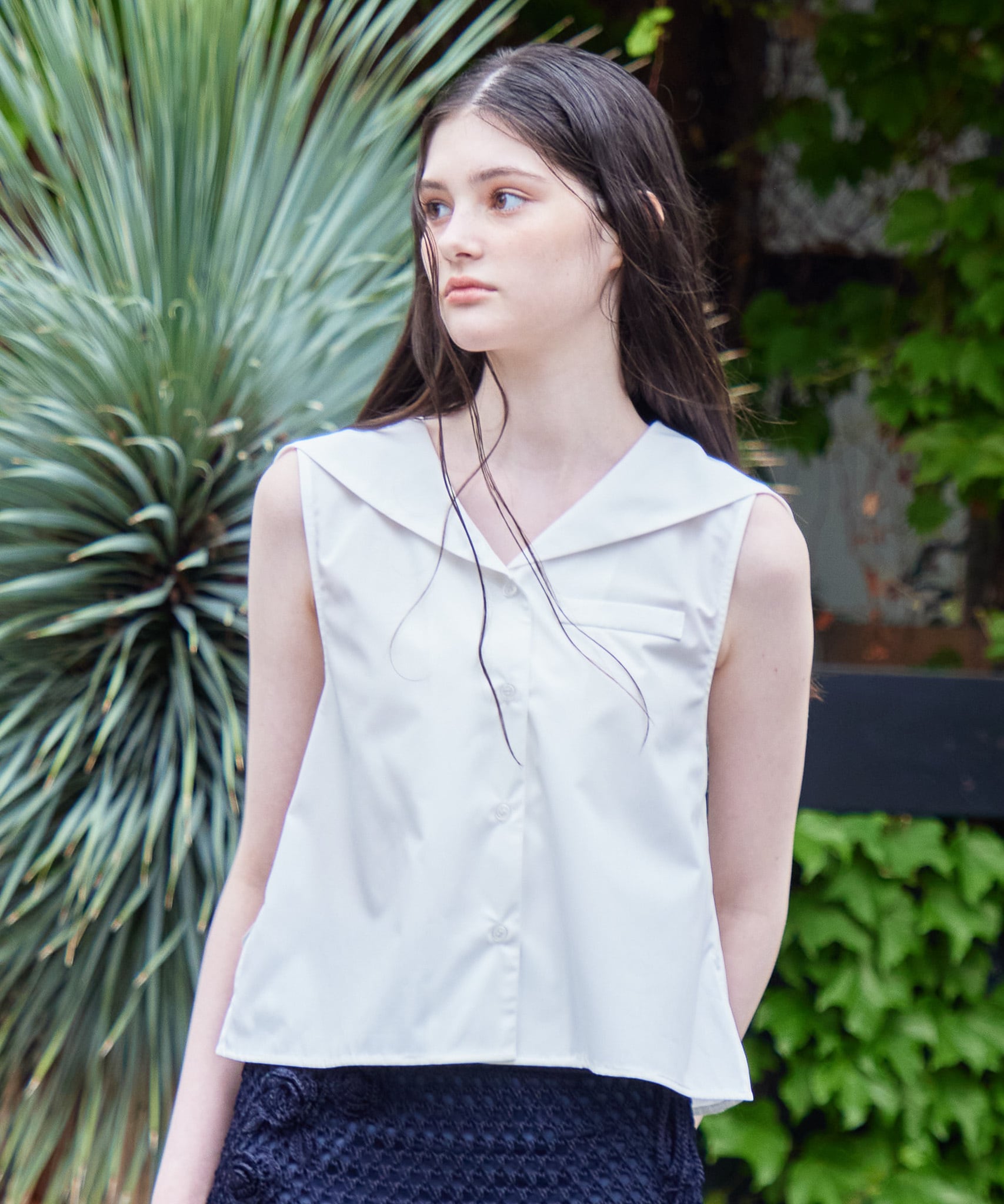 セーラーカラーに、ラインストーンでロゴを施したシャツブラウス。